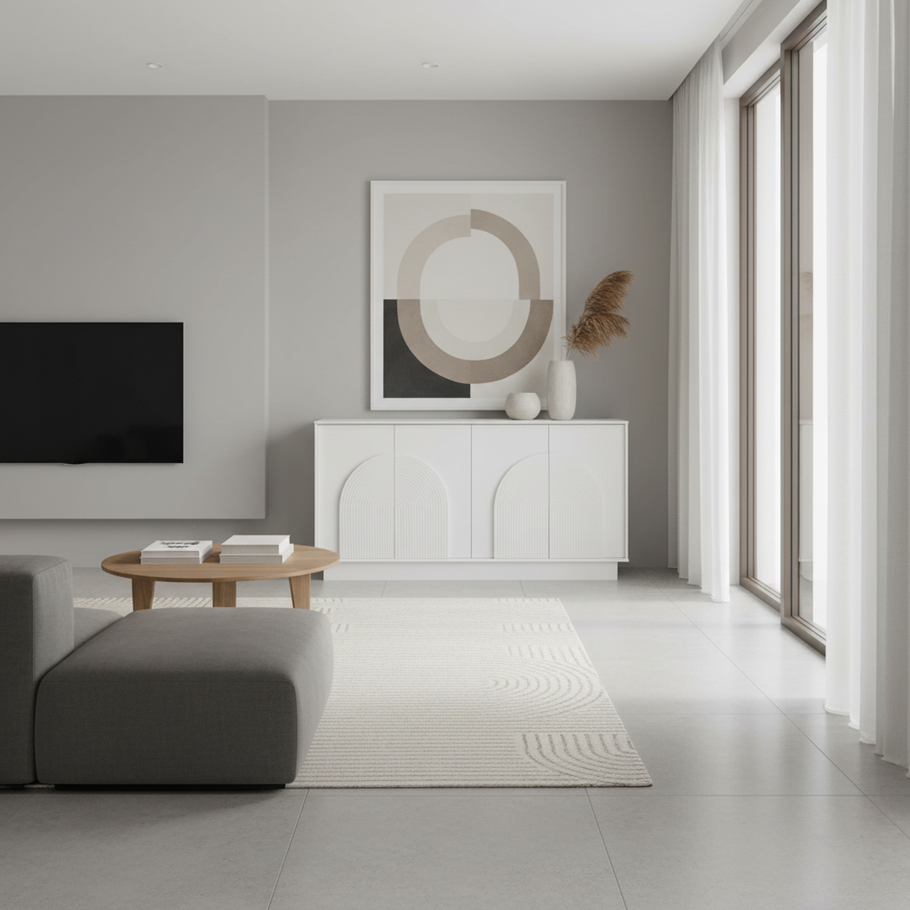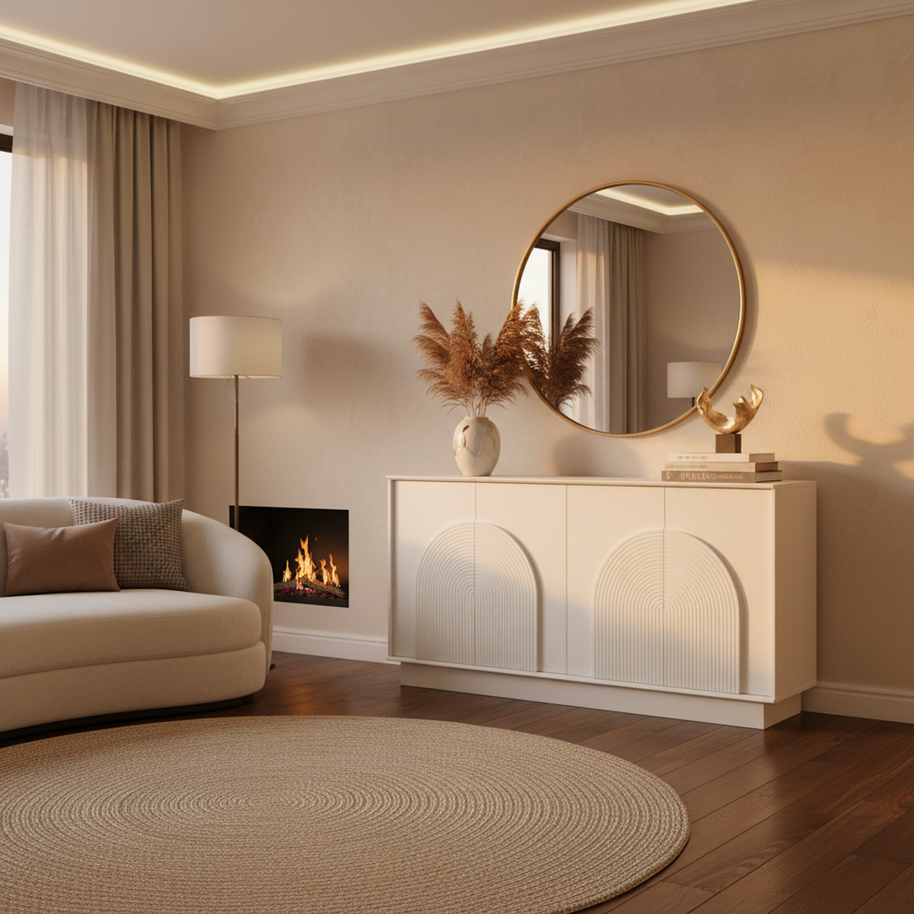 Buffet blanc mat élégant forme arches en relief 4 portes BRACT