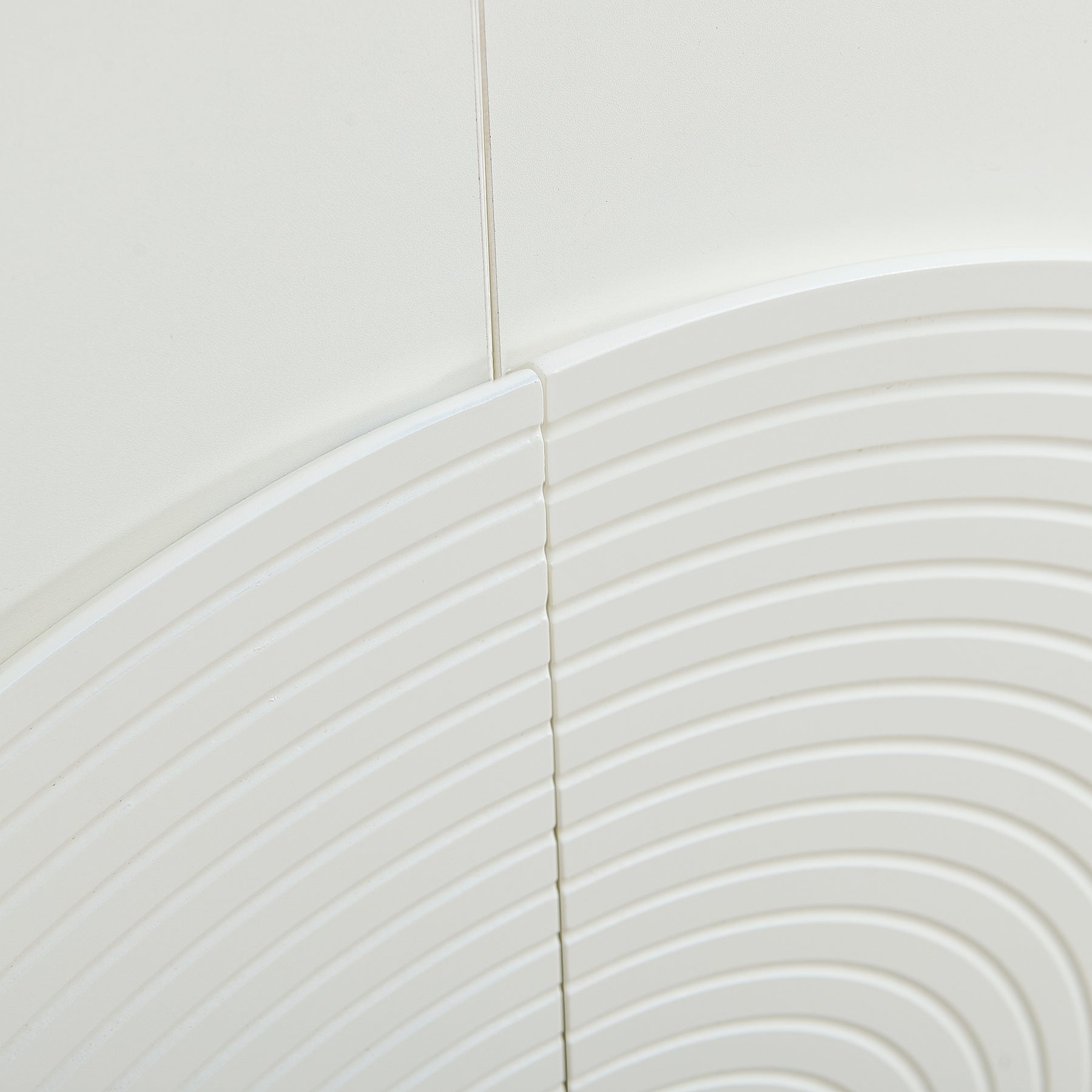 Introduisez une pièce maîtresse au charme Art Déco revisité dans votre intérieur avec ce magnifique buffet. Sa silhouette épurée d'un blanc immaculé est rehaussée par des motifs d'arcs en relief subtils sur les portes, créant un effet visuel texturé et artistique qui ajoute de l'élégance à tout salon ou salle à manger. Avec ses dimensions bien pensées et ses quatre portes s'ouvrant sur de vastes étagères intérieures, ce meuble offre une solution de rangement exceptionnelle qui permet de garder votre espace à la fois organisé et raffiné. Les motifs d'arc servent également de poignées discrètes, combinant l'esthétique et la fonctionnalité.