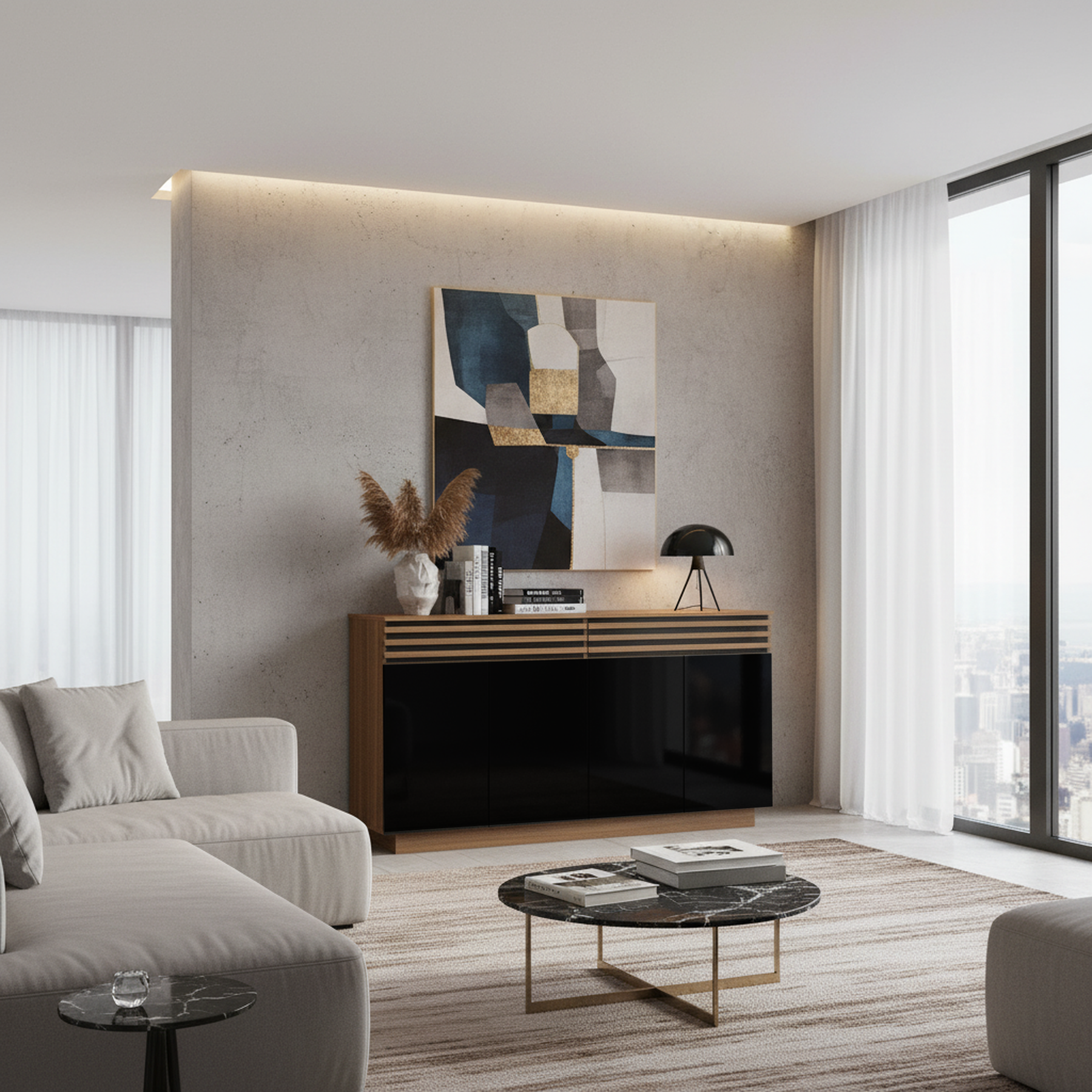 Utilisation multifonctionnelle : Parfait comme buffet de salle à manger, meuble de rangement de salon ou armoire d'appoint, s'intégrant facilement dans diverses pièces grâce à son style épuré.