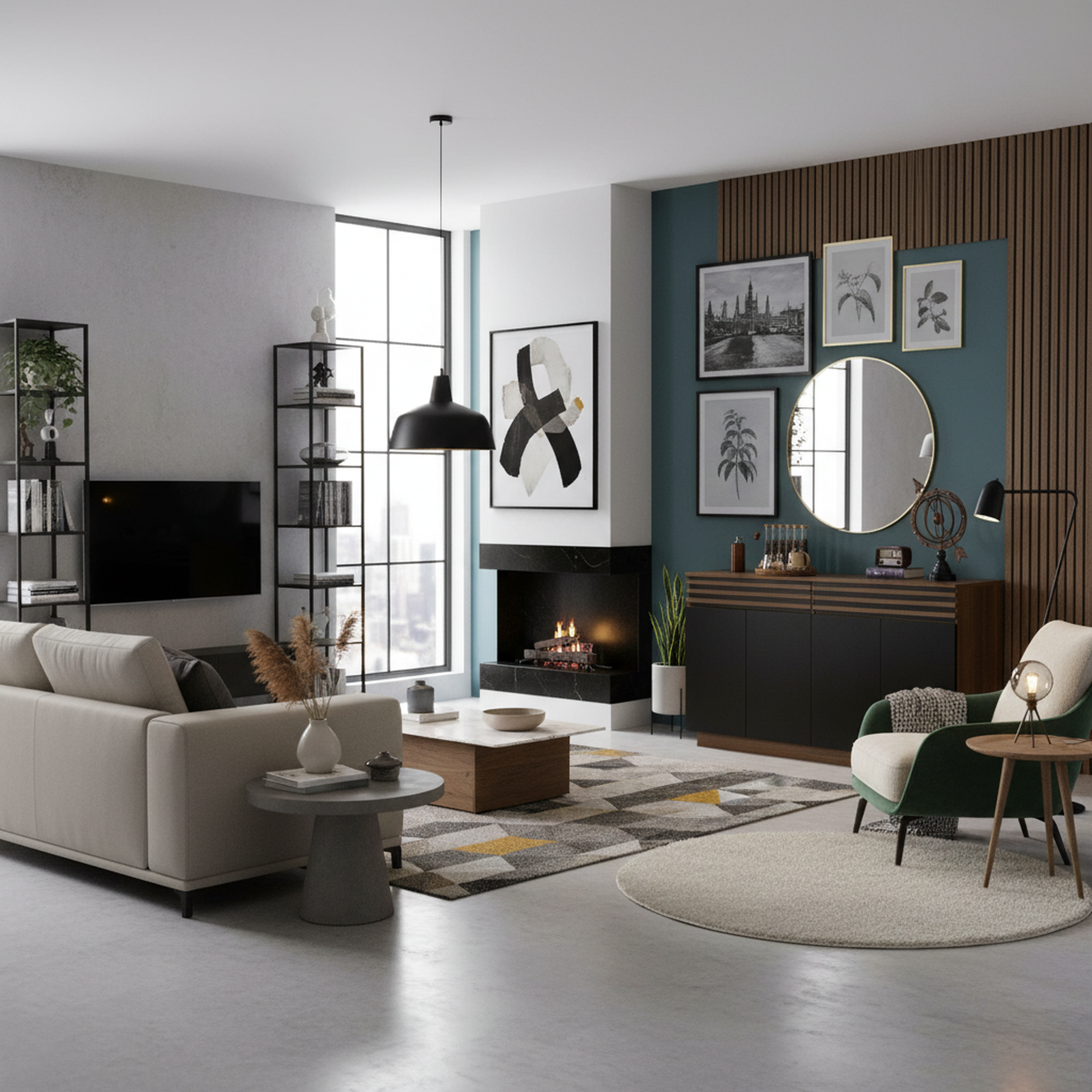 Grande capacité de rangement : Offre un espace généreux grâce à quatre portes d'armoire et deux tiroirs pour organiser vaisselle, linge de maison, ou accessoires de salon.