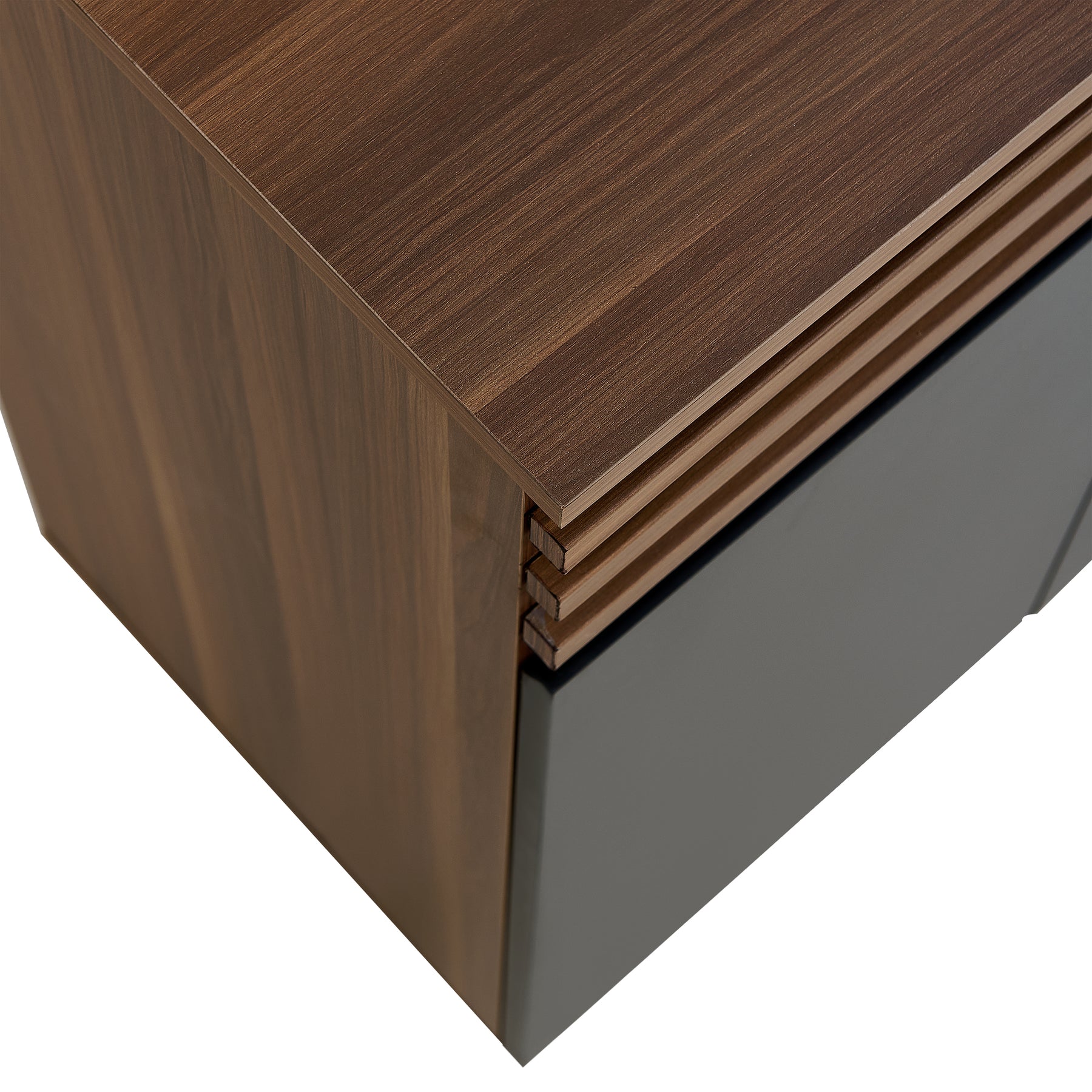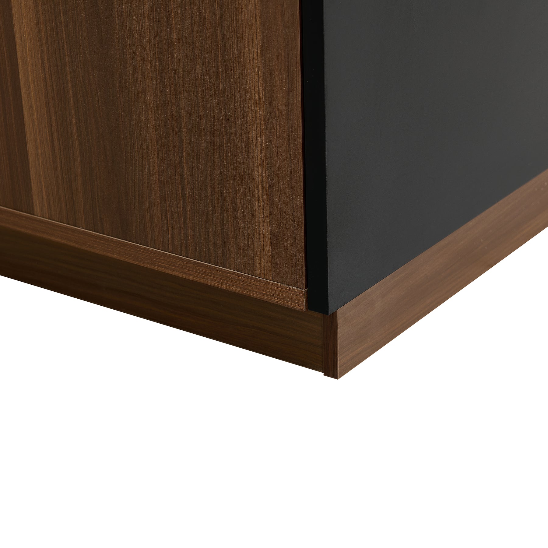 Design bicolore contemporain : Magnifique contraste entre le corps couleur bois brun/noyer et les façades de portes noires pour un look moderne et élégant.