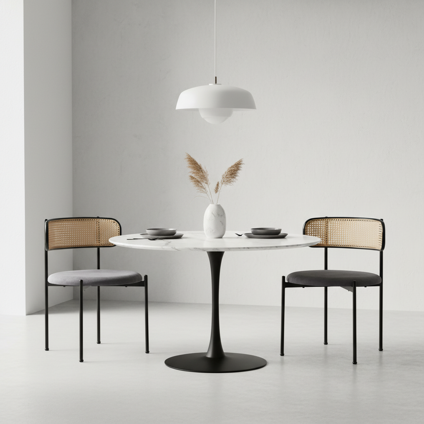 Dossier naturel et respirant : Intègre un design en rotin tressé (cannage), offrant une esthétique naturelle ainsi qu'une excellente respirabilité et un bon soutien.