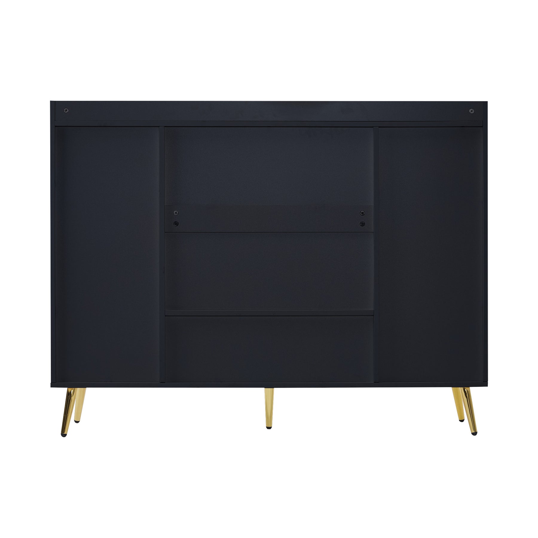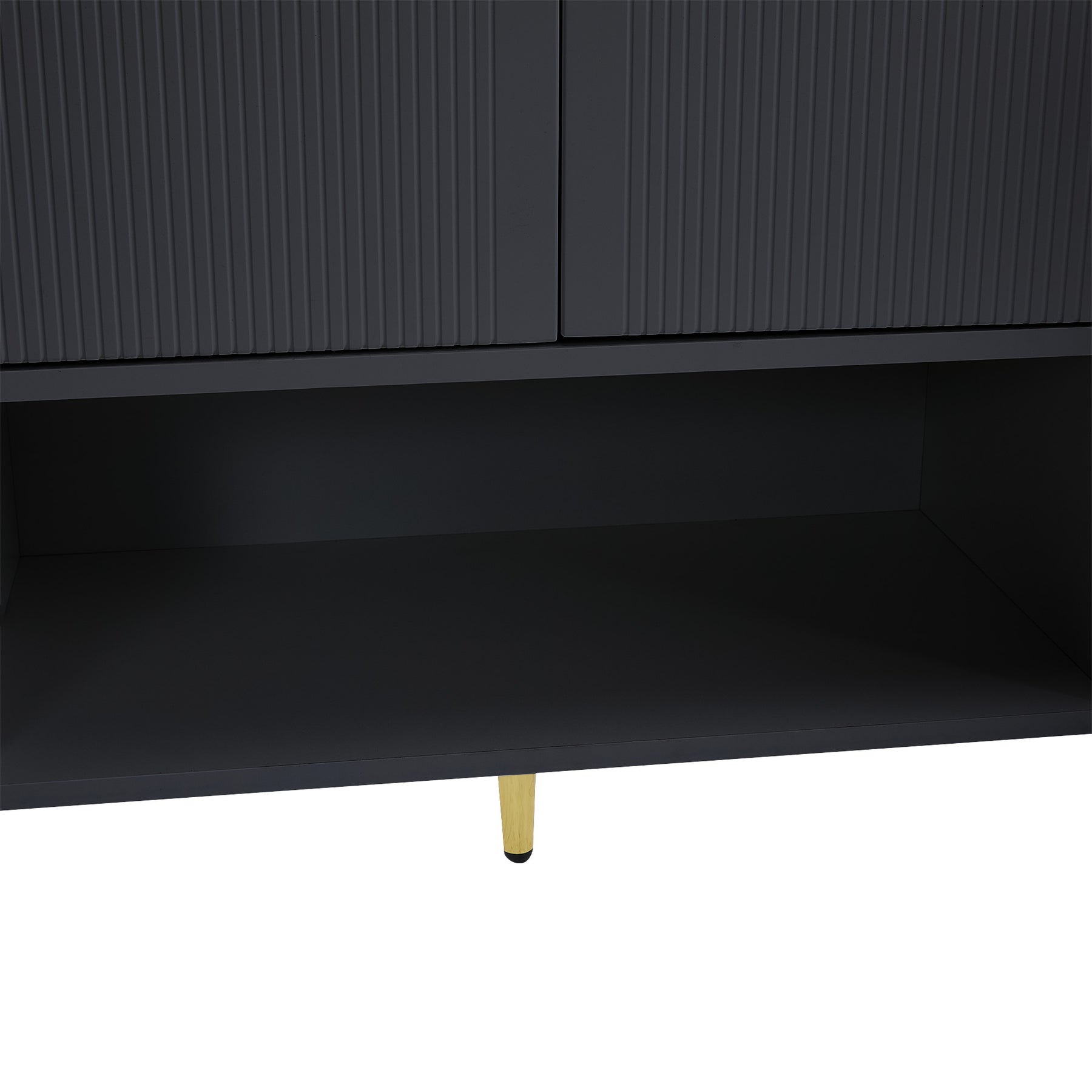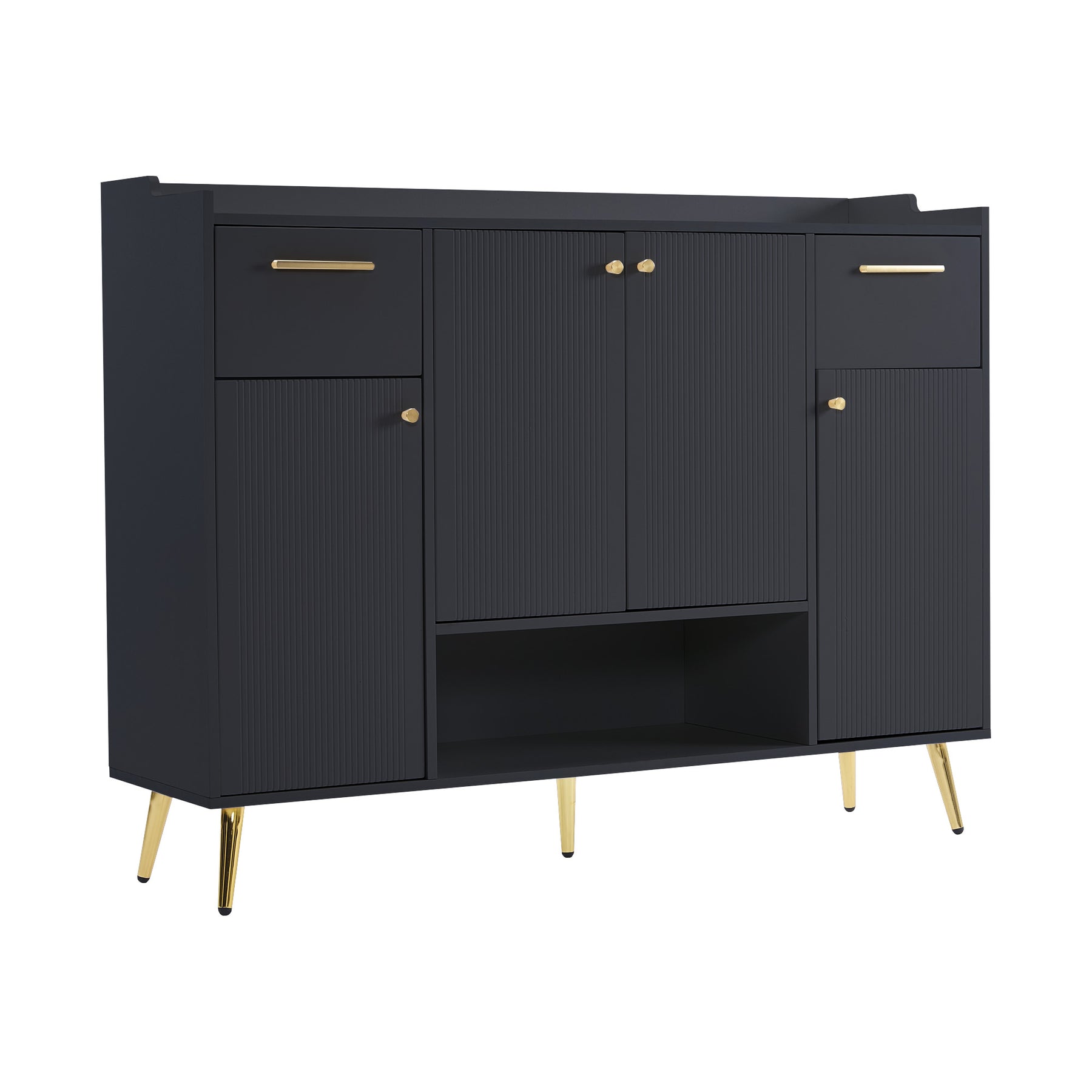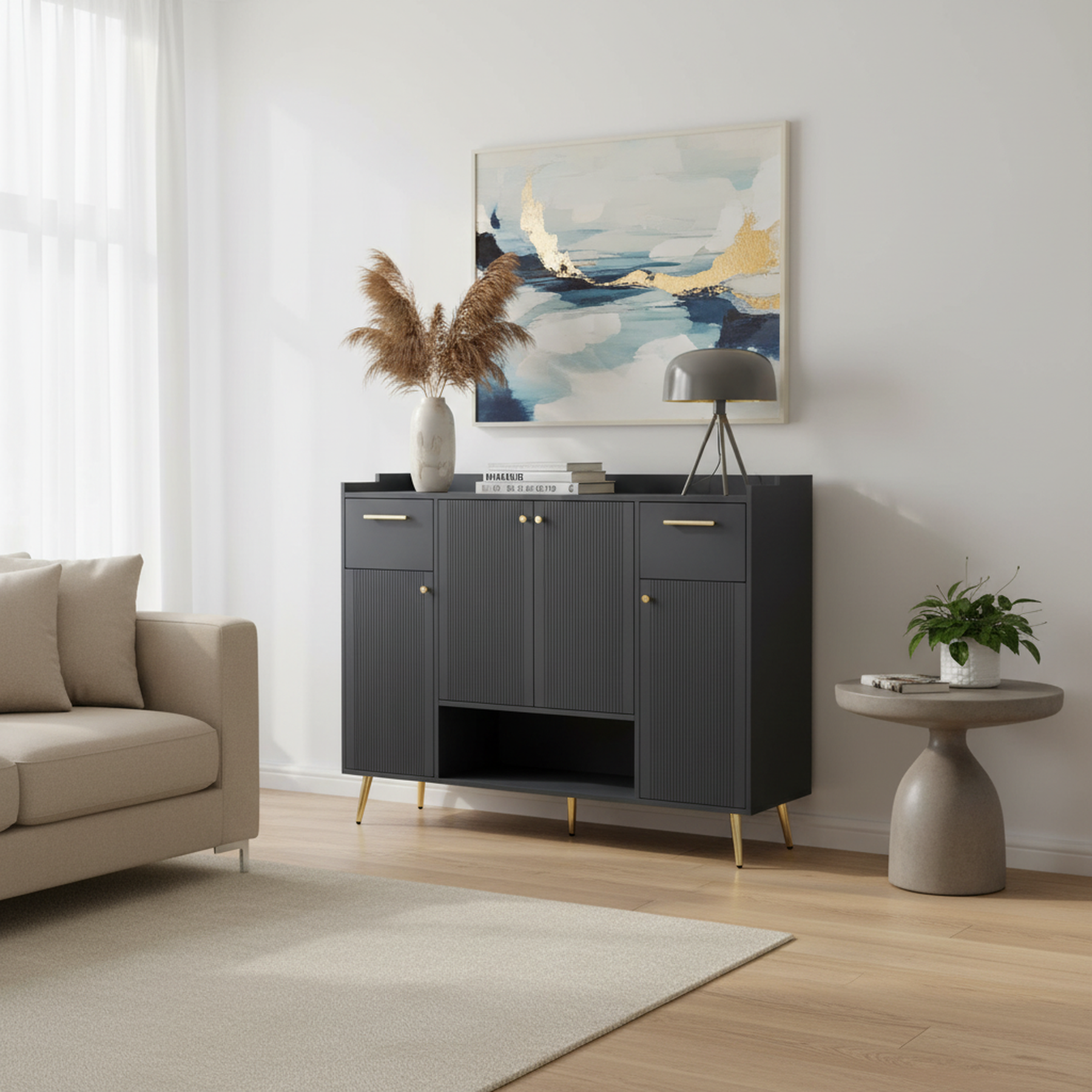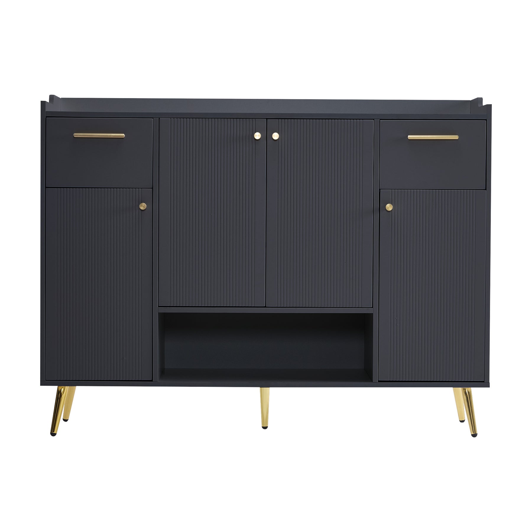 Meuble à chaussures buffet gris anthracite 4 portes 2 tiroirs et pieds dorés FEATHER