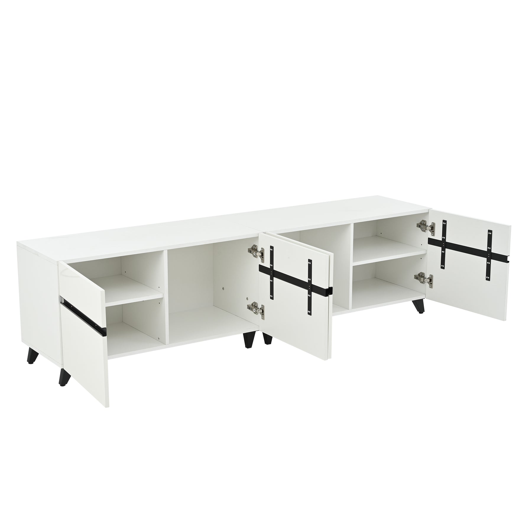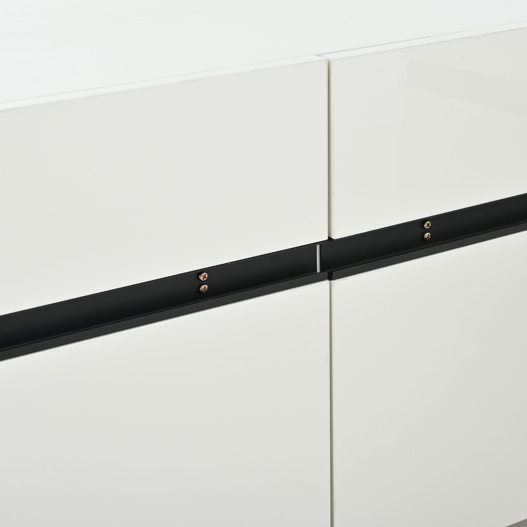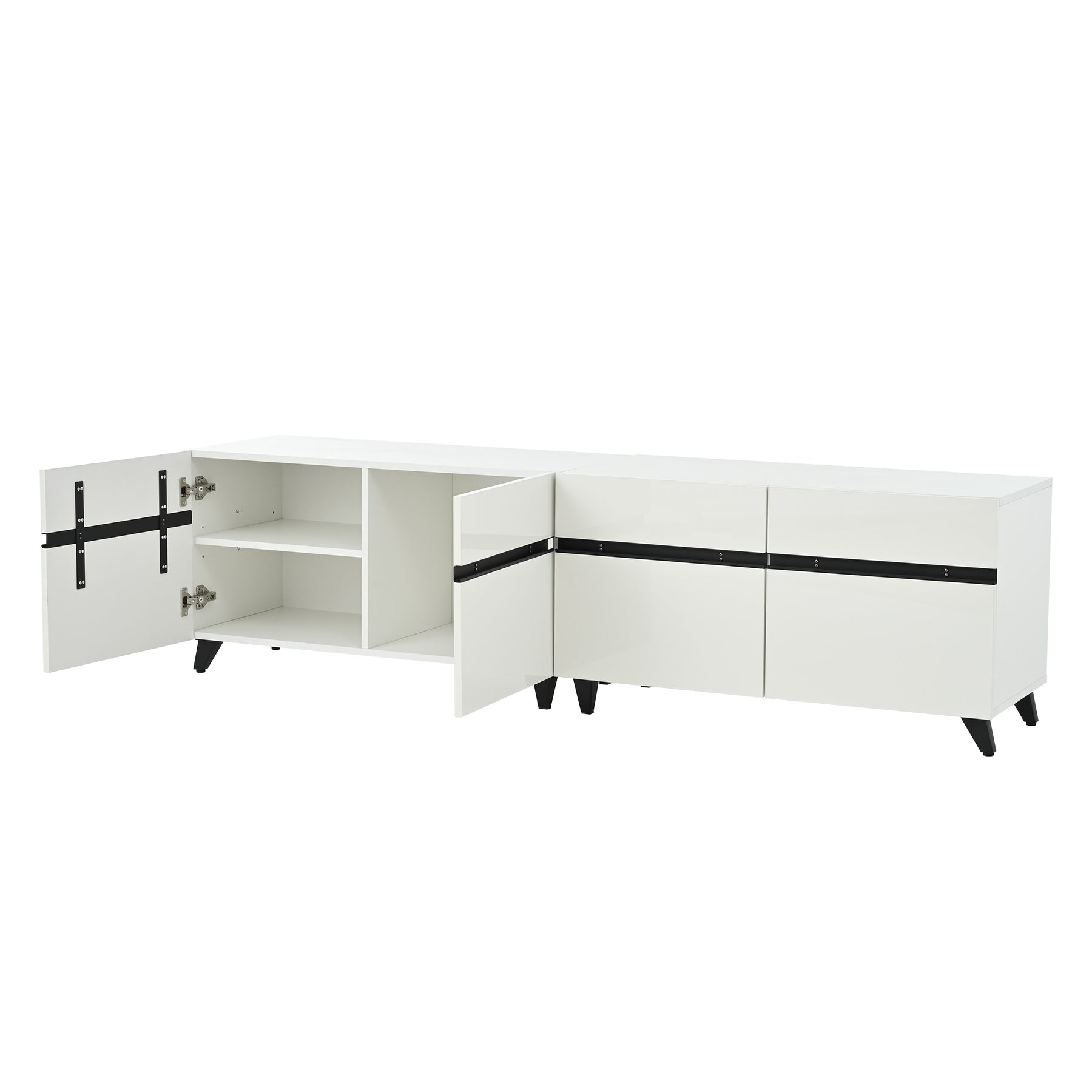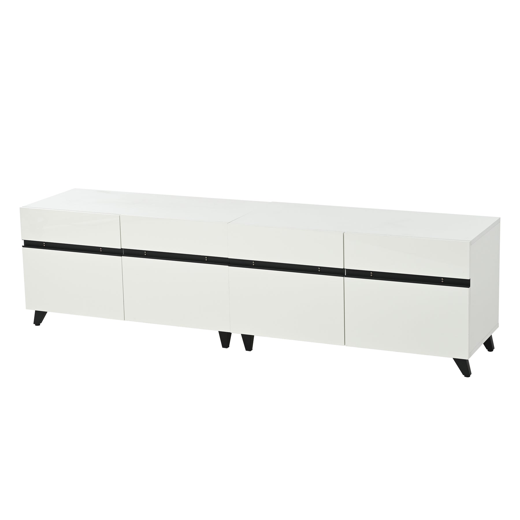 Meuble TV blanc laqué brillant avec bande noire et 4 portes EXUDATION
