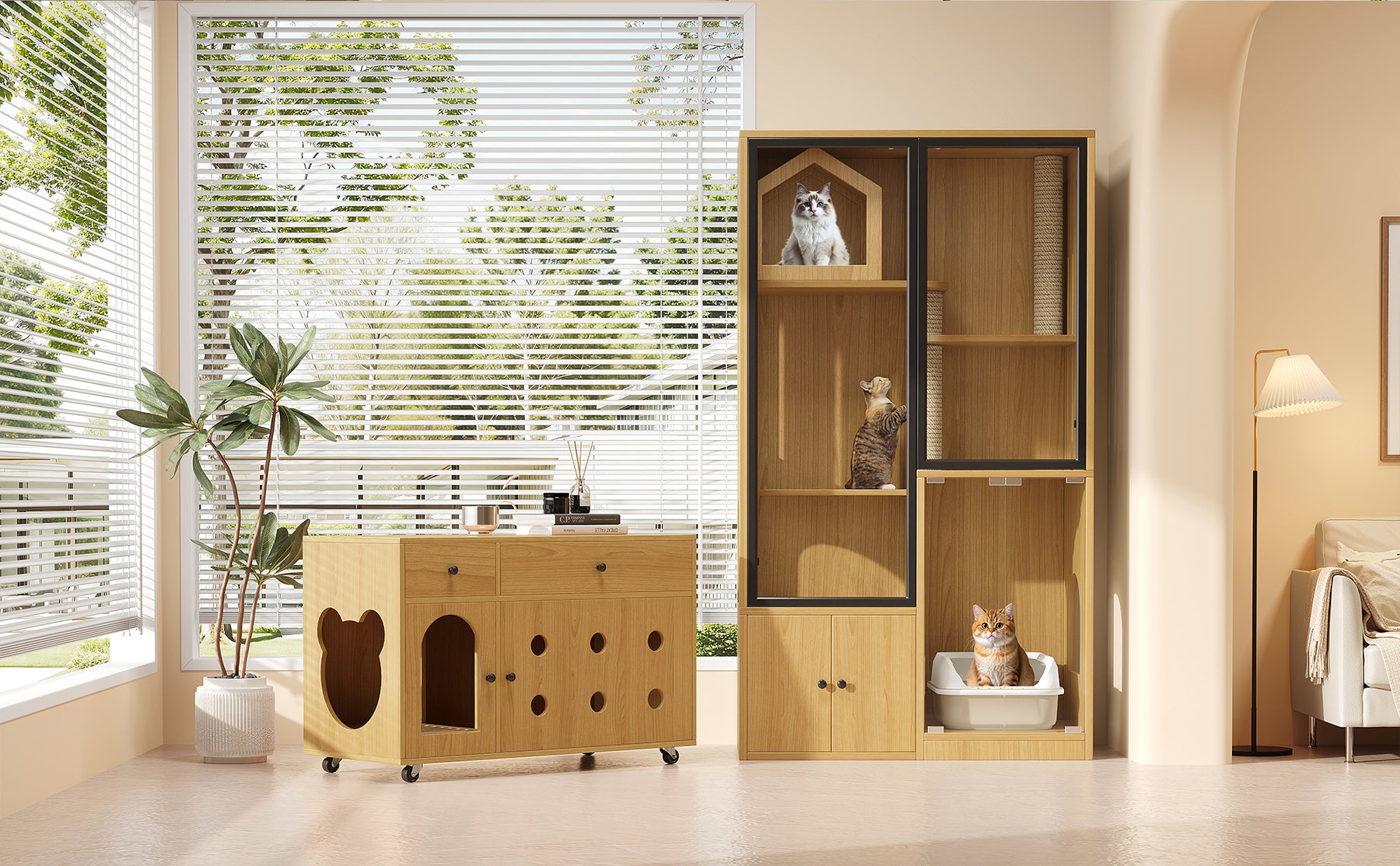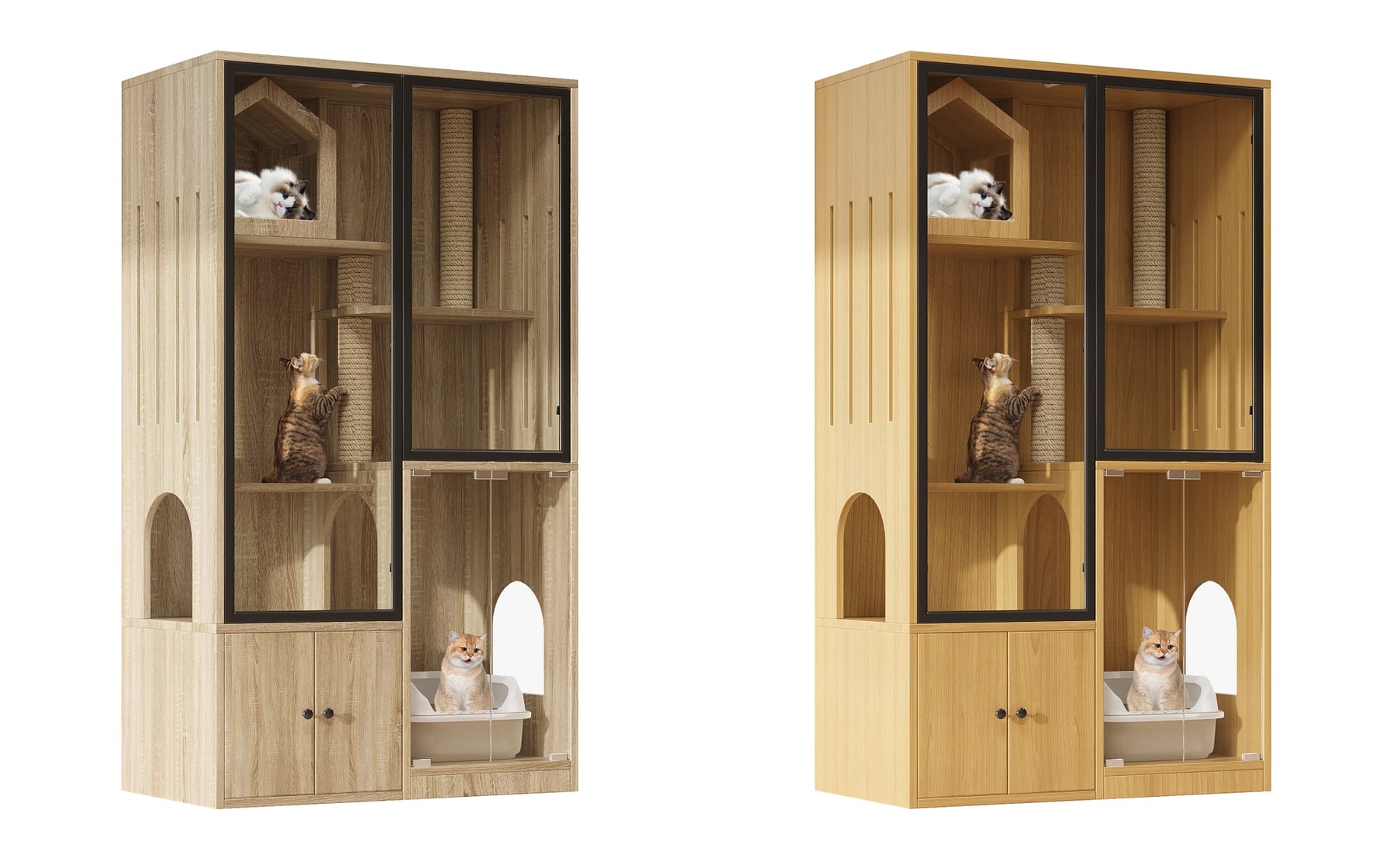 • Organisation intelligente : Un espace de rangement intégré au bas permet de dissimuler litière, nourriture et accessoires pour un environnement harmonieux.