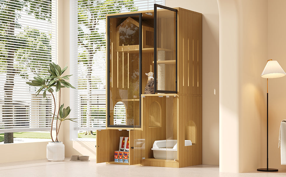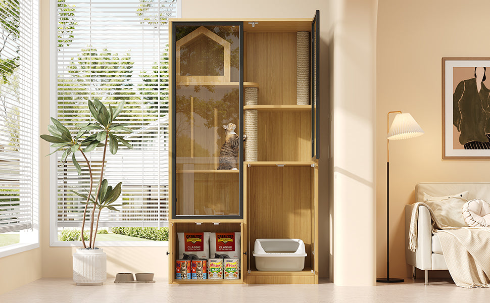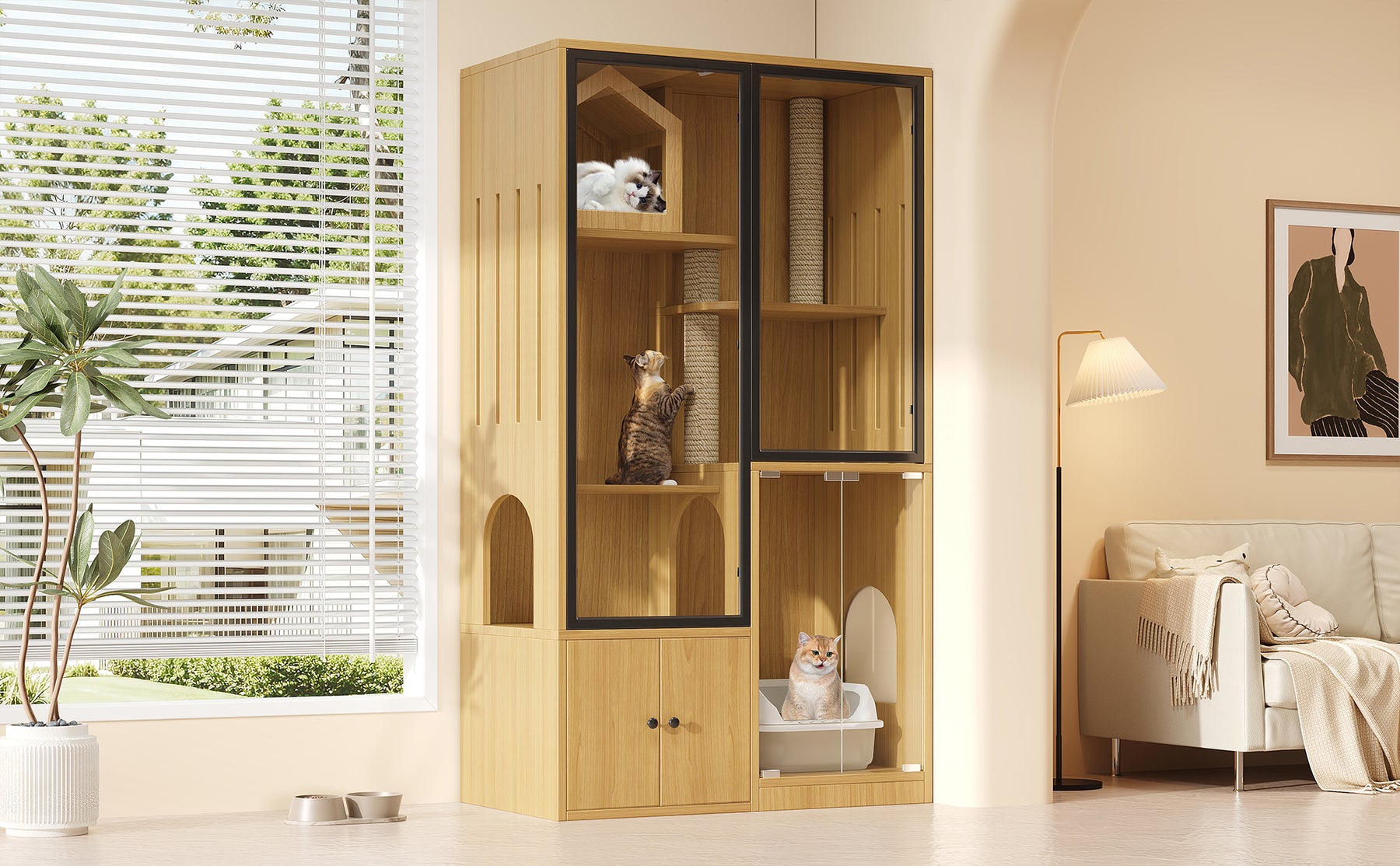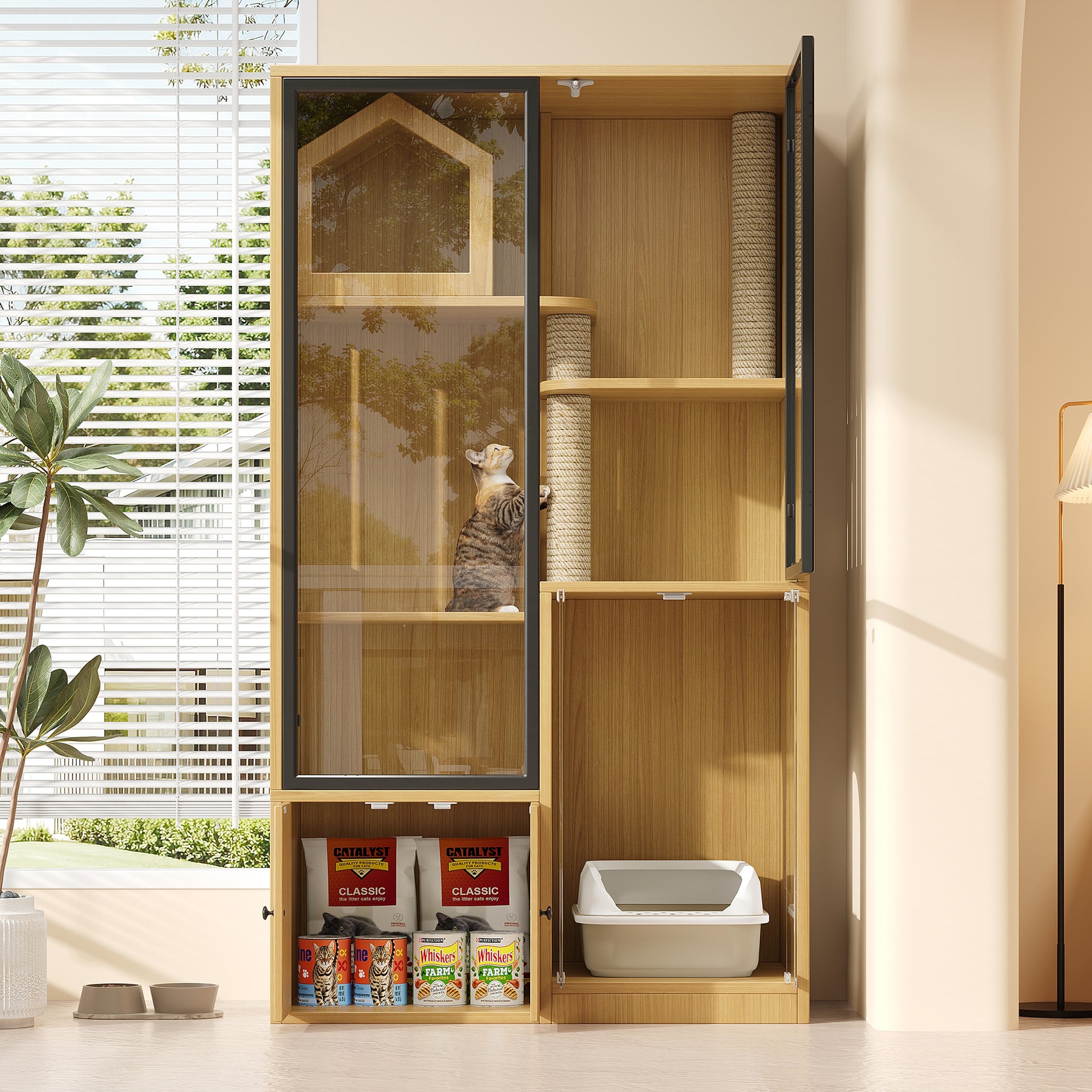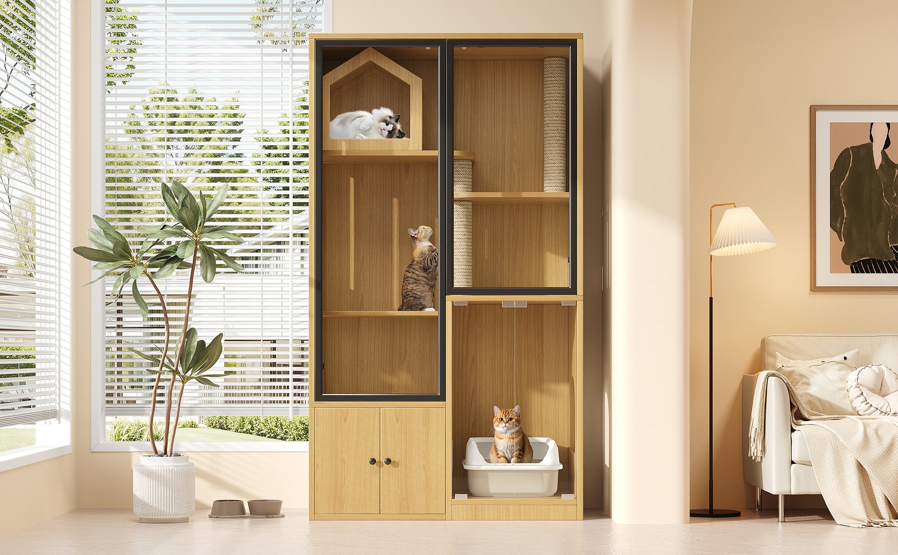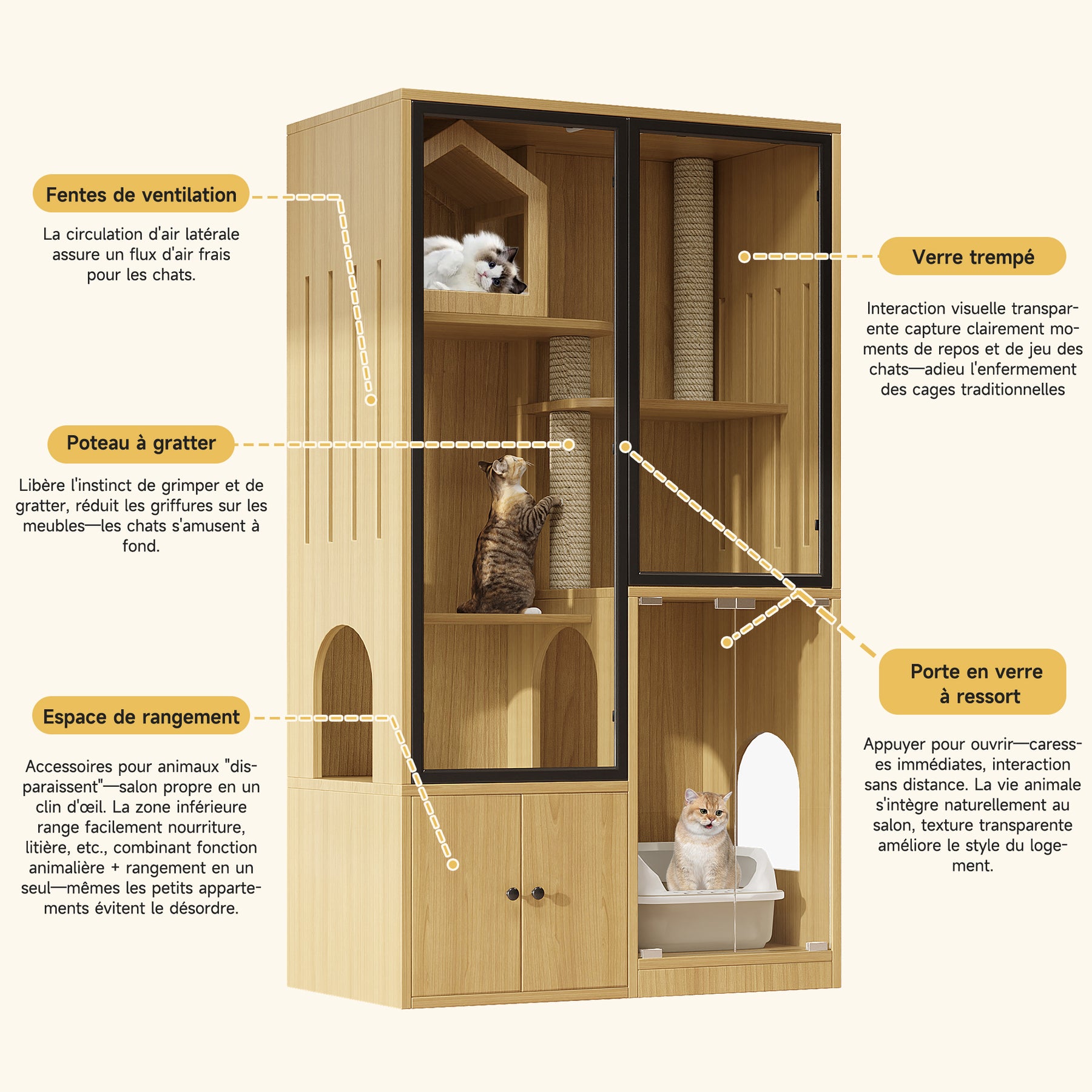 • Vue panoramique & interaction naturelle : La porte en verre trempé offre une visibilité totale sur votre chat, créant une connexion unique et une ambiance élégante dans le séjour.