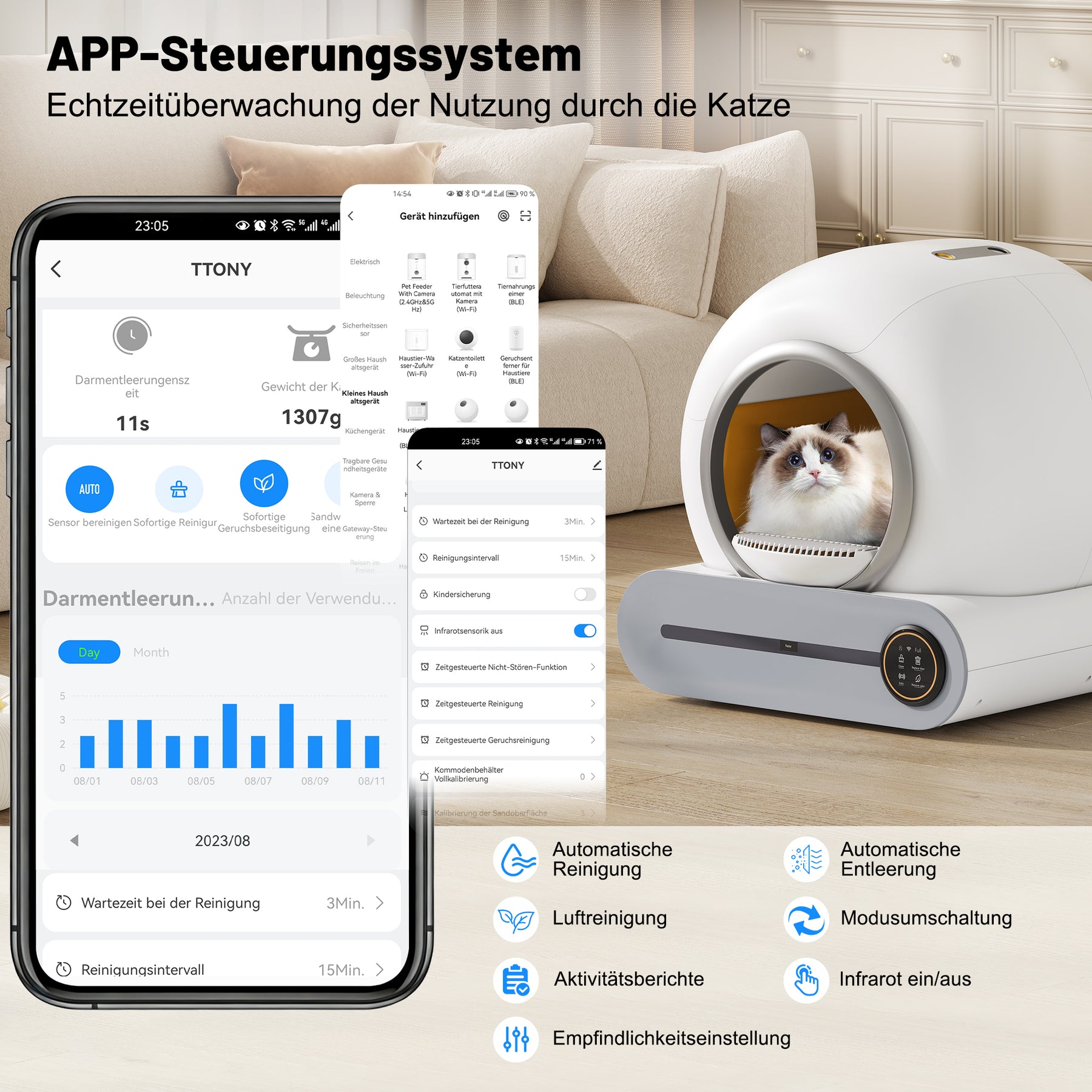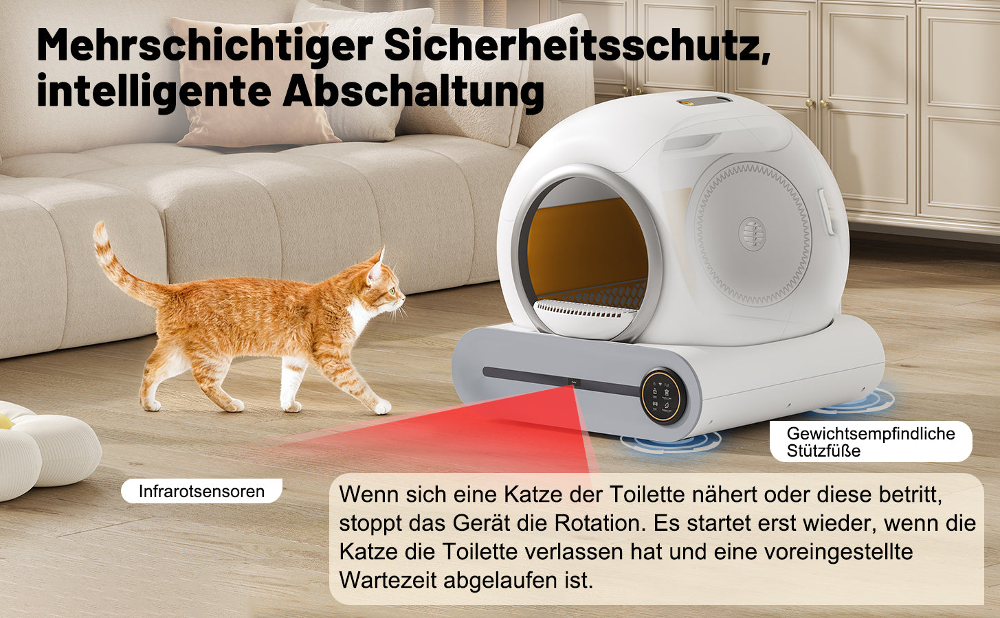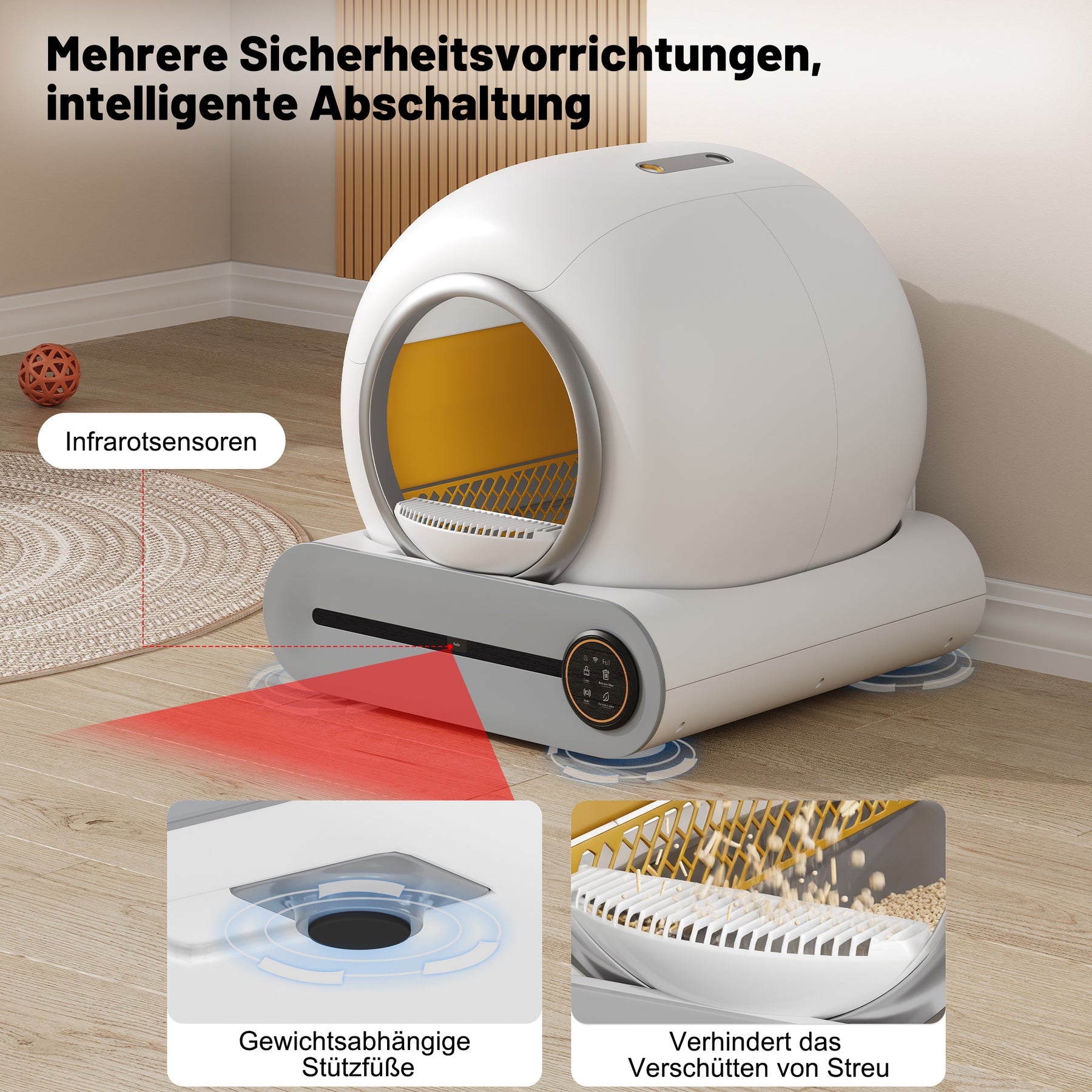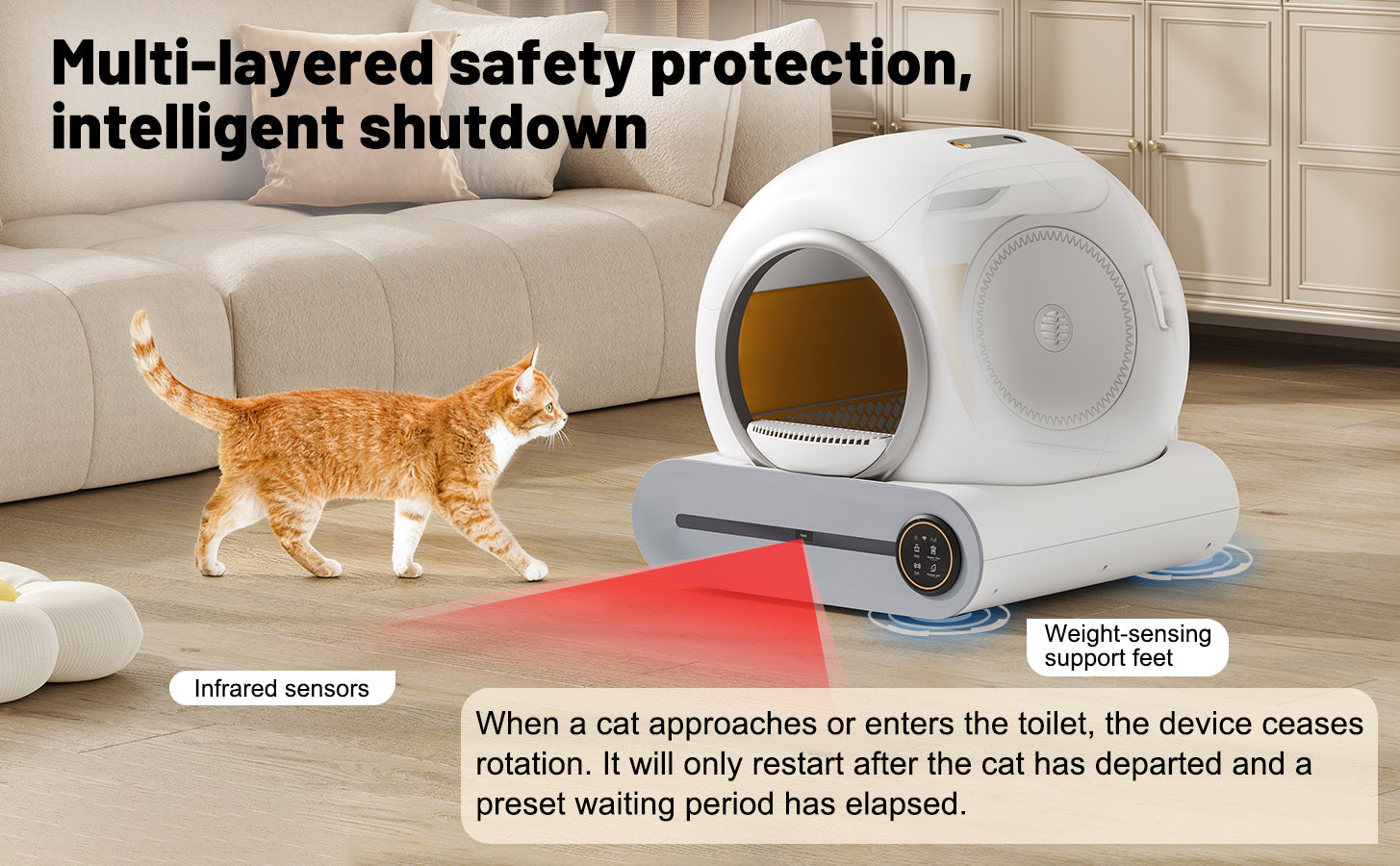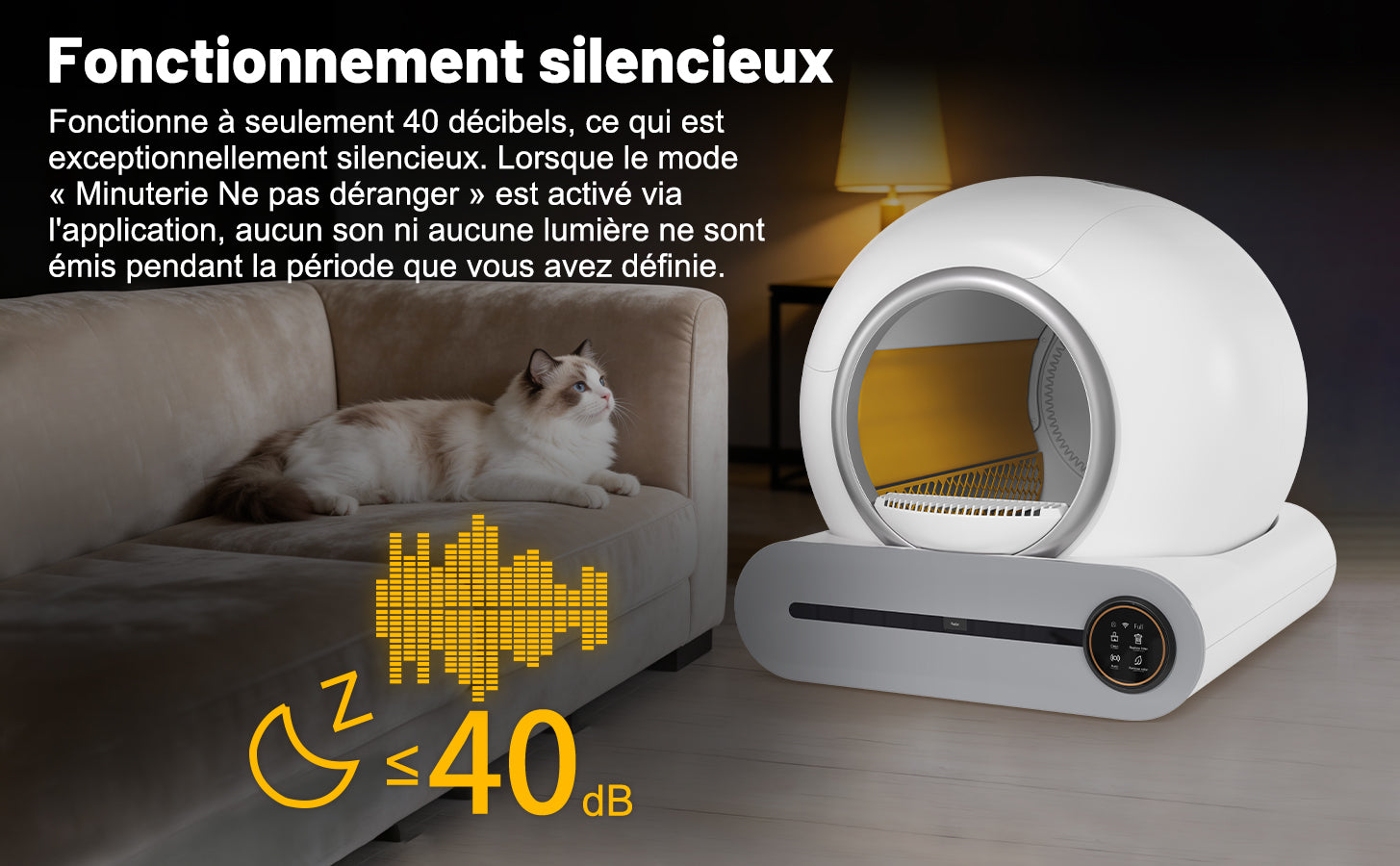 - Sécurité et contrôle parental : Ce bac à litière est équipé d'une sécurité enfant, de capteurs intelligents et d'une détection automatique des animaux, garantissant la sécurité de toute la famille (humains et chats).