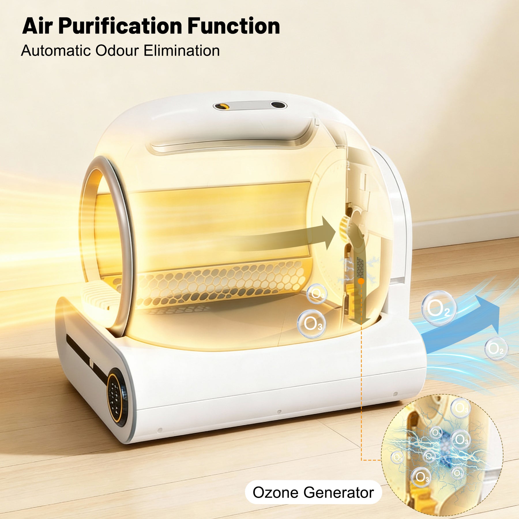 Imaginez rentrer chez vous et trouver une maison sans odeurs désagréables, avec vos chats à disposition dans une litière propre, et la tranquillité d'esprit. Cette litière autonettoyante intelligente de 65 litres révolutionne votre quotidien de propriétaire de chat. Grâce à son système automatisé, son application mobile et ses capteurs de sécurité, vous gagnez du temps et prenez soin de la santé de votre félin.