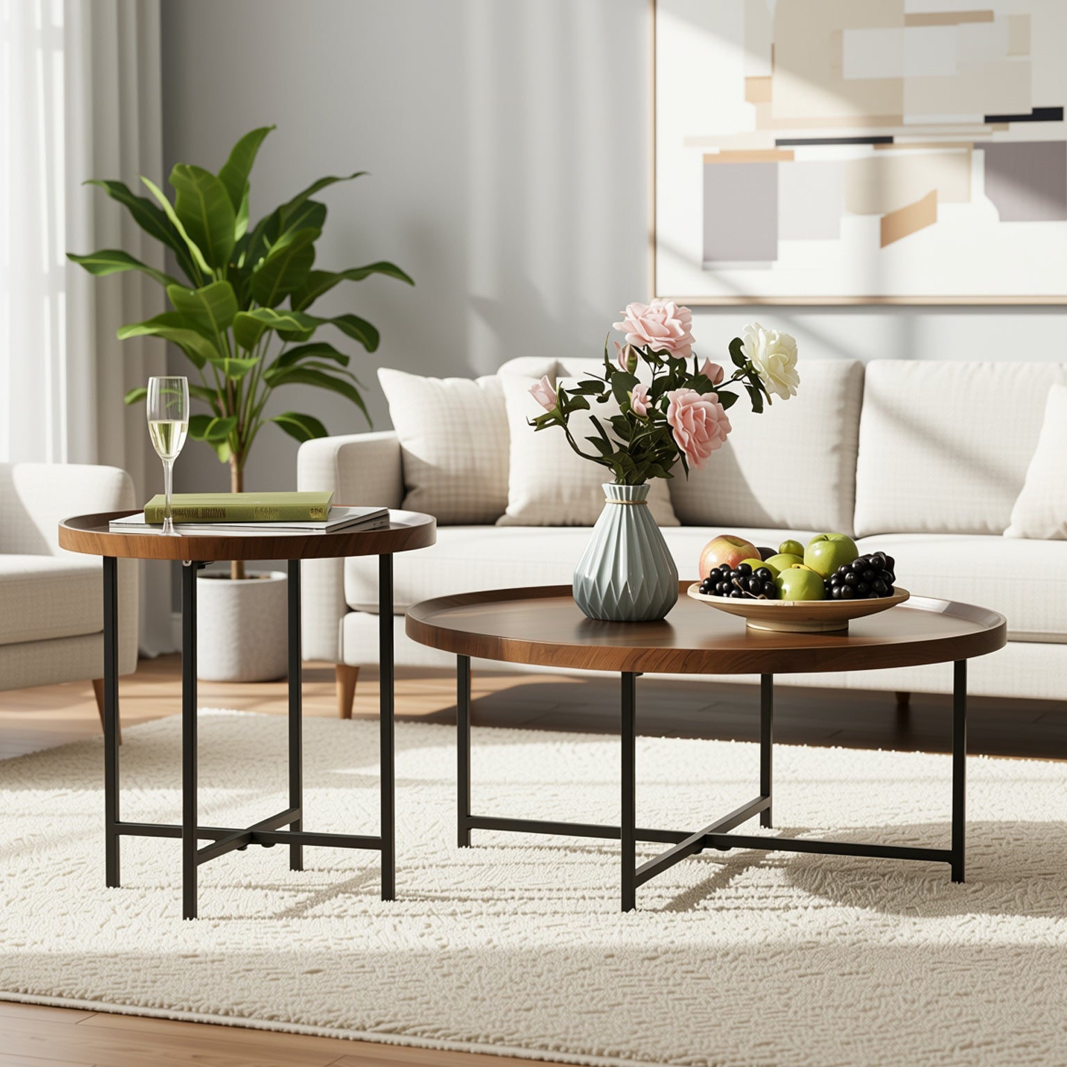 Ensemble tables basses gigognes rondes plateaux bois pieds en métal HEAL A
