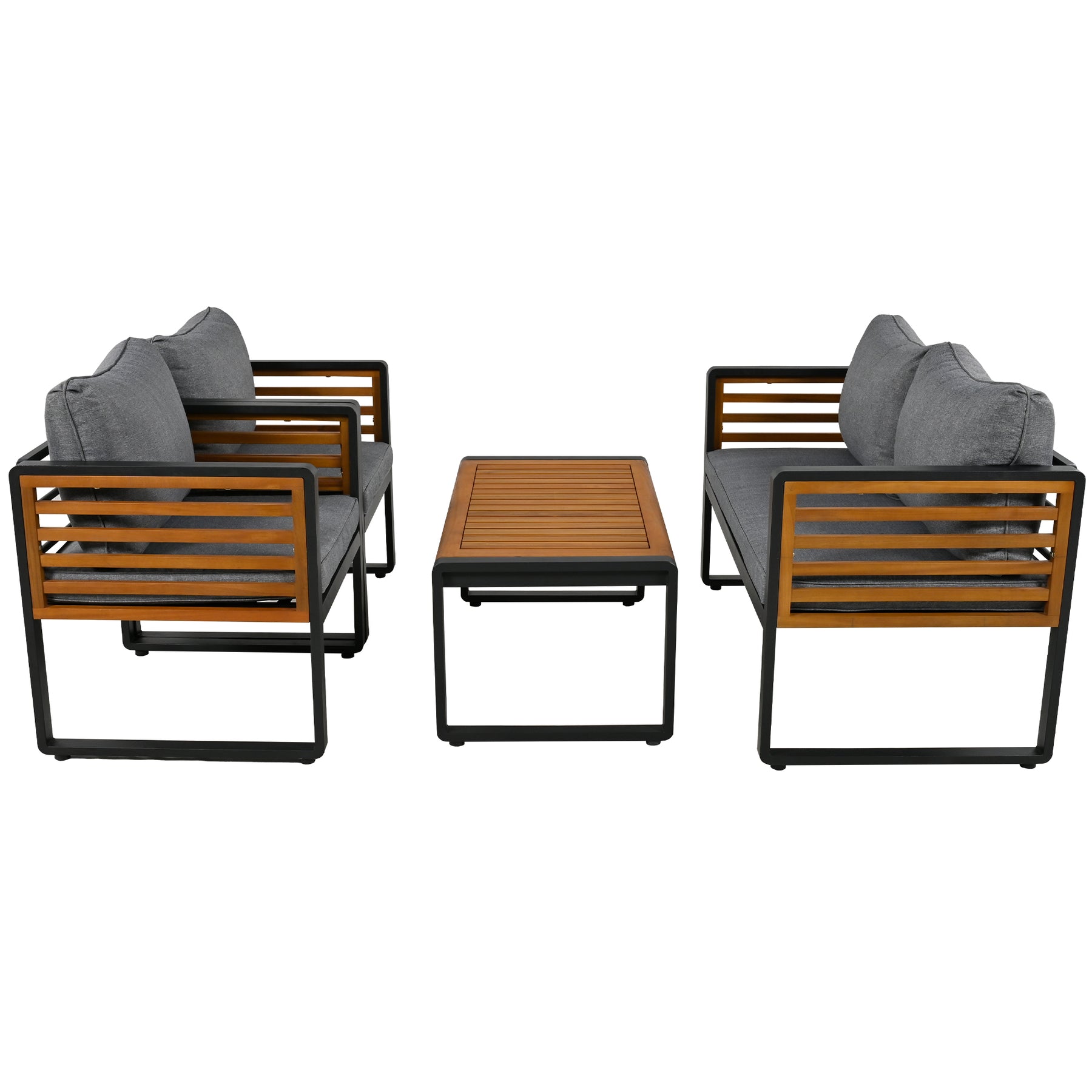 Salon de jardin 4 pièces gris, 2 places + 2 fauteuils + table basse CLIFFSHIMMER