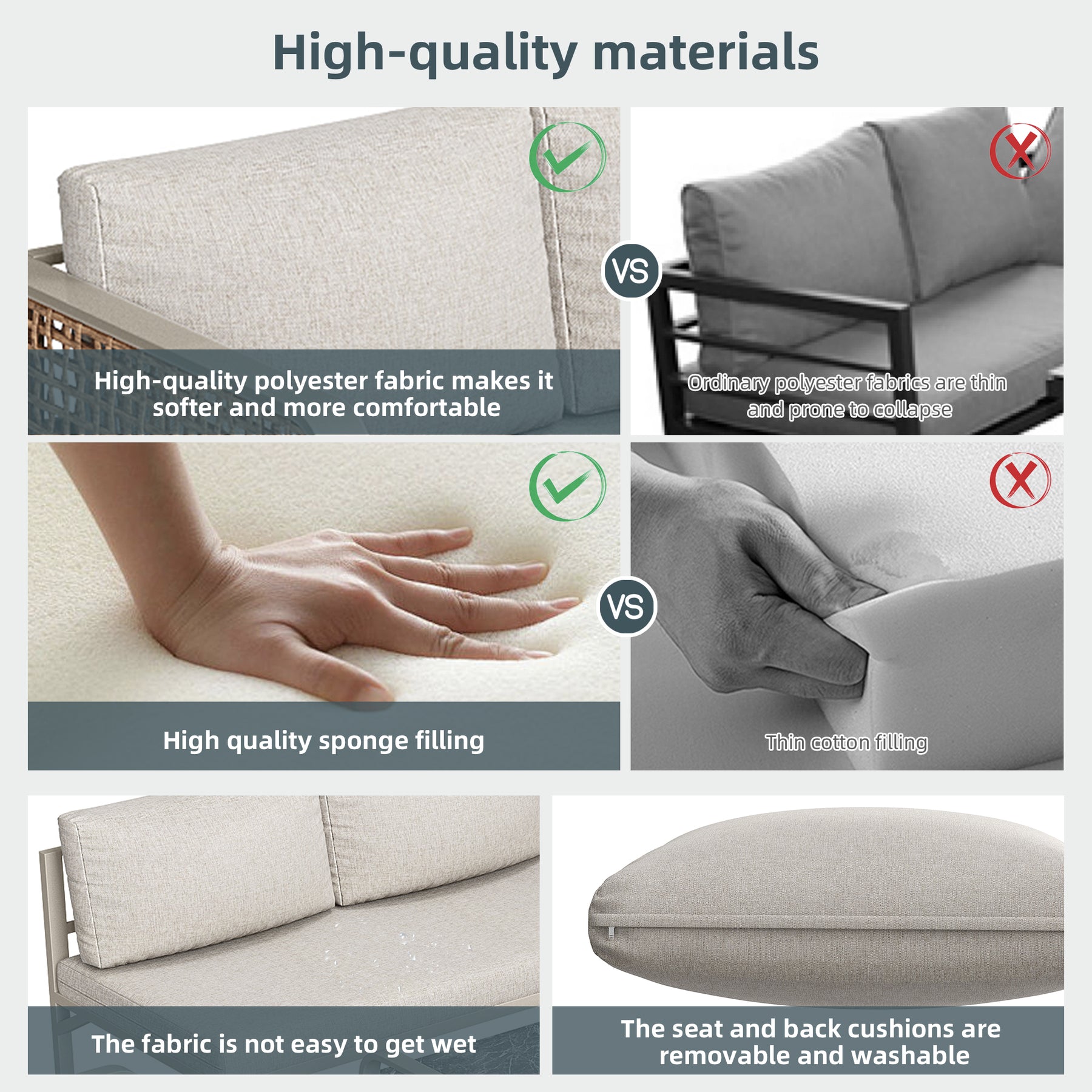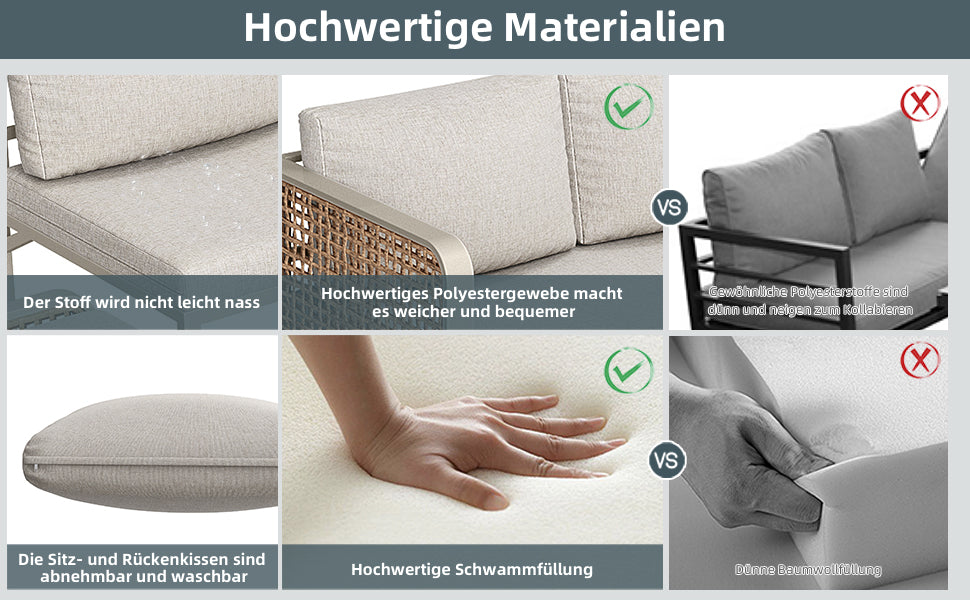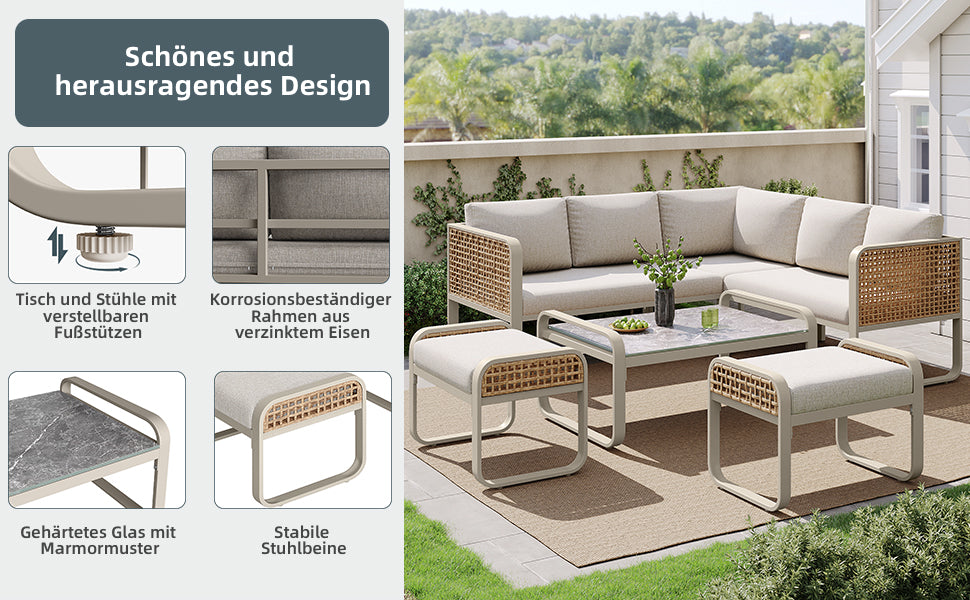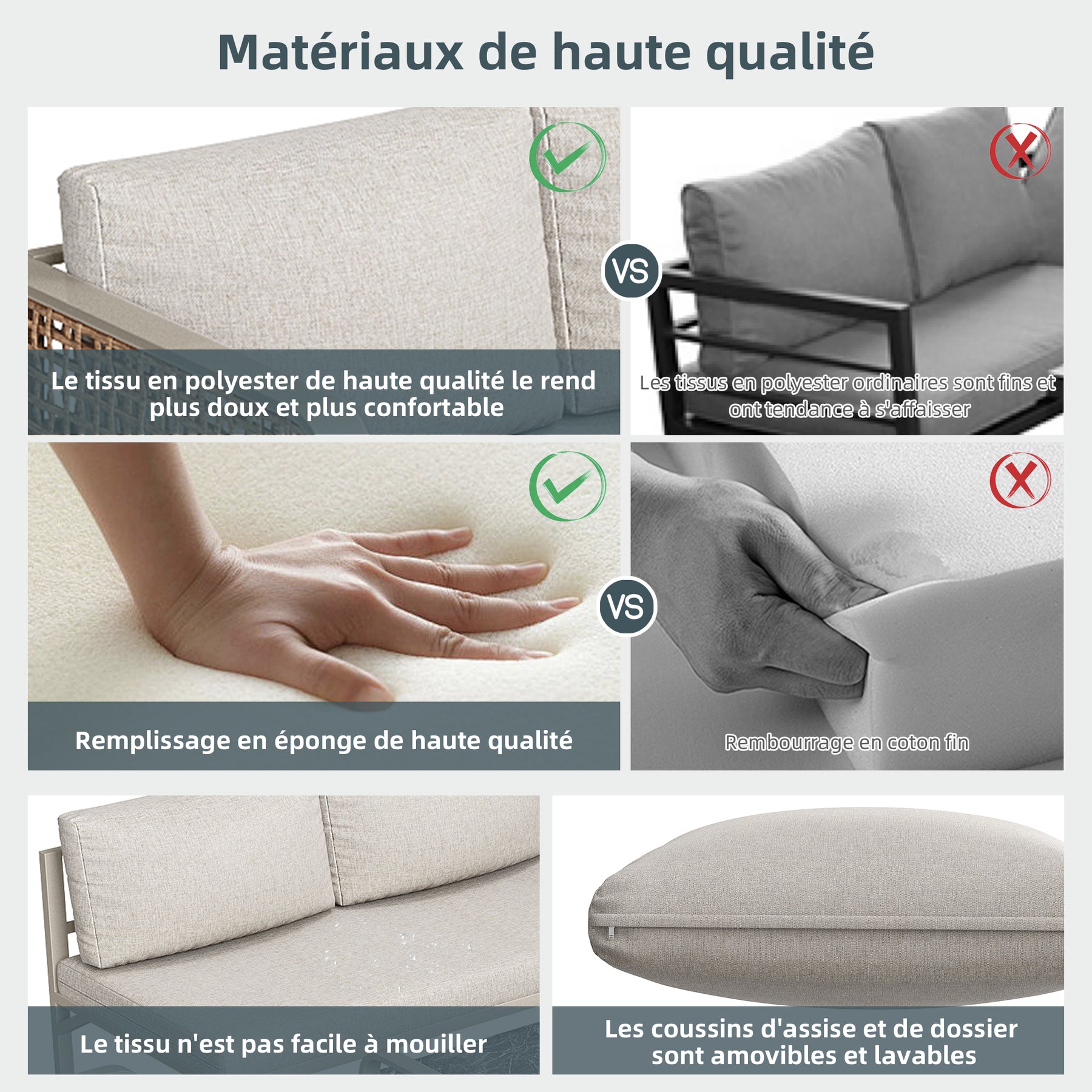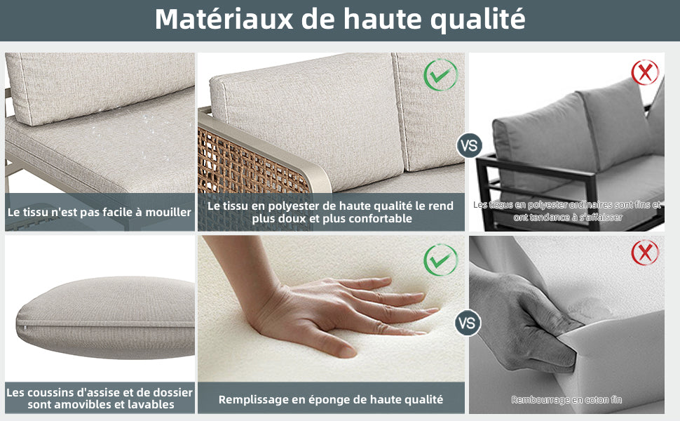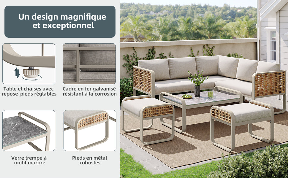 - Design modulable : Configurez votre salon selon vos envies : coin détente, espace repas ou lieu de réception, ce set s'adapte à toutes vos occasions et à tous les espaces extérieurs.