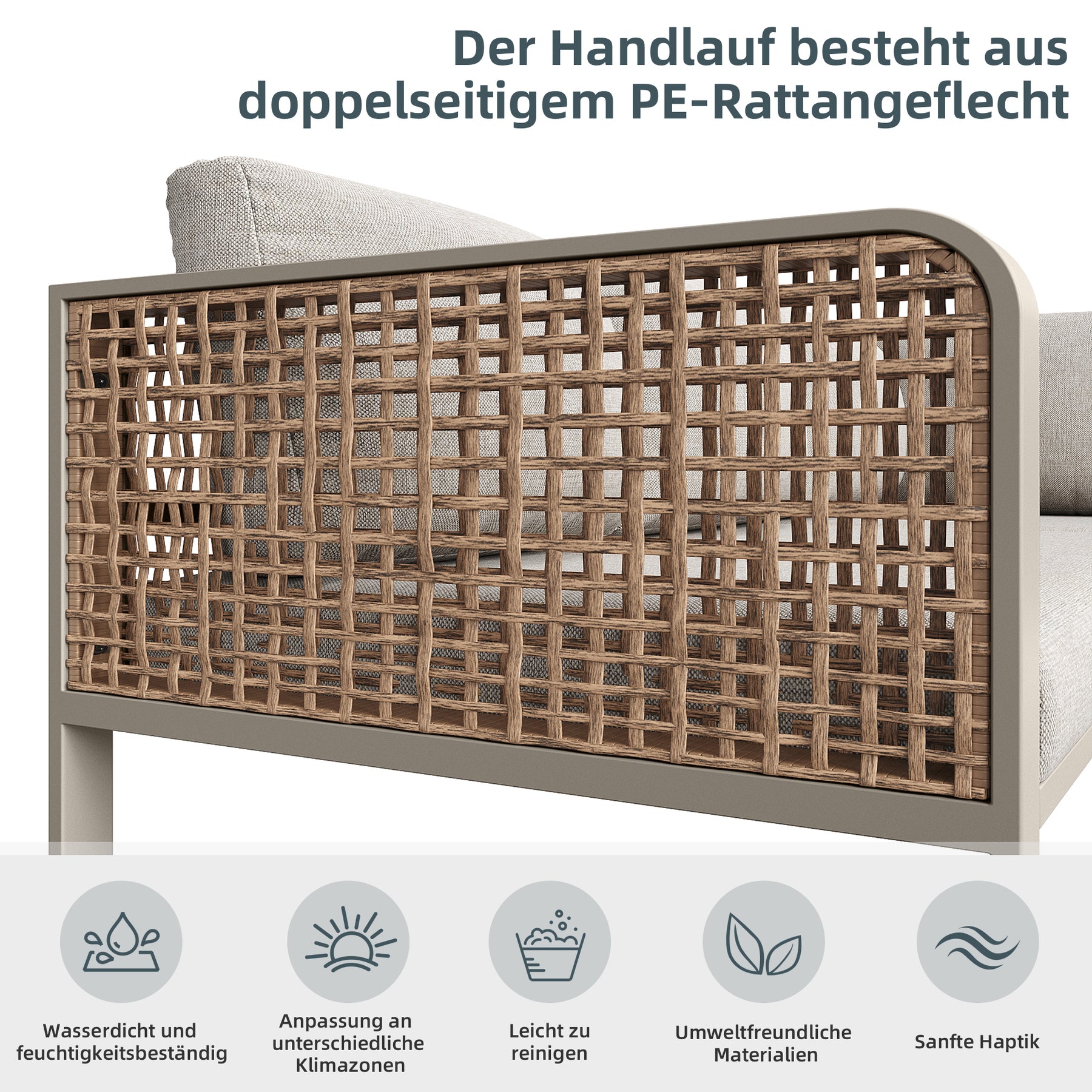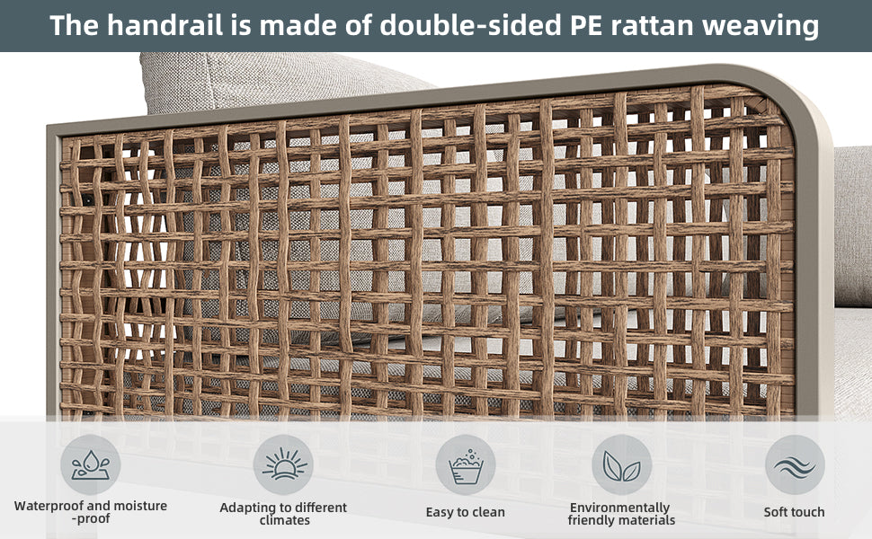 - Matériaux durables et écologiques : Le rotin synthétique est respirant, résistant aux intempéries et facile à entretenir, tandis que la structure en fer galvanisé assure une excellente stabilité et une protection contre la corrosion.