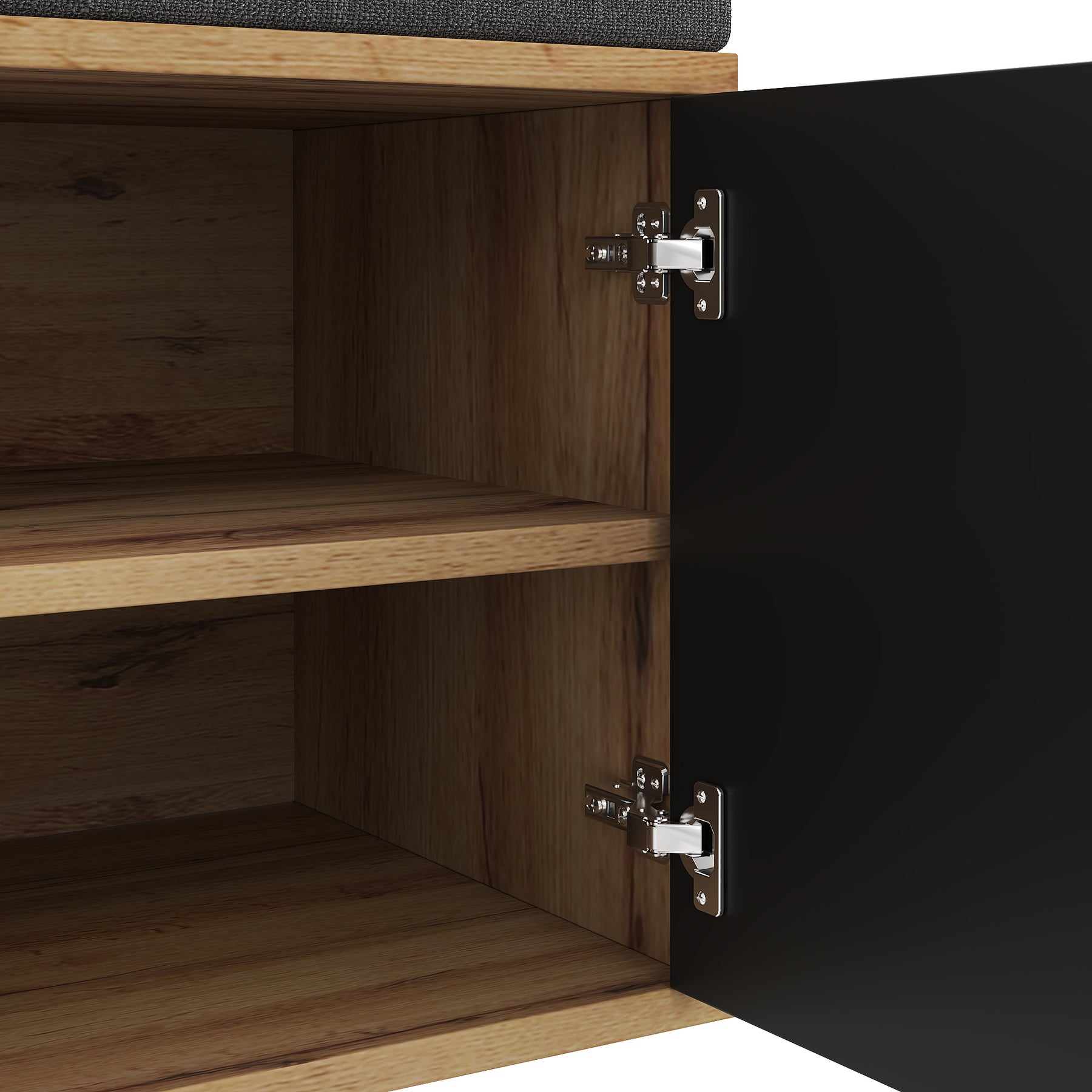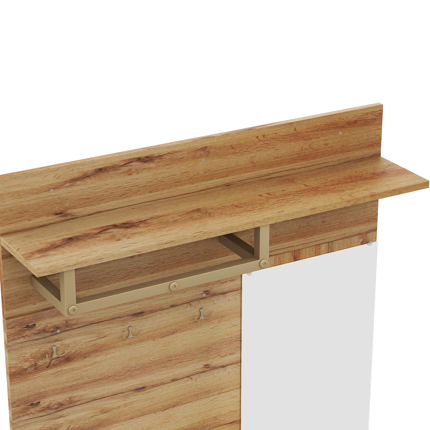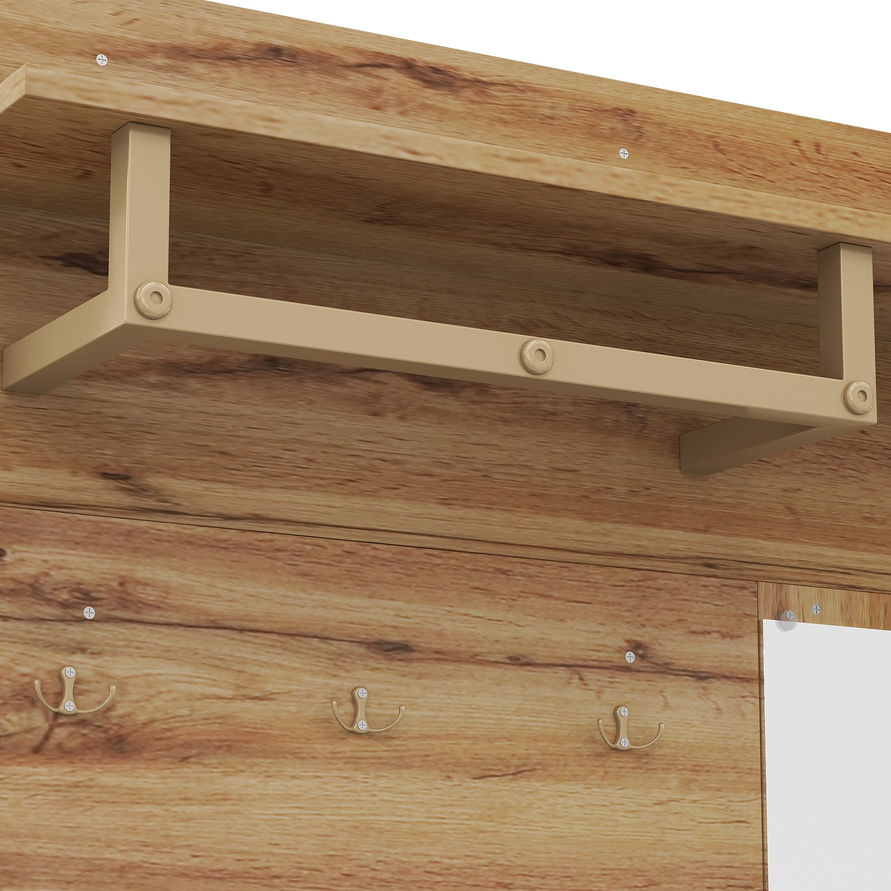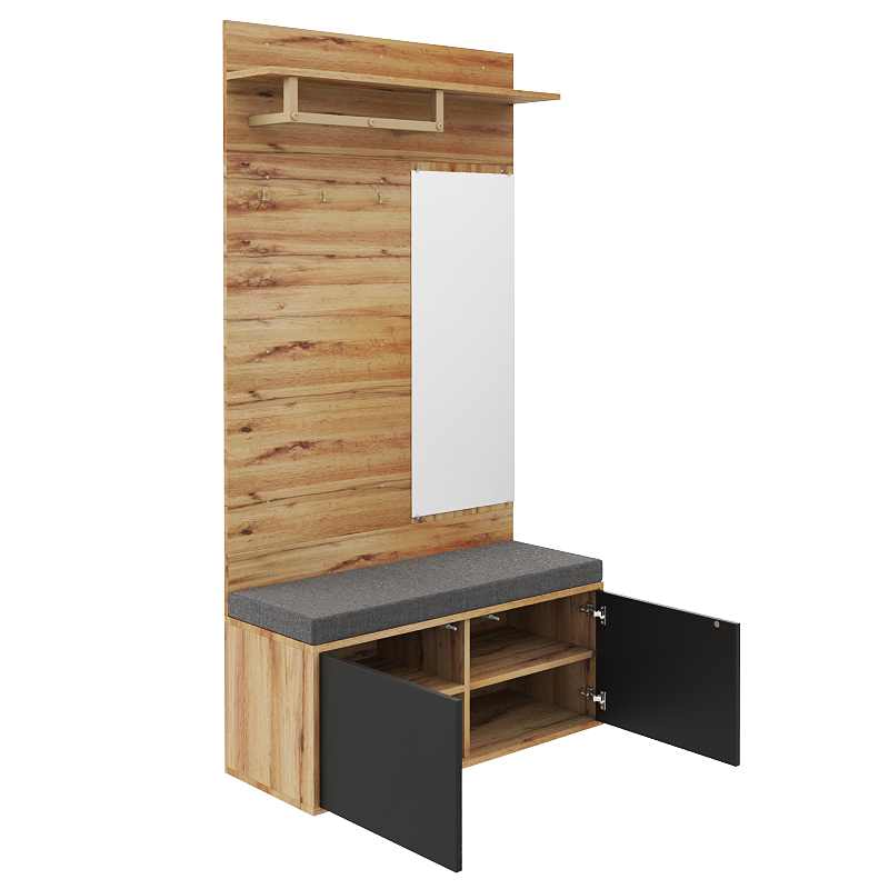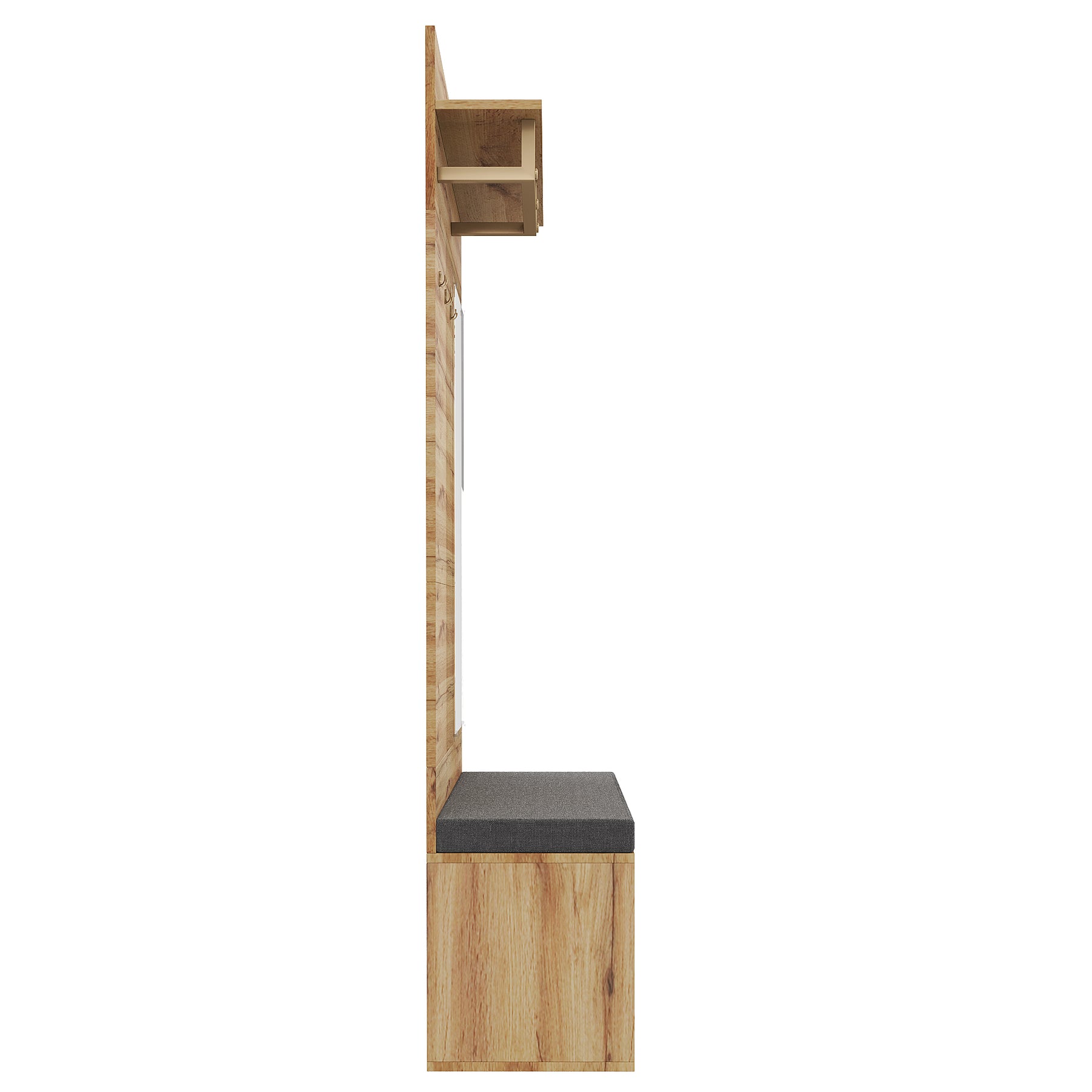 Vestiaire à l'entrée effet bois banc rembourré, miroir, porte-manteaux, miroir et rangement chaussures GALLWASP