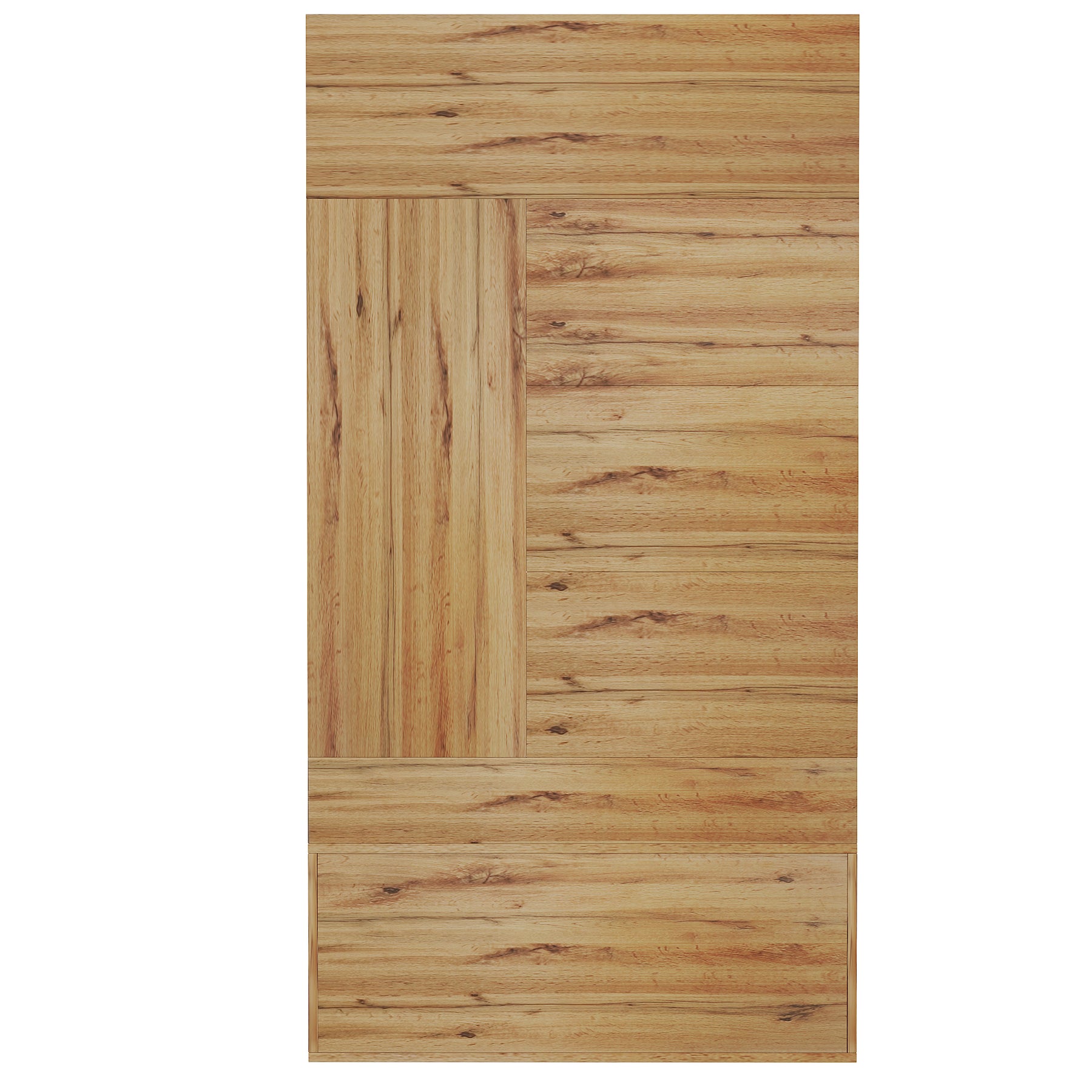 Cet ensemble de vestiaire compact est la solution idéale pour organiser votre entrée avec style et efficacité. Il combine un panneau mural effet bois chaleureux avec des façades de rangement noires. Le meuble intègre un banc rembourré confortable pour vous chausser, un grand miroir pratique pour une dernière vérification avant de sortir, une tringle et des crochets pour suspendre manteaux et accessoires. La partie inférieure dissimule un meuble à chaussures avec des portes à charnières soft-close. L'ensemble, fabriqué à partir de panneaux de particules de haute qualité, offre une durabilité et un aspect élégant qui s'intègrent parfaitement dans tout couloir ou hall d'entrée.