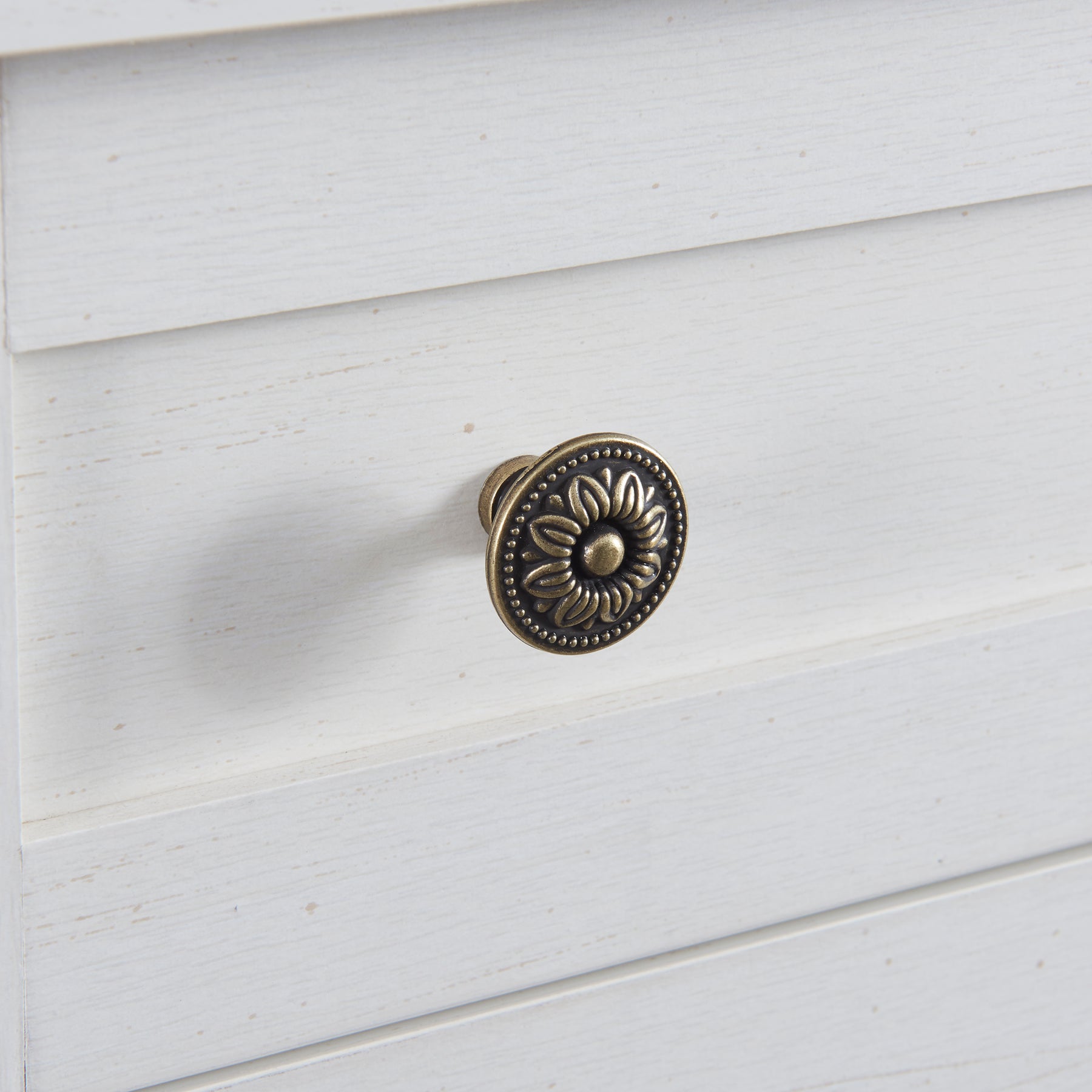 • Design élégant et moderne-rétro : Corps de meuble blanc classique avec des poignées en métal au motif rétro pour un style intemporel.