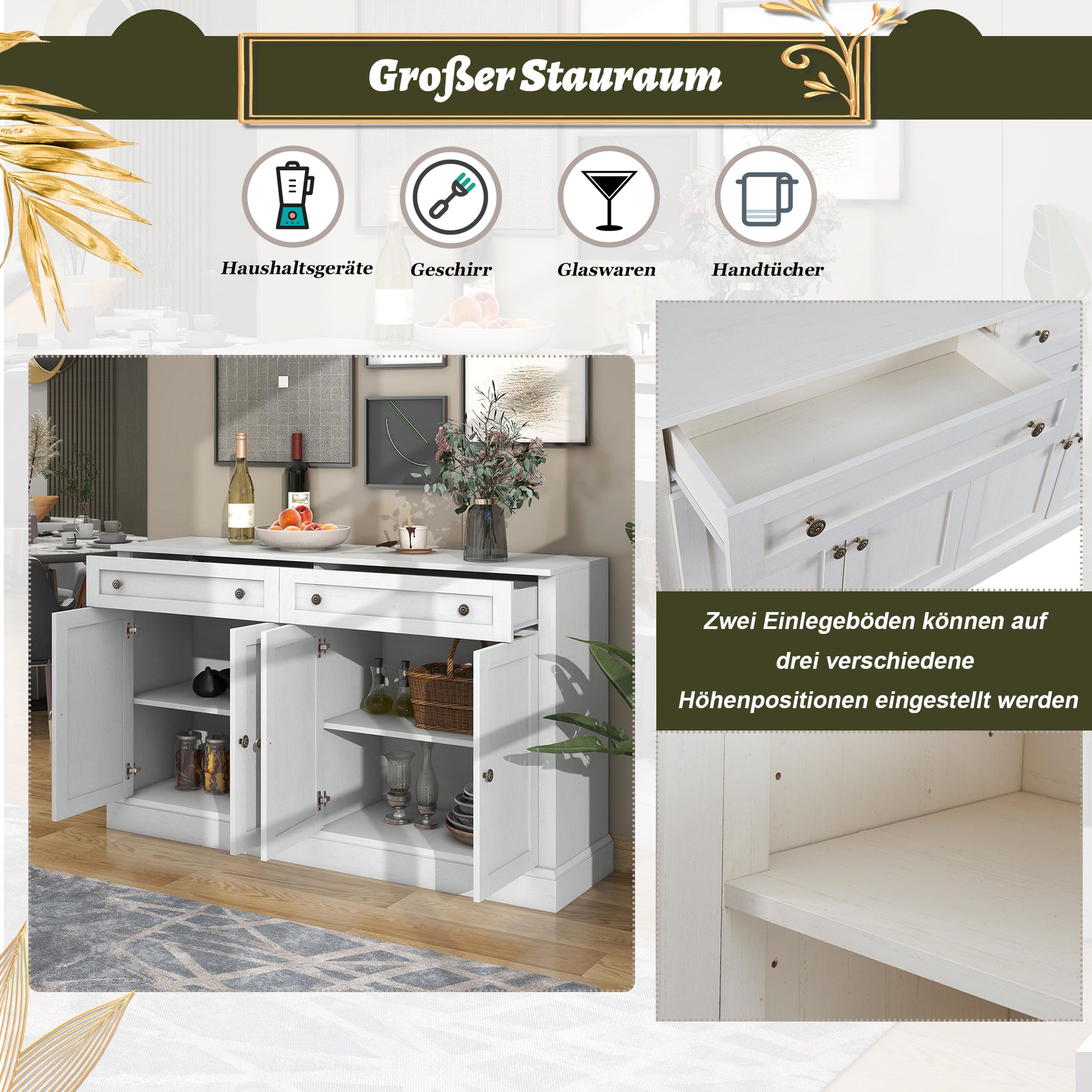 • Capacité de rangement maximale : Comprend quatre portes et deux tiroirs offrant un espace généreux pour organiser la vaisselle, les accessoires ou les vêtements.