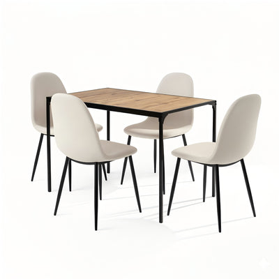 Ensemble de table et 4 chaises effet bois, blanc et noirs MILLIKEN 120 DARK+CHARLTON FABRIC BEIGE BLACK LEG