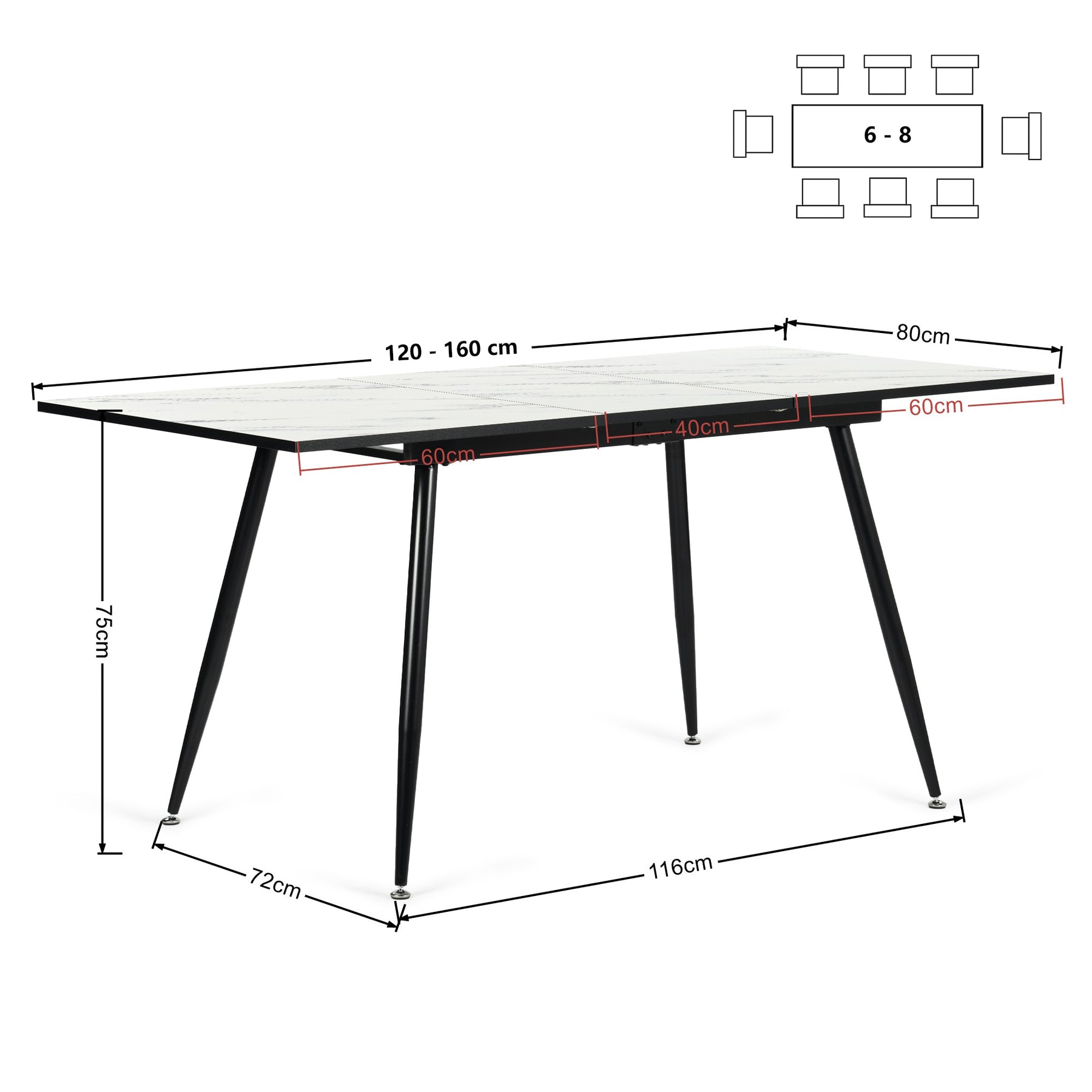 • Pour 4-6 PERSONNES : Grâce à son large plateau de la table 120-160 cm, la table offre de l'espace pour 4 à 6 personnes pour partager un repas à plusieurs ou discuter autour d'un verre. La table se nettoie facilement avec un chiffon humide.