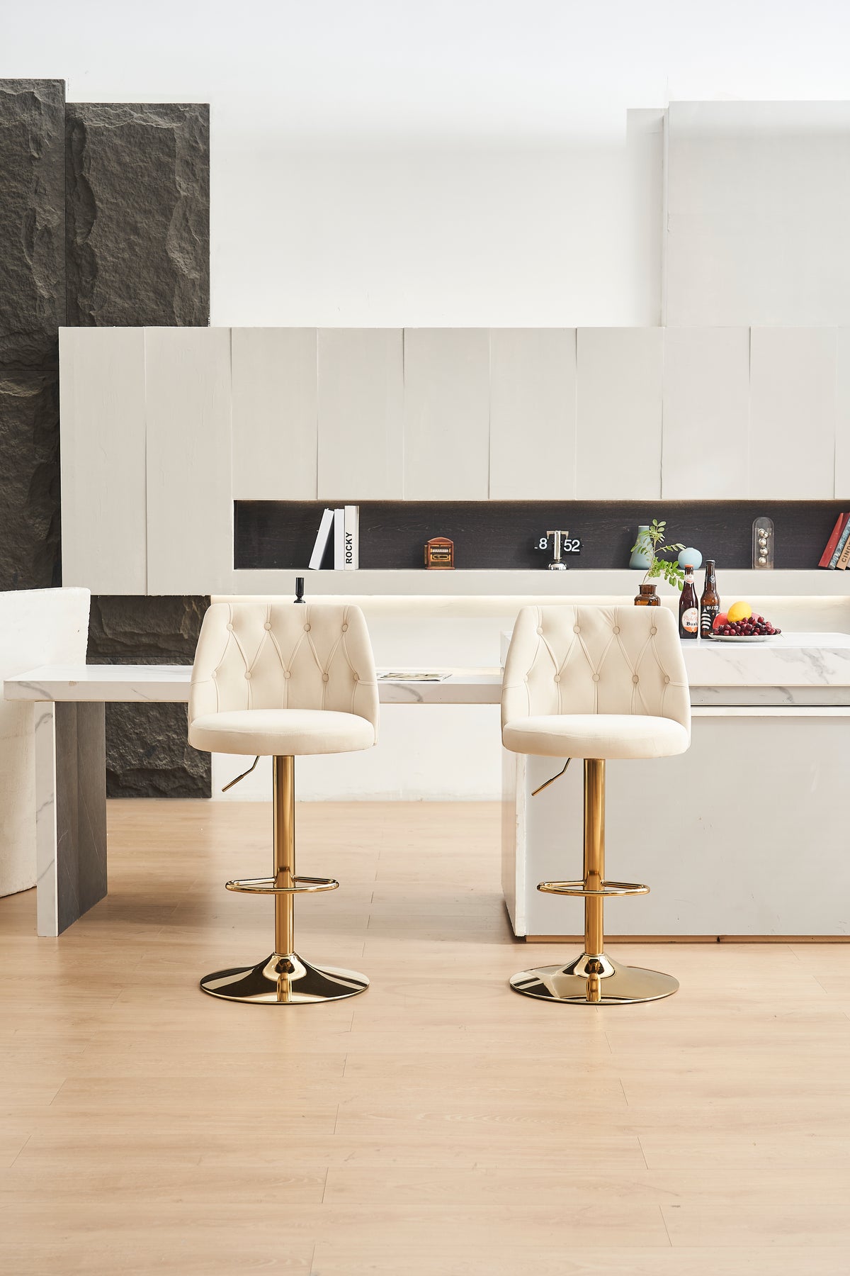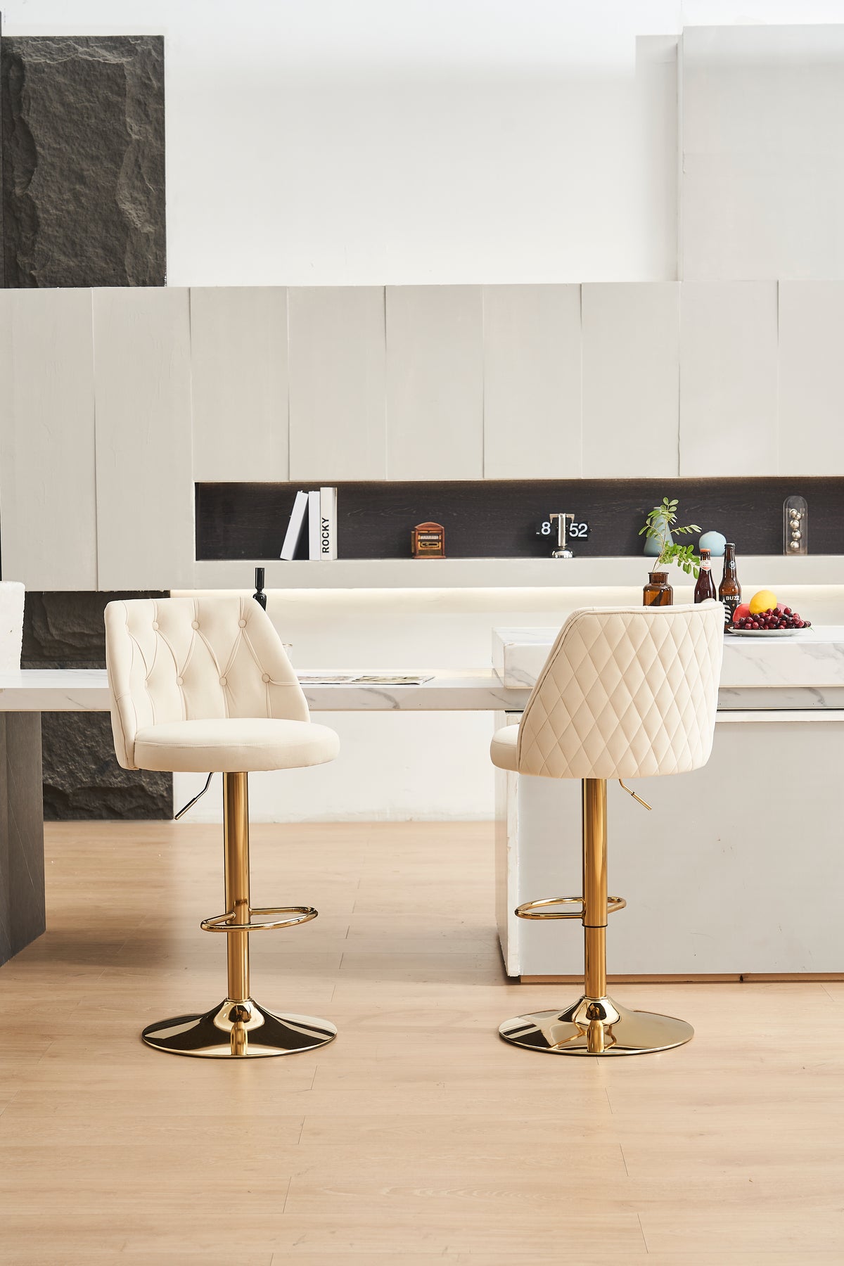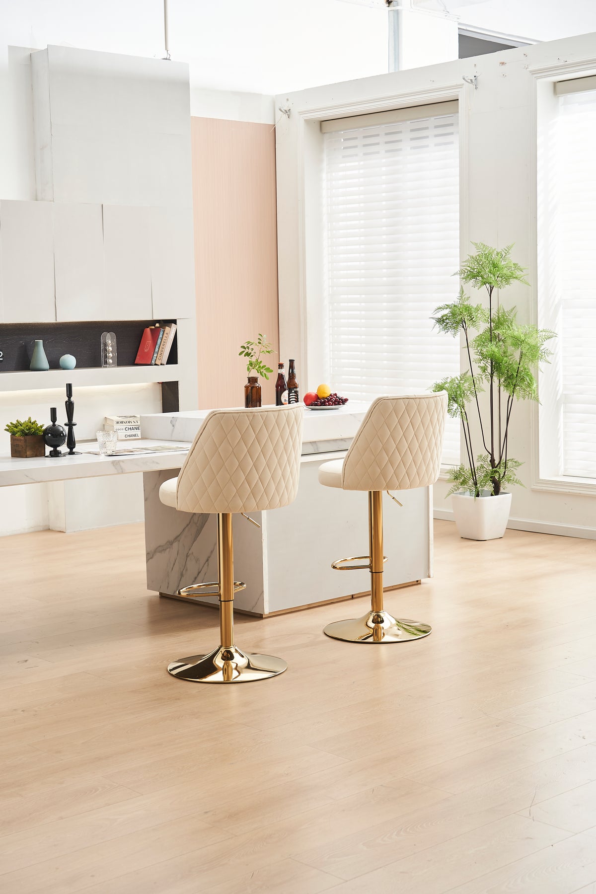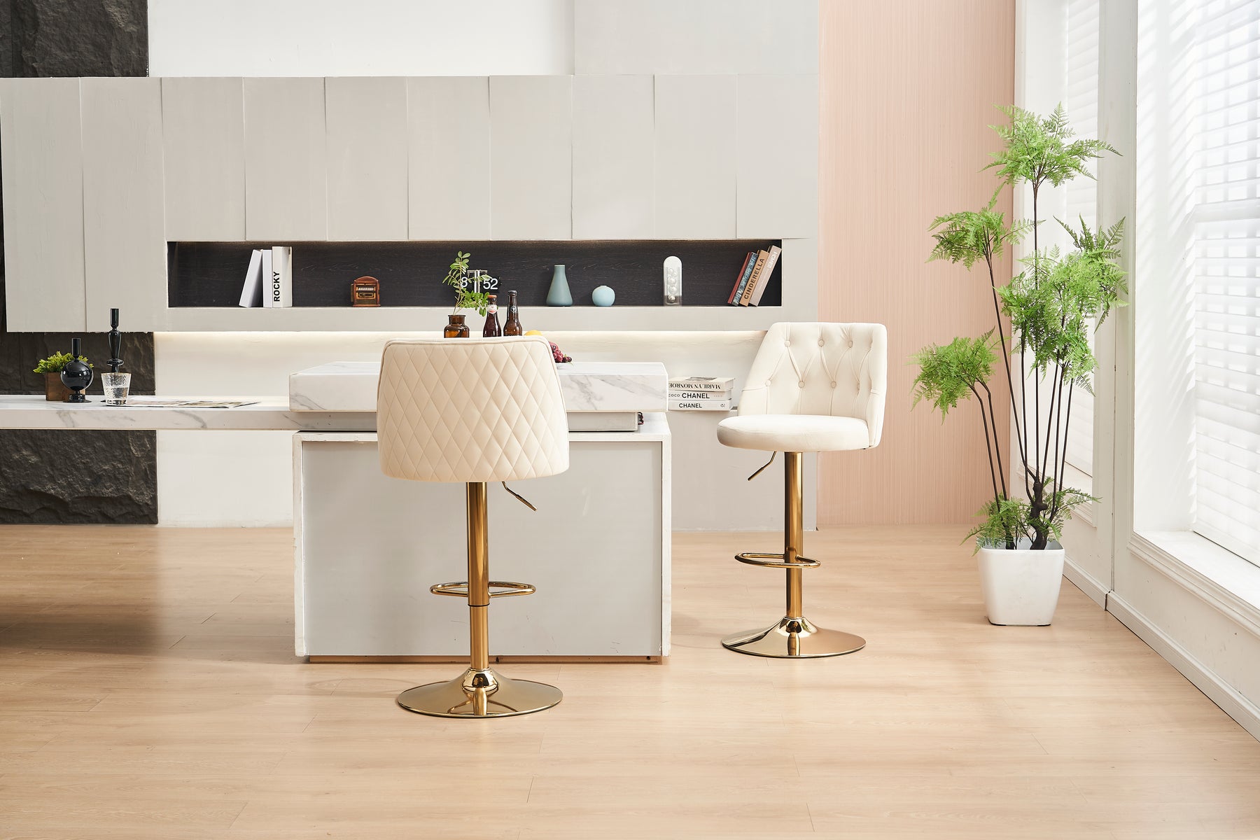 Imaginez-vous savourer un petit-déjeuner en famille ou partager un apéritif entre amis, confortablement installé sur ces tabourets de bar modernes en velours beige. Leur design élégant et leur assise moelleuse transforment chaque moment passé à la cuisine ou au bar en un véritable instant de détente. Grâce à leur hauteur réglable et leur fonction pivotante, ces chaises s’adaptent parfaitement à toutes les ambiances et à tous les comptoirs, pour un confort sur mesure.