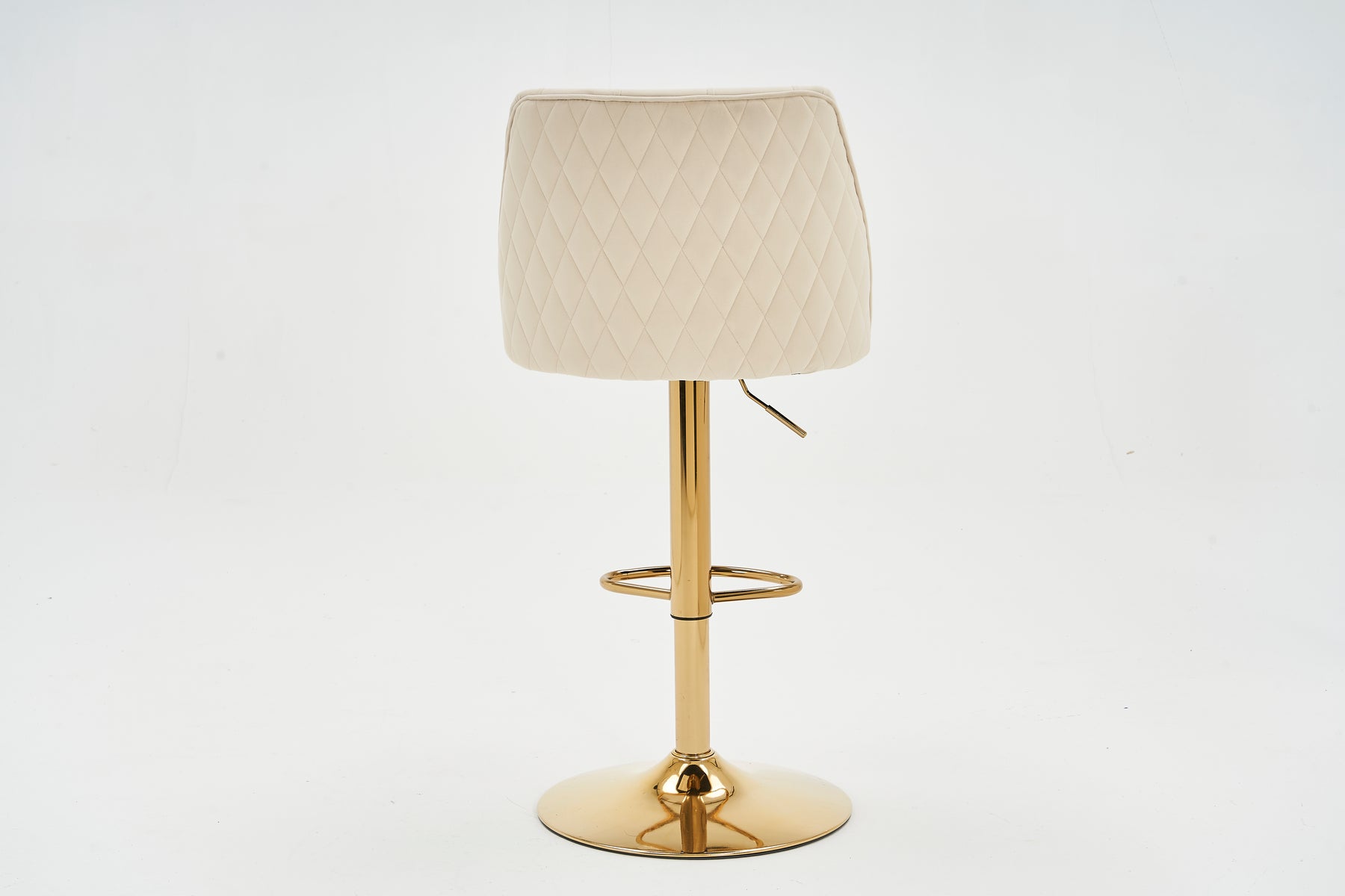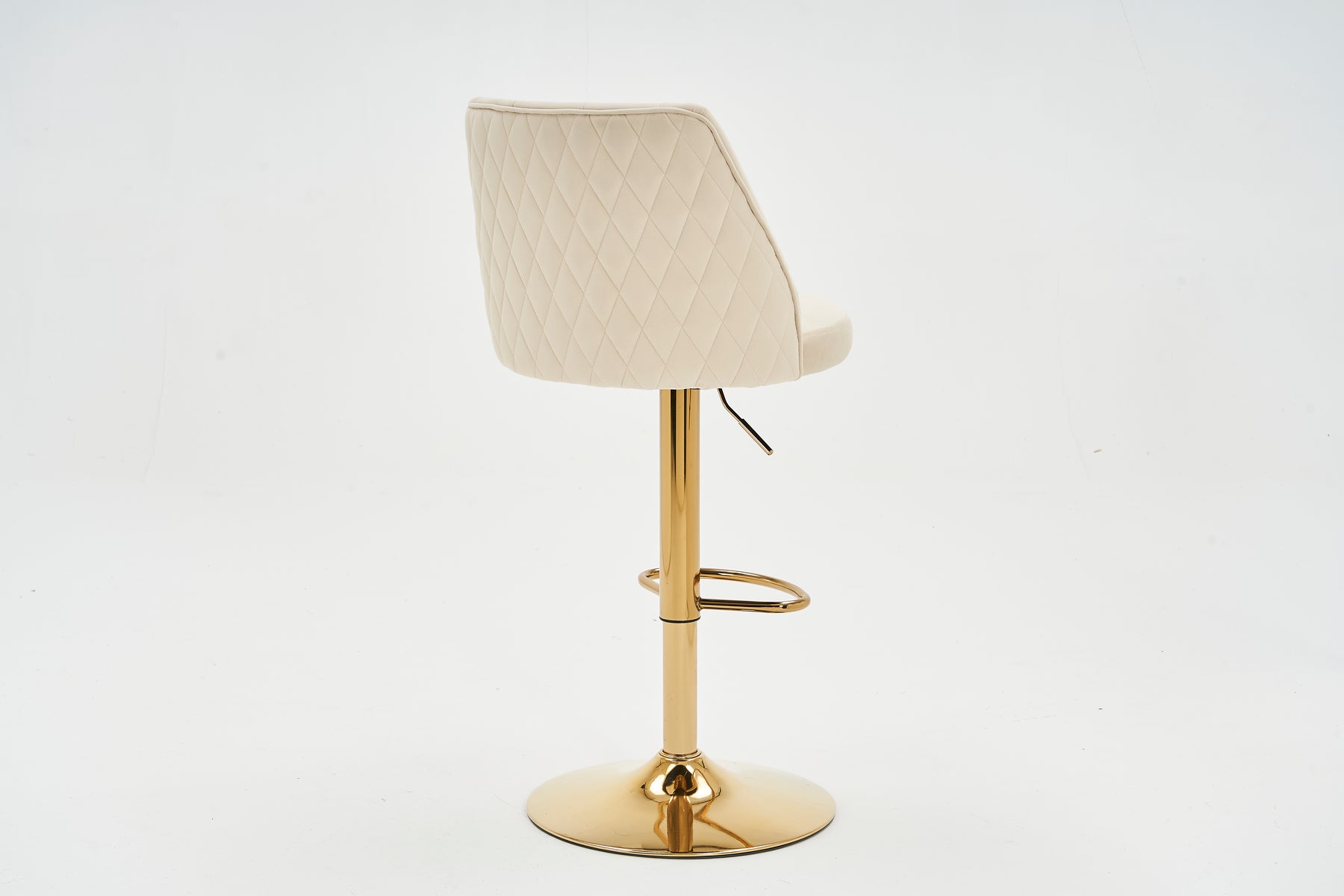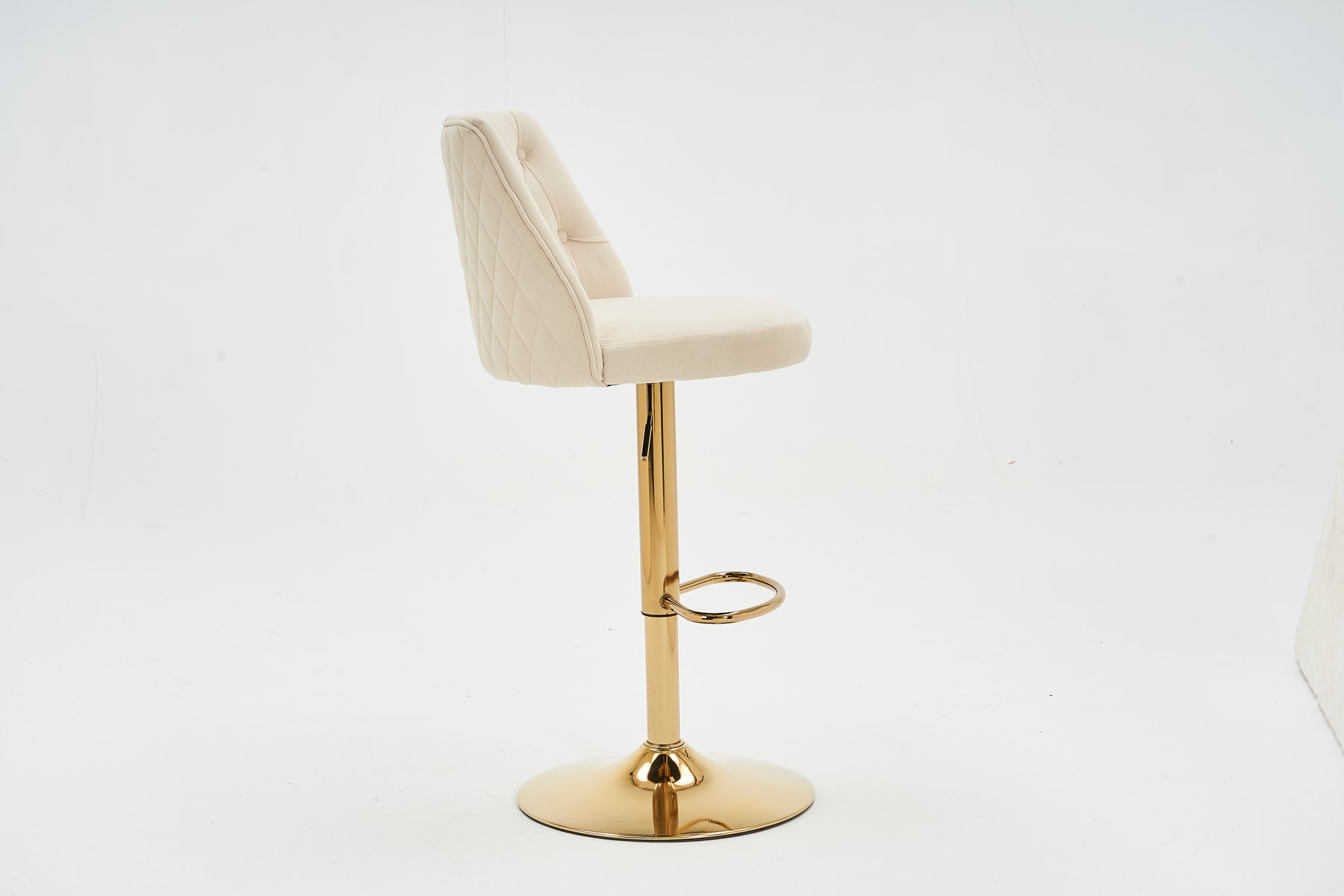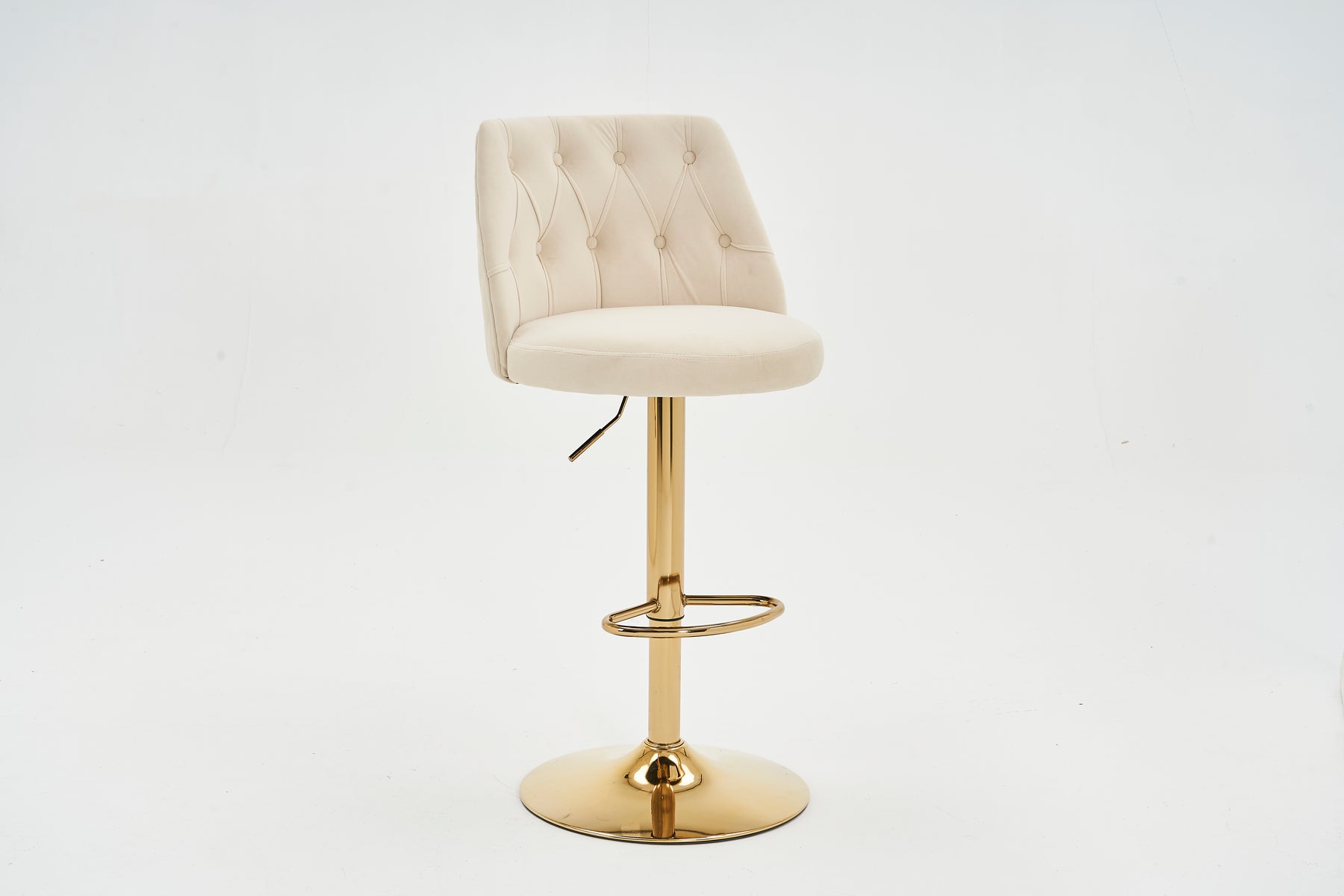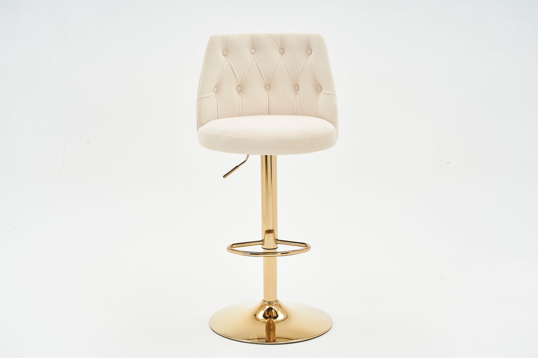 Lot de 2 tabourets de bar capitonné en velours beige, hauteur réglable et repose-pieds
