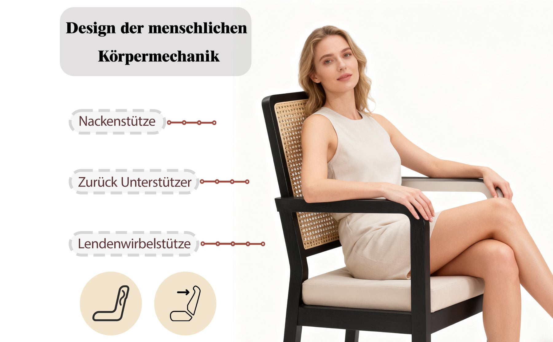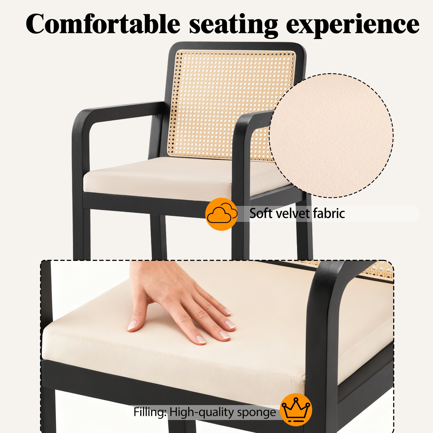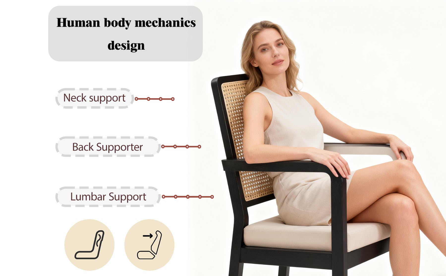 • Artisanat Authentique : Dossier en cannage véritable tressé à la main, offrant une excellente respirabilité et un charme vintage intemporel.