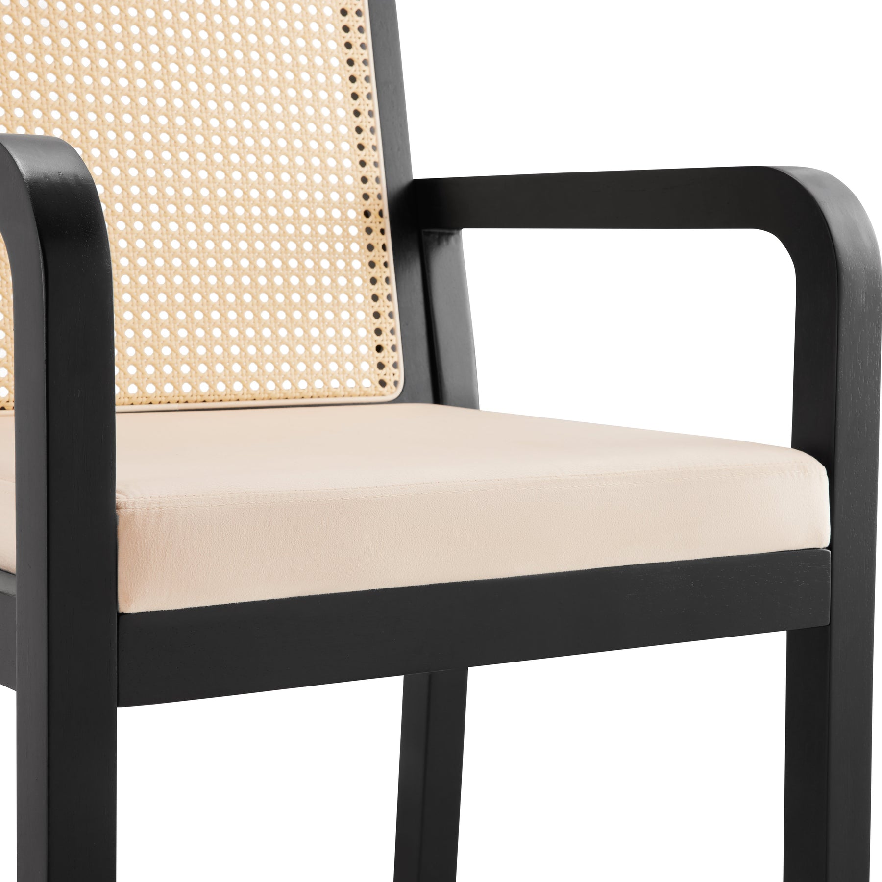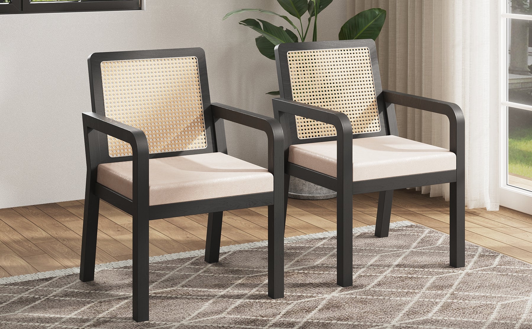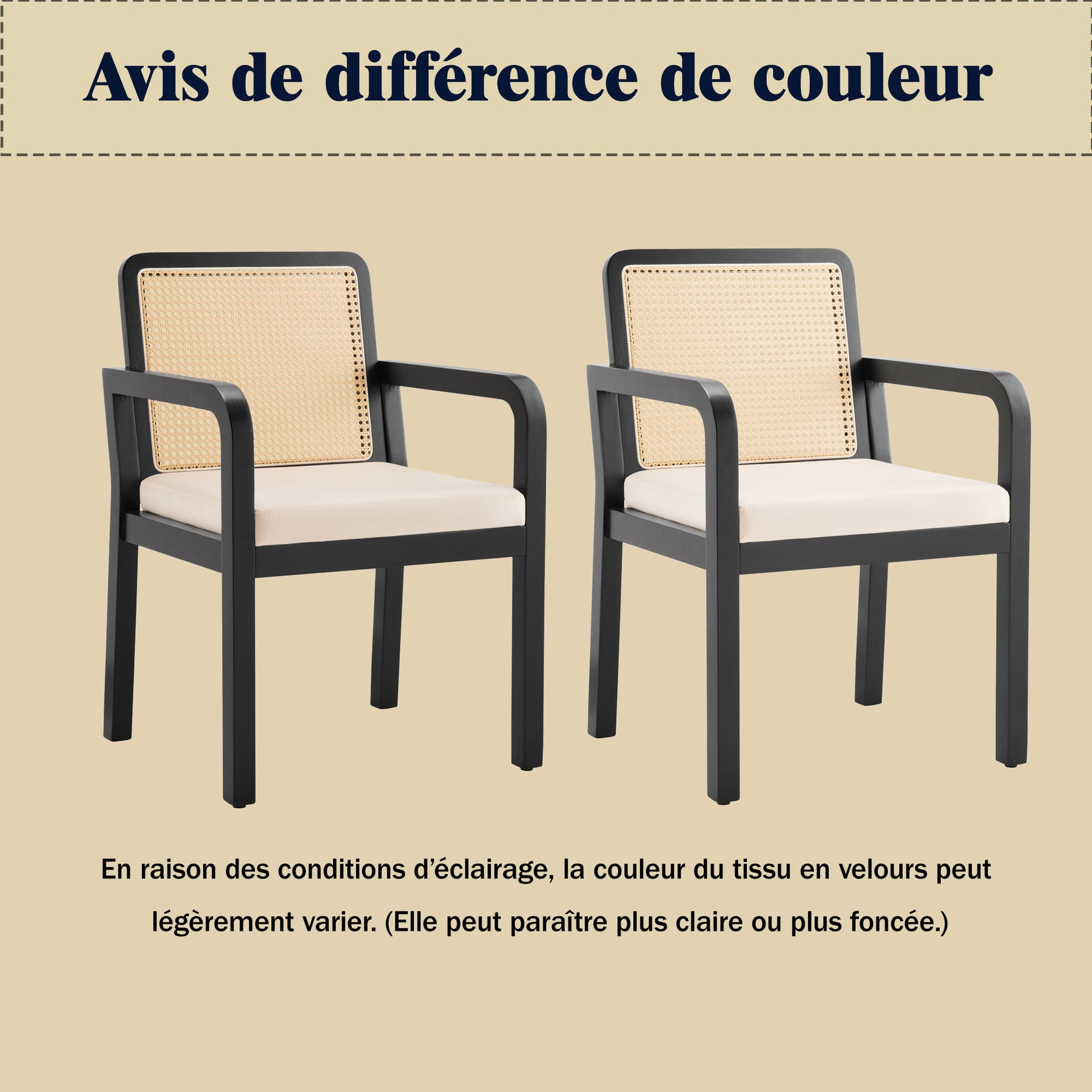 Lot de 2 de chaises de salle à manger dossier rotin, velours beige et bois noir - élégance rétro HELIOCURRENT