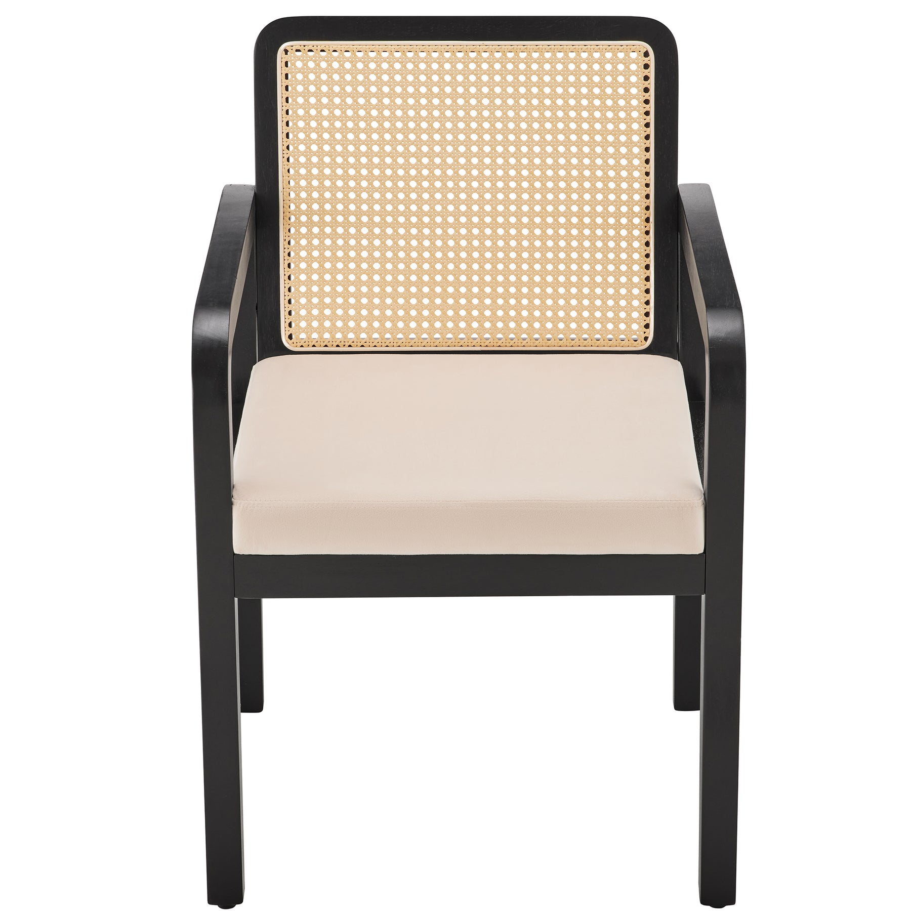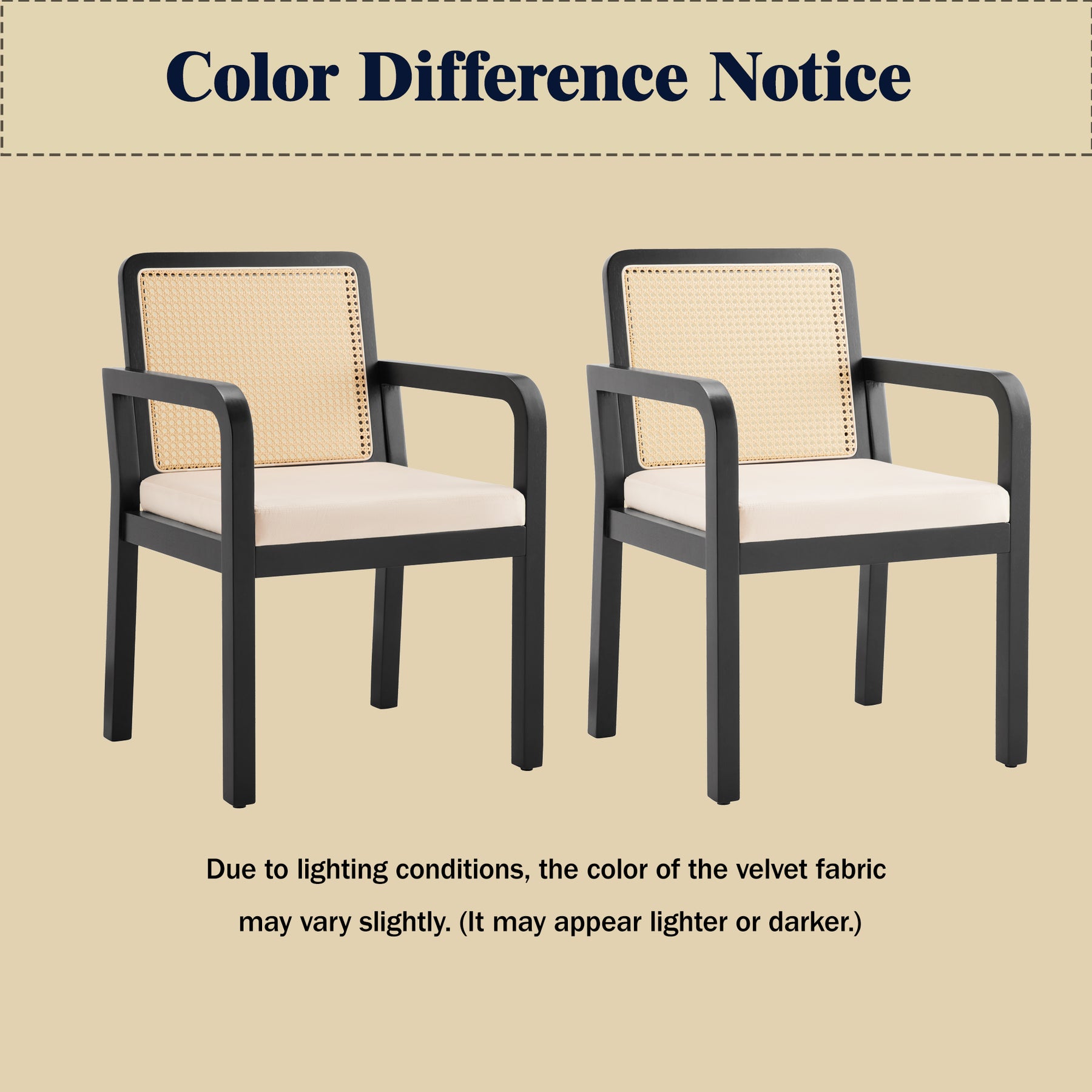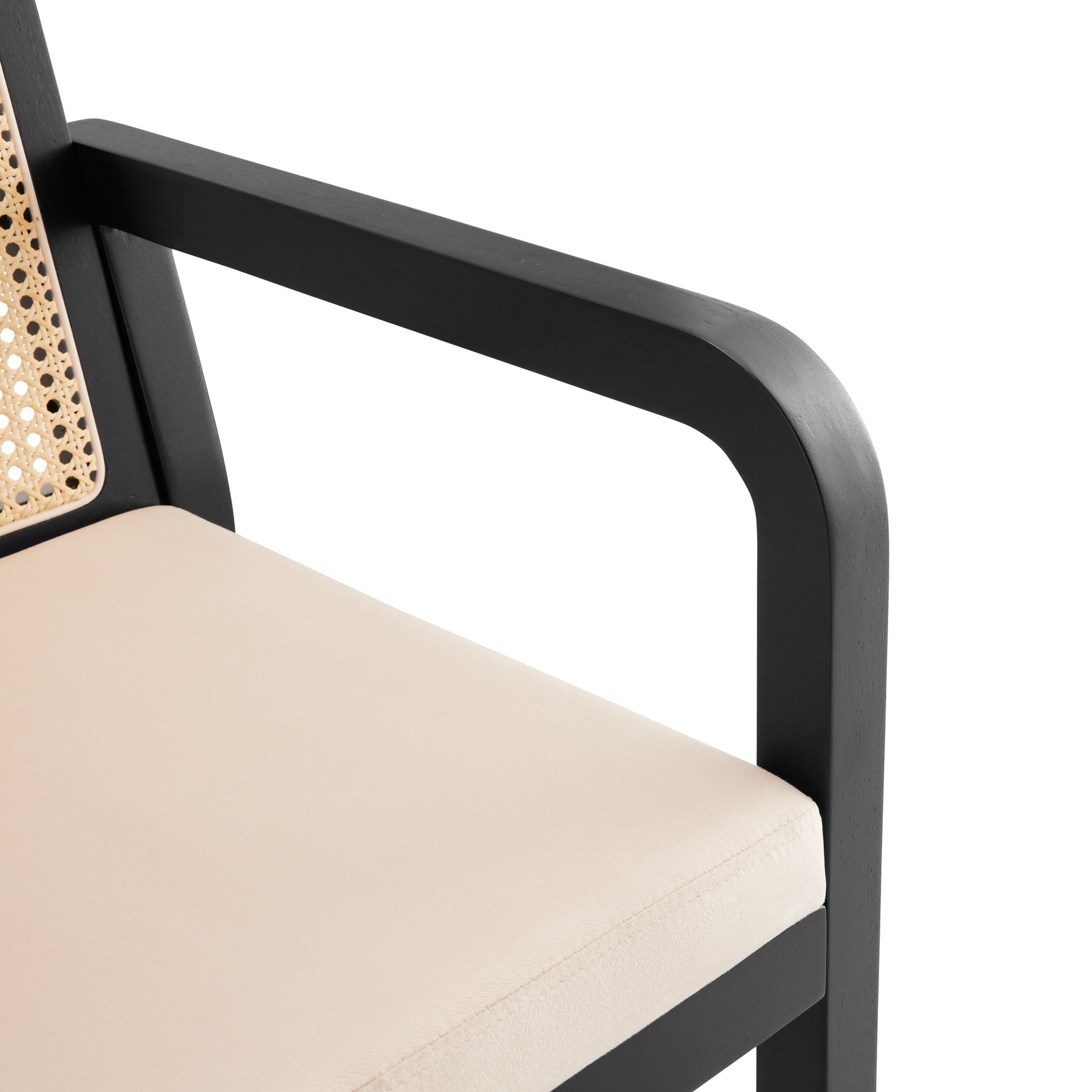 Lot de 2 de chaises de salle à manger dossier rotin, velours beige et bois noir - élégance rétro HELIOCURRENT
