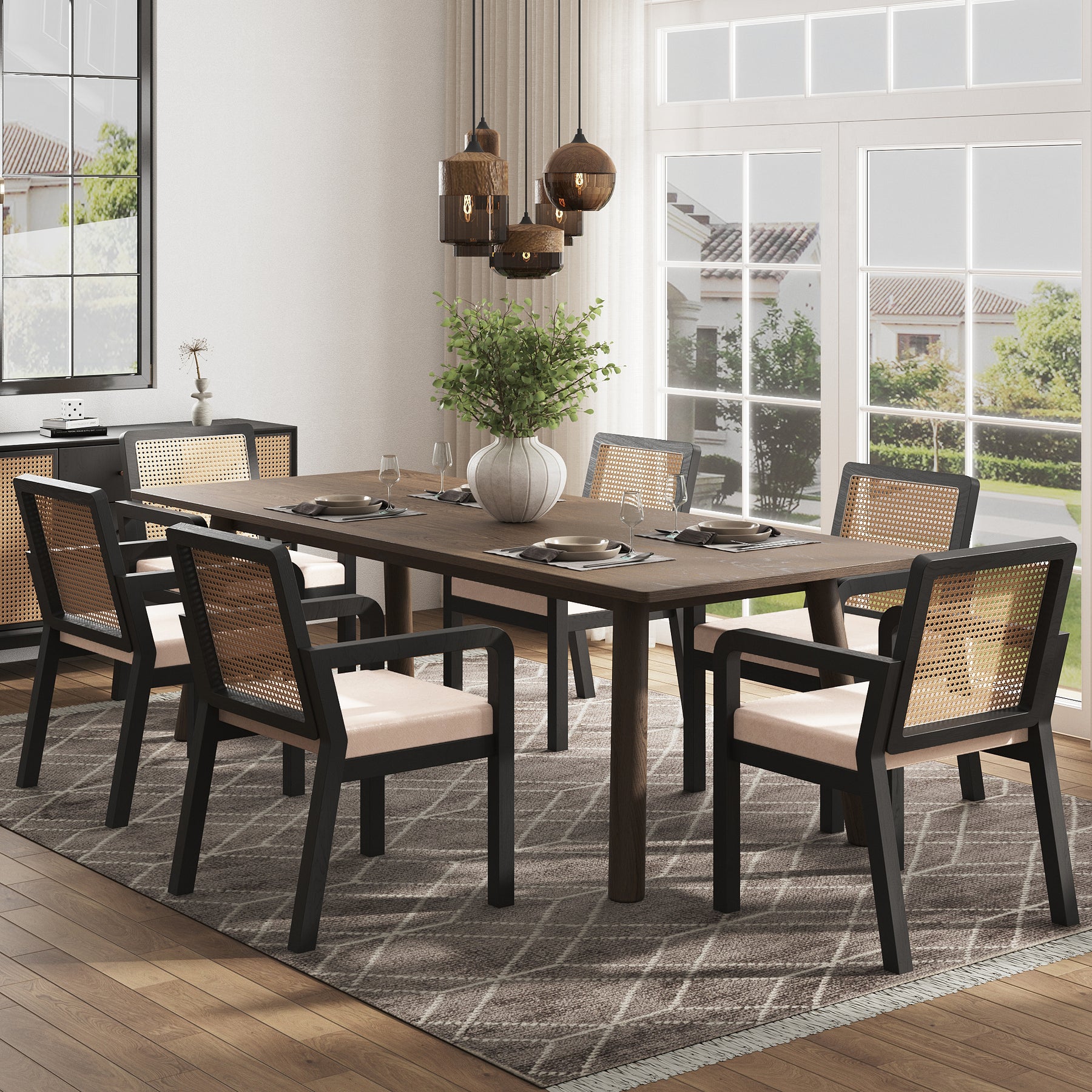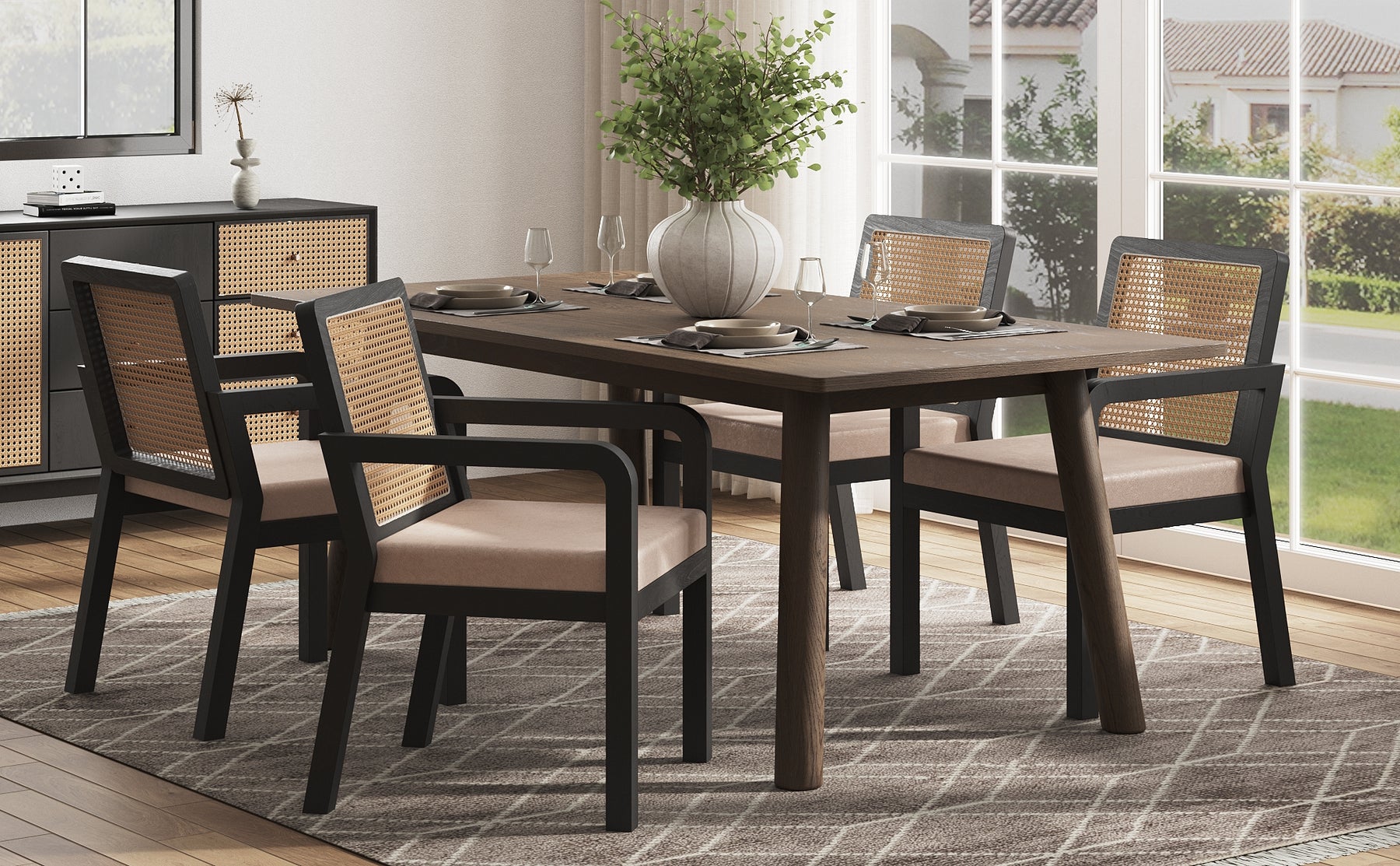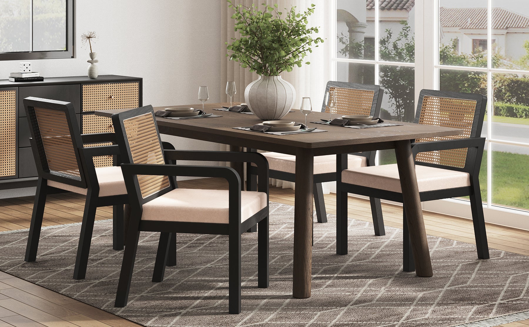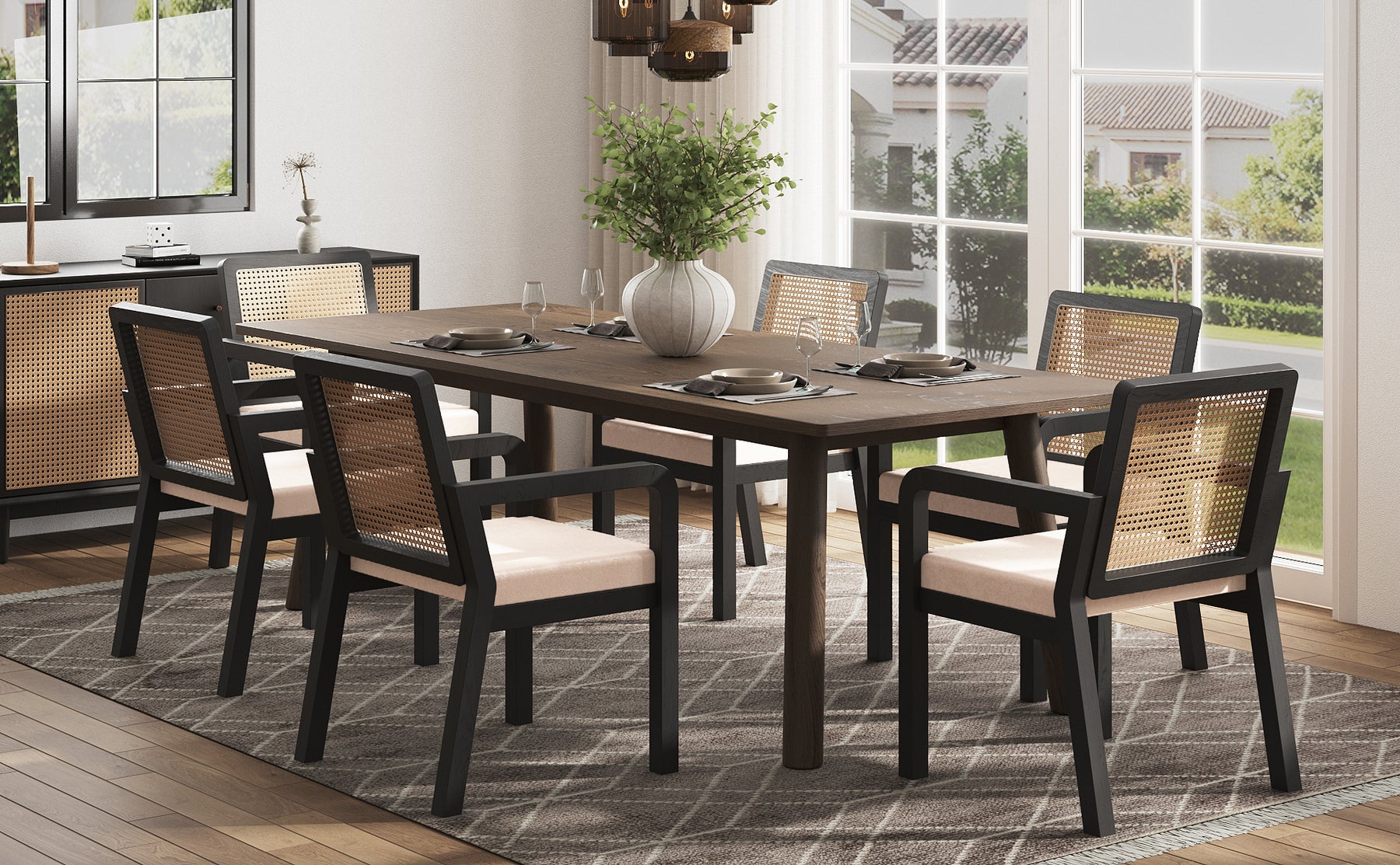 • Design de Caractère : Un mélange sophistiqué de rotin naturel et de finitions noires mates pour un contraste visuel saisissant et élégant.