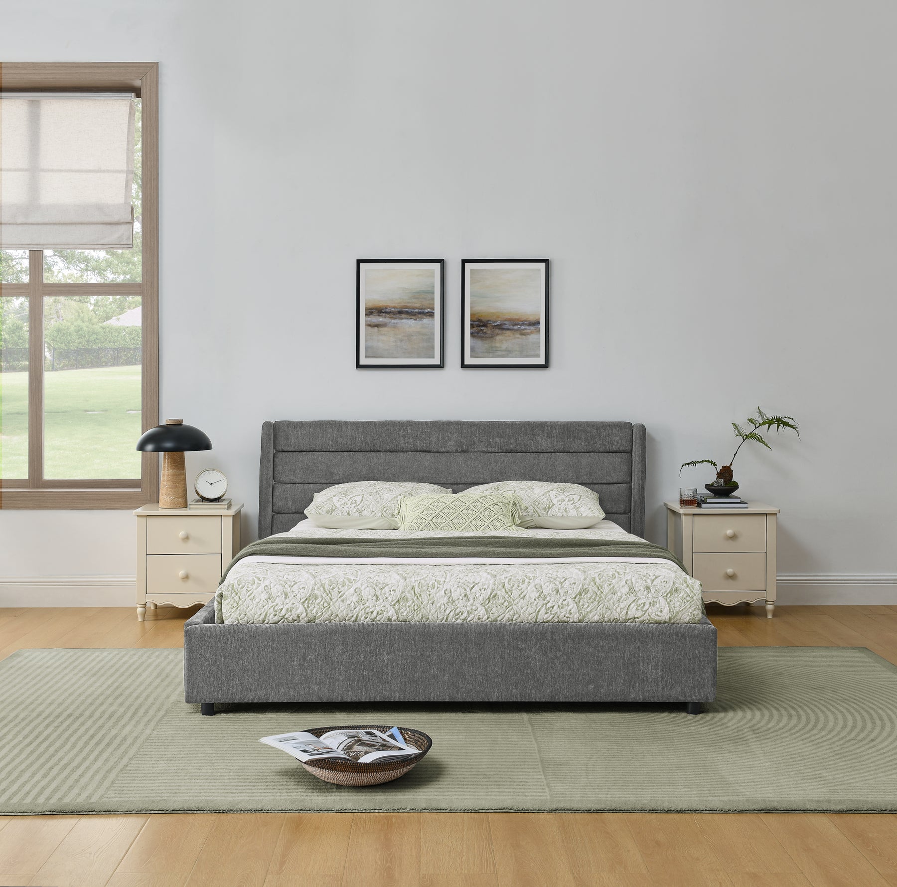 Design Élégant et Contemporain : Ce lit se distingue par sa tête de lit sophistiquée avec un rembourrage à cannelures horizontales, apportant une touche de modernité et de confort à votre chambre à coucher.