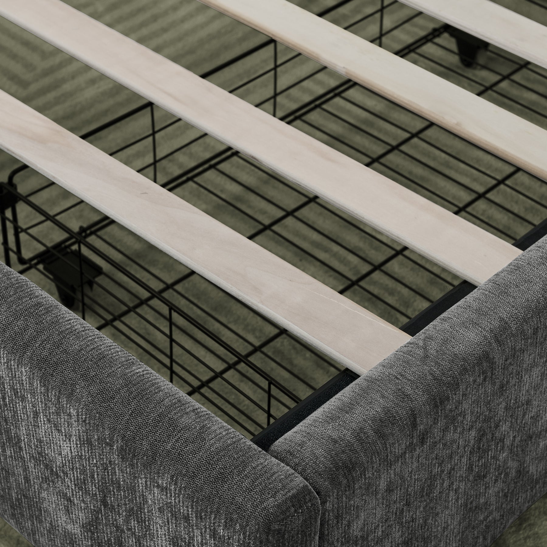 Revêtement en Chenille Haut de Gamme : Une finition en tissu chenille gris, à la fois douce au toucher et résistante, apportant une touche de chaleur et de modernité à votre décoration intérieure.