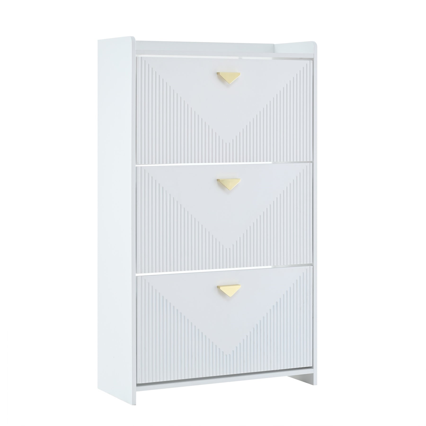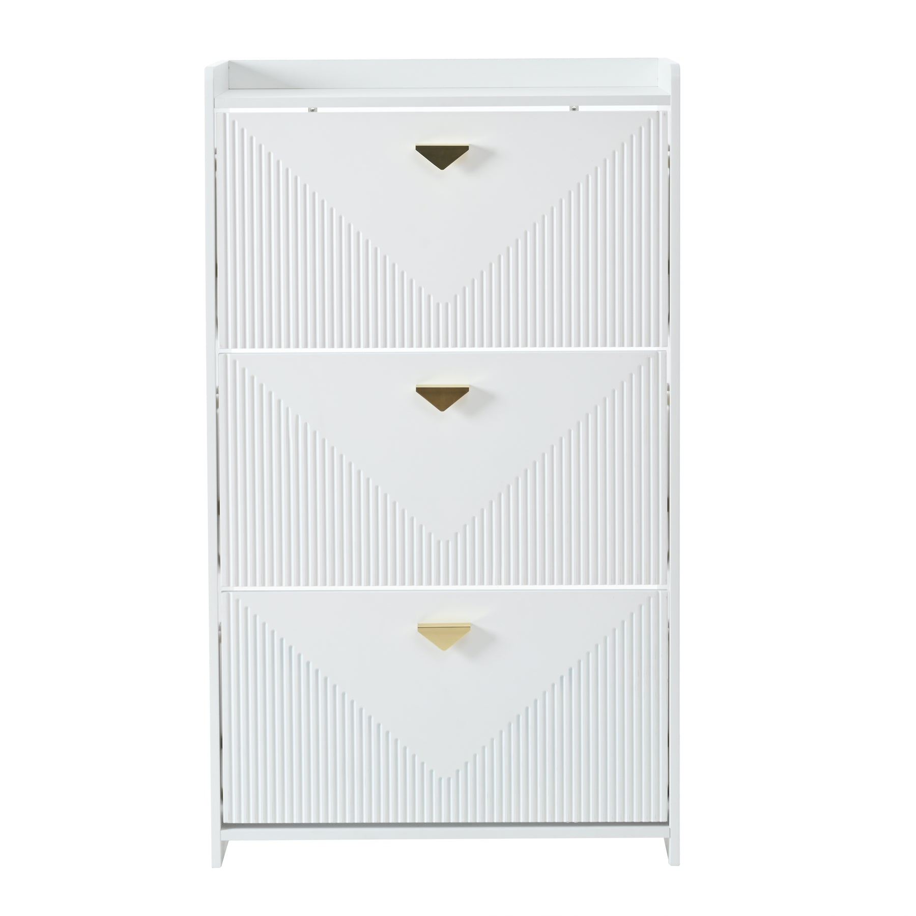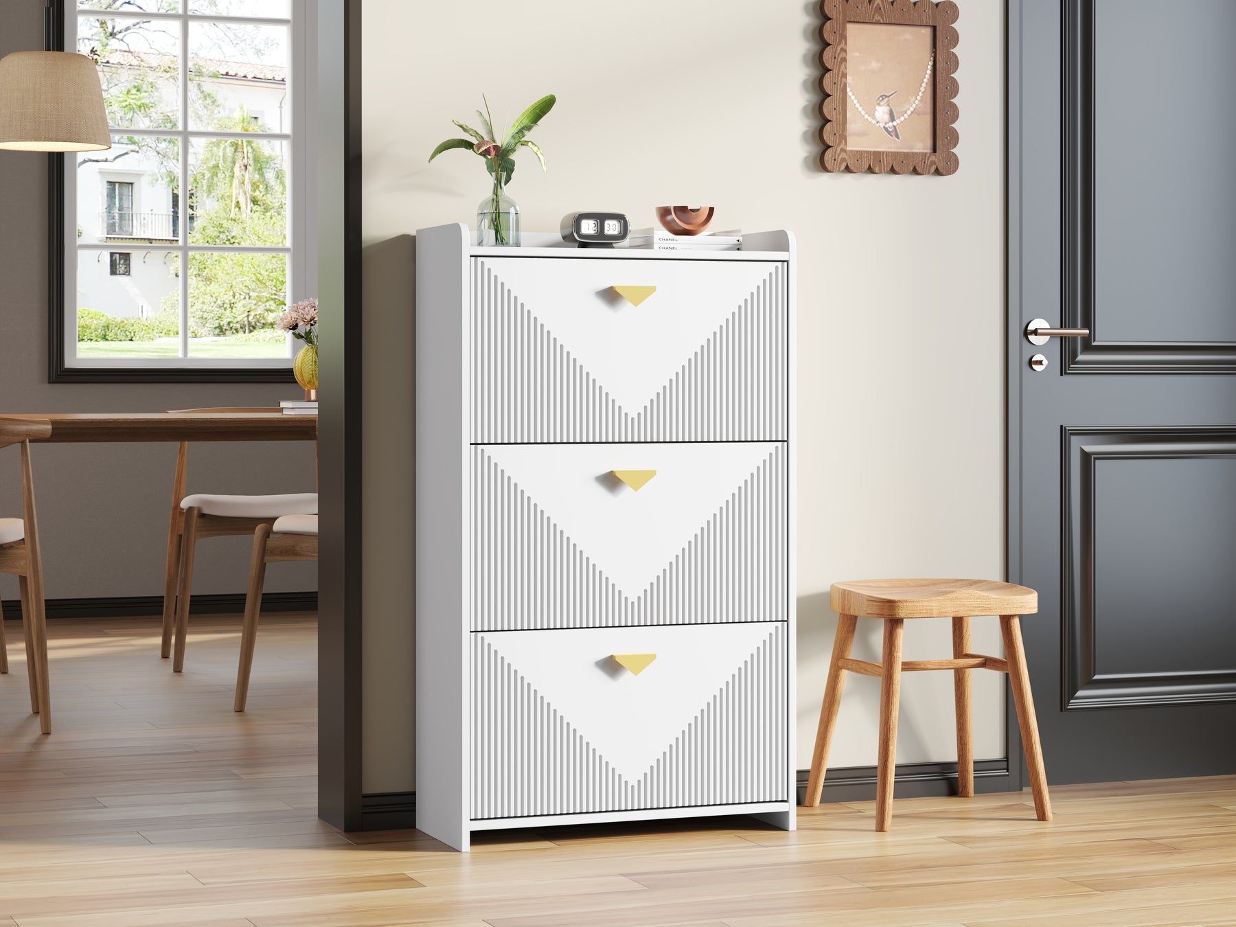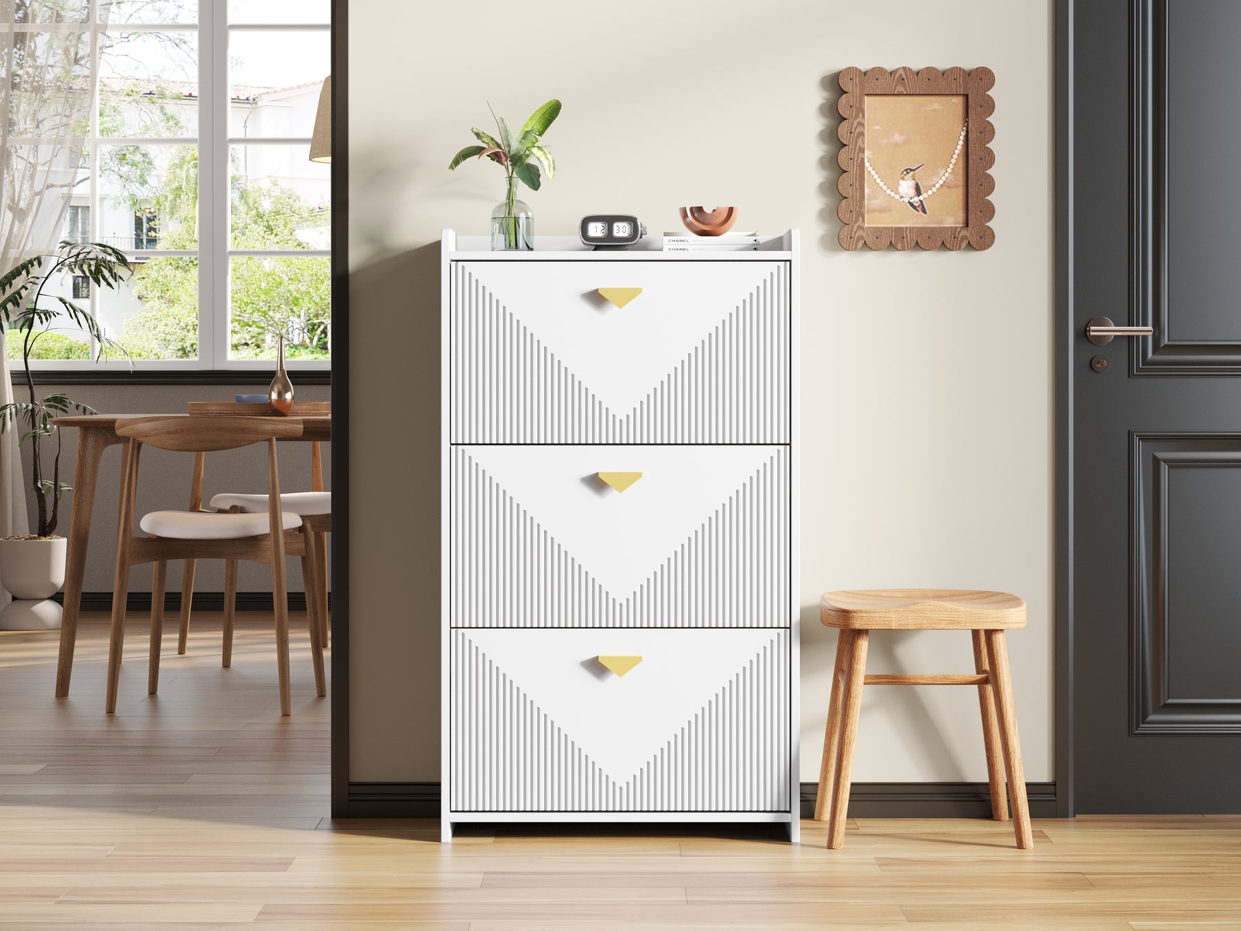 Meuble à chaussures blanc ornée de rayures élégantes 3 abattants 70x30x120 cm TRAVERSEINE