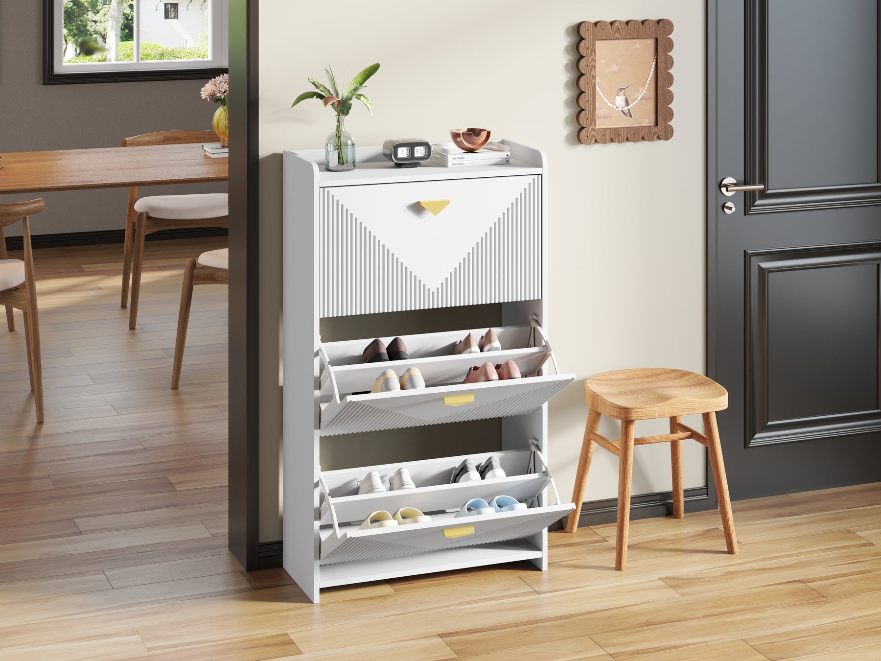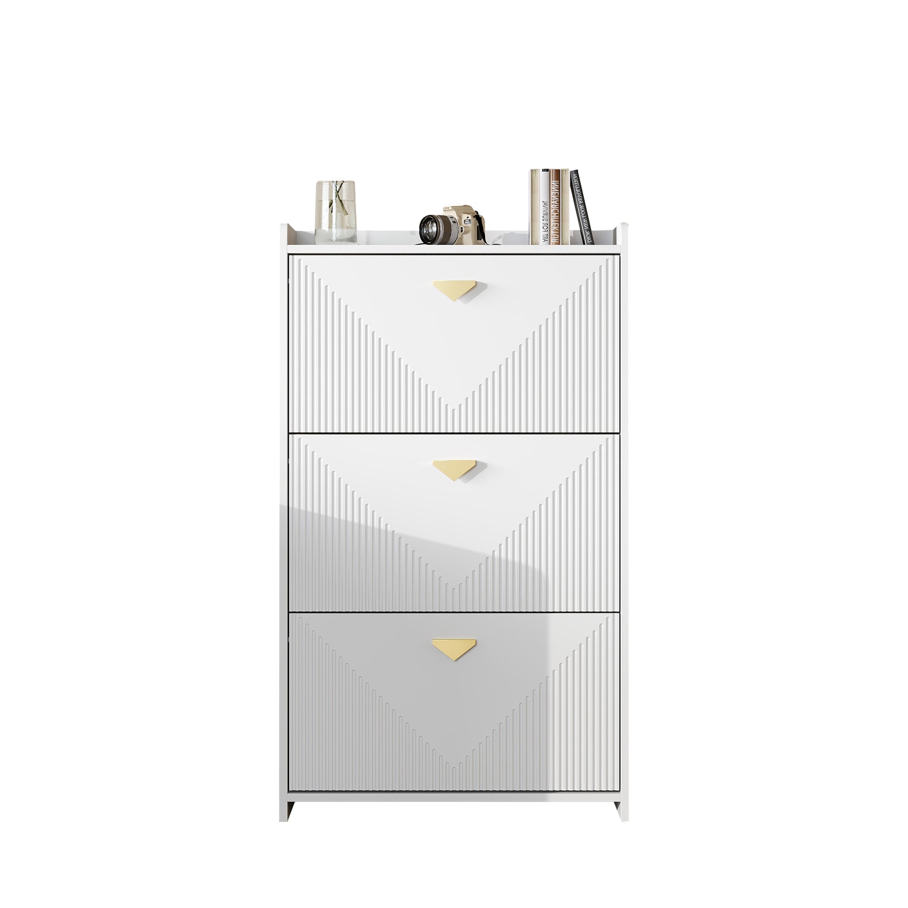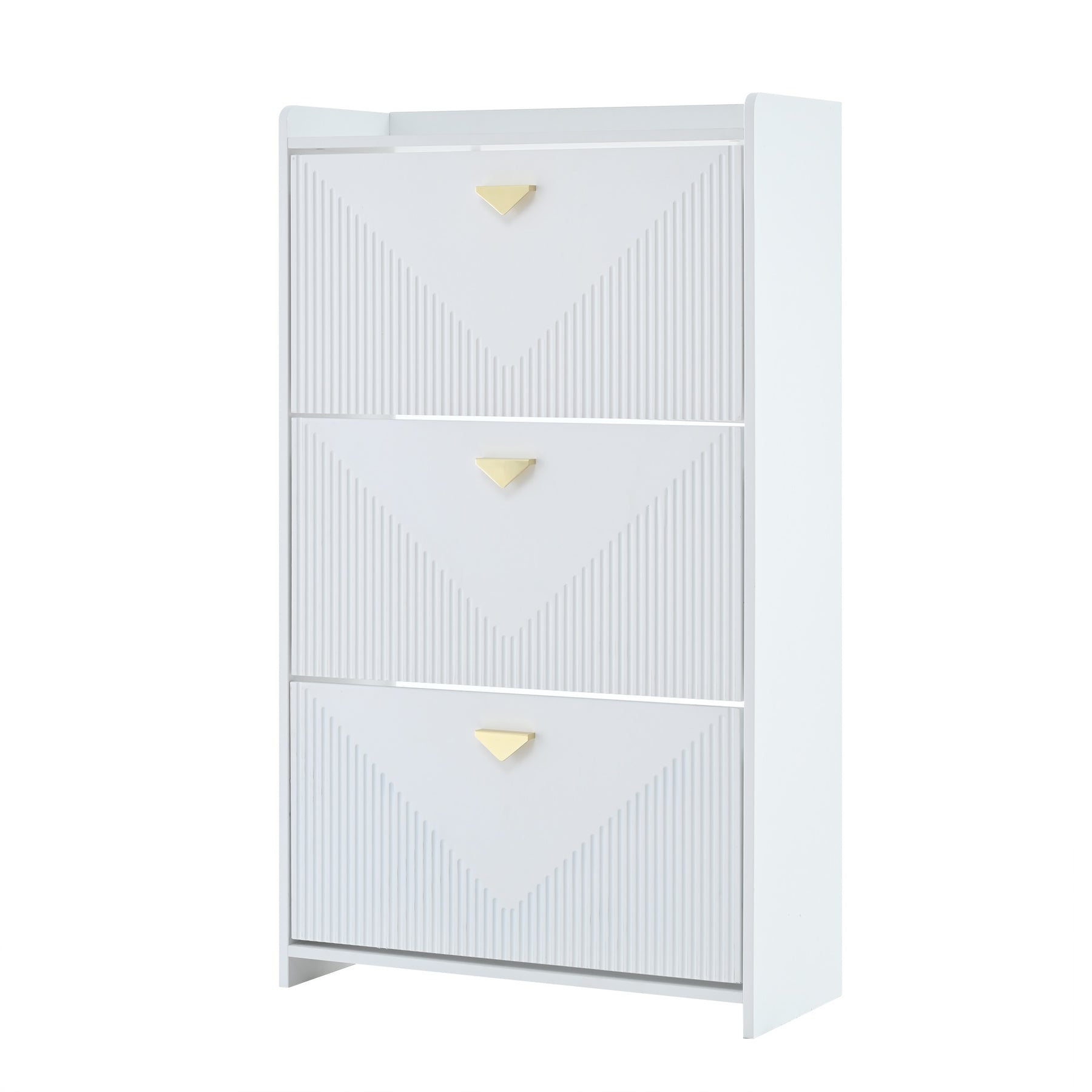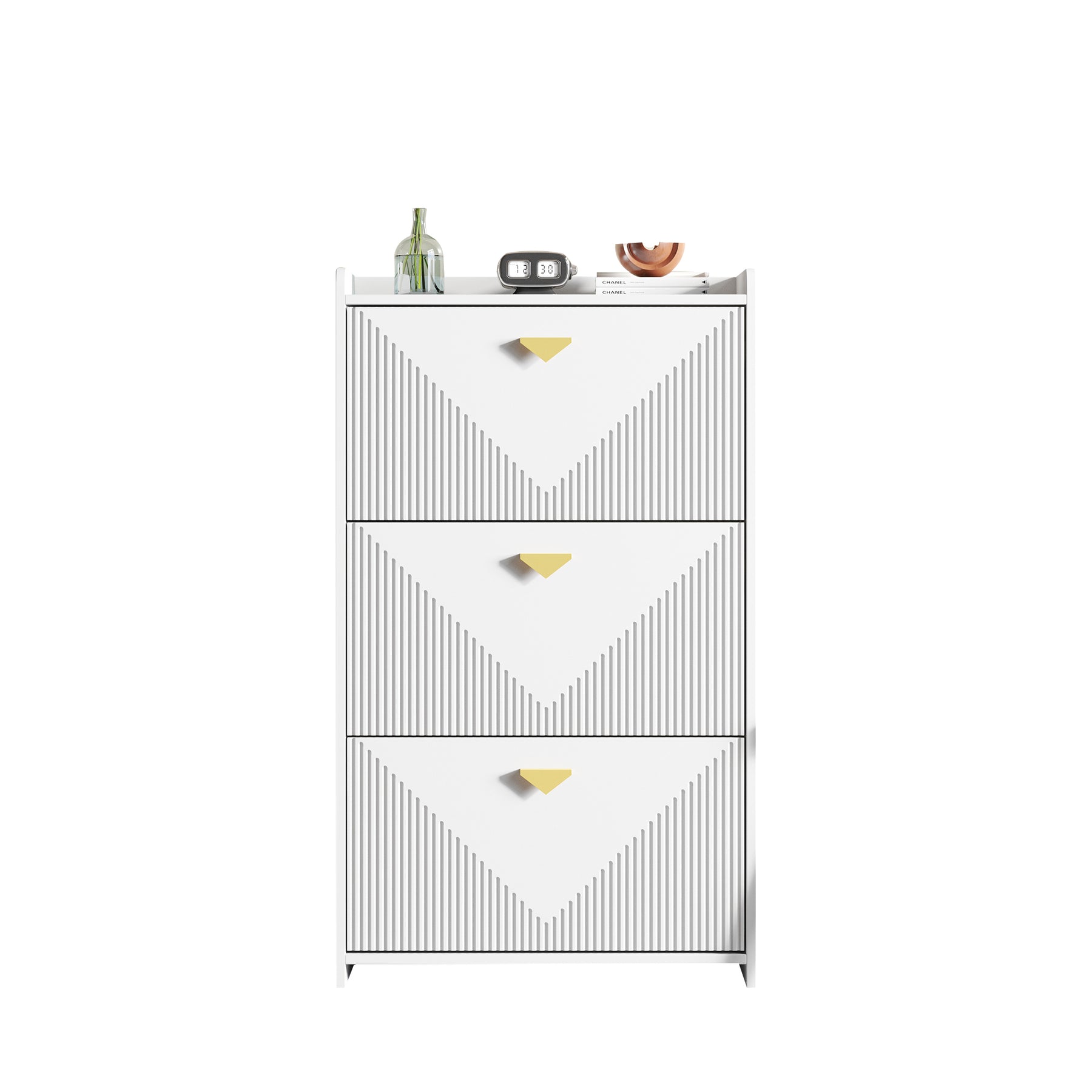 Meuble à chaussures blanc ornée de rayures élégantes 3 abattants 70x30x120 cm TRAVERSEINE