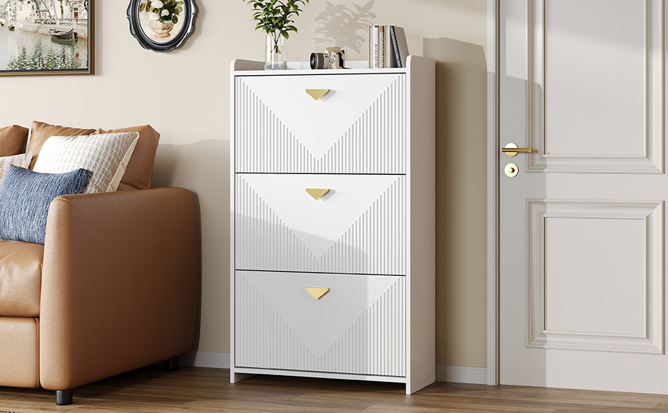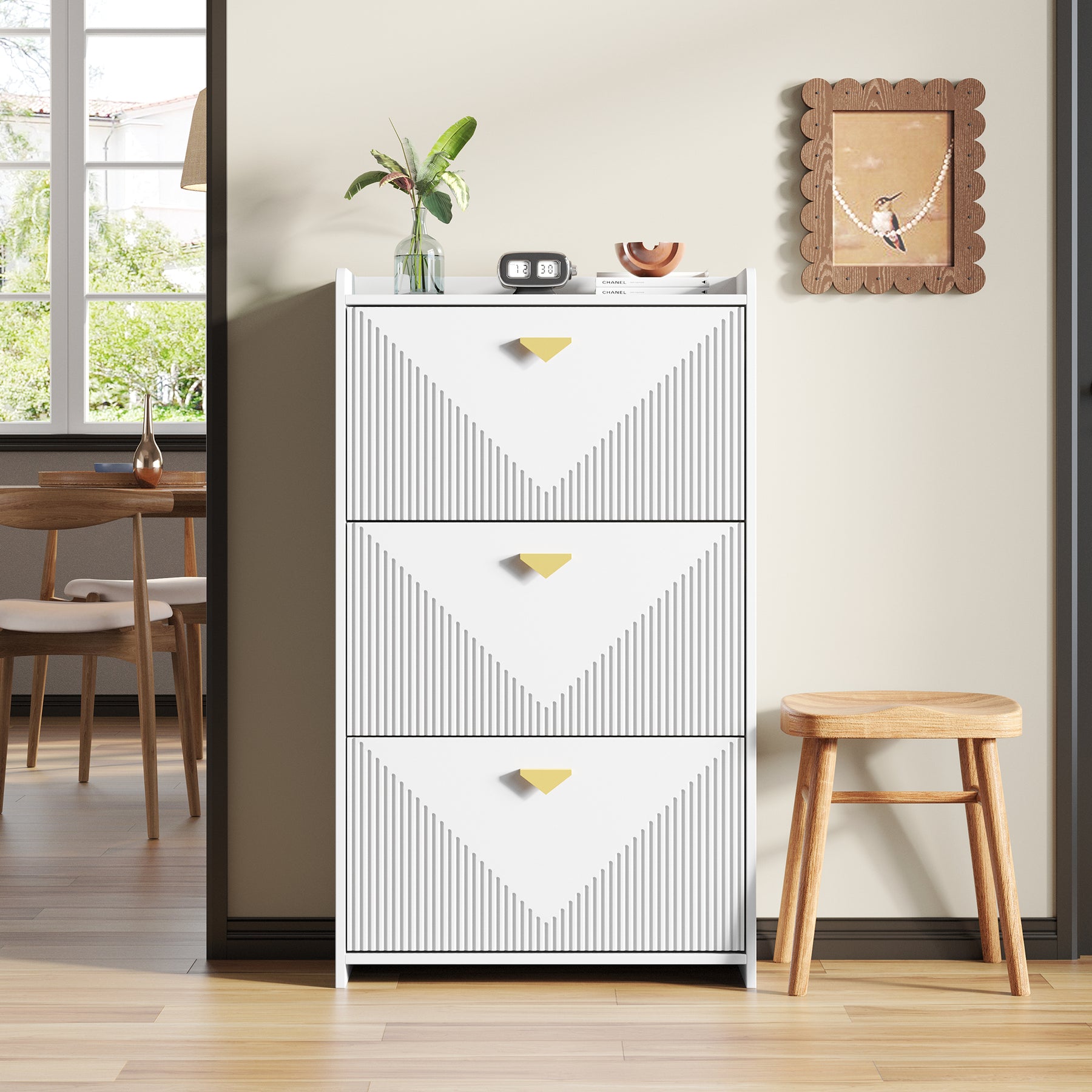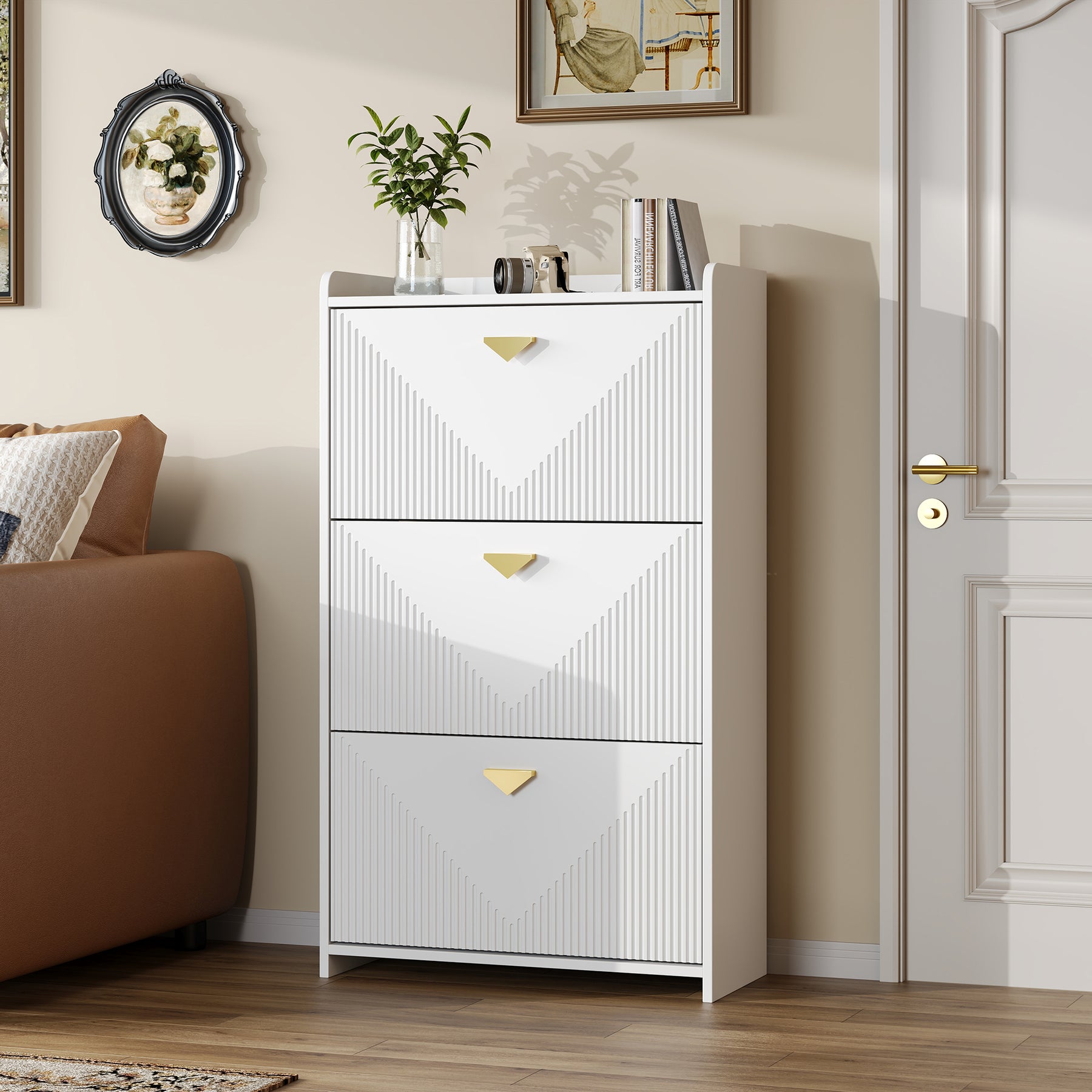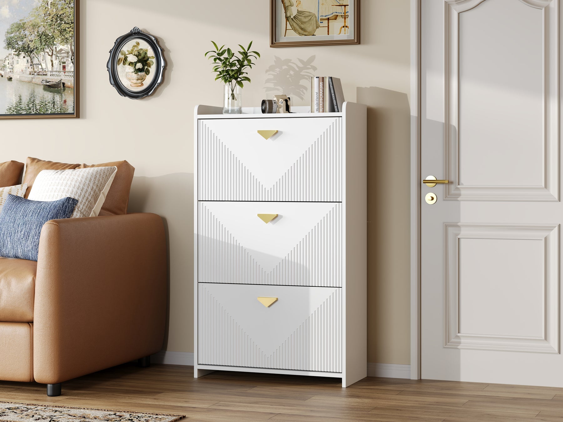 Meuble à chaussures blanc ornée de rayures élégantes 3 abattants 70x30x120 cm TRAVERSEINE