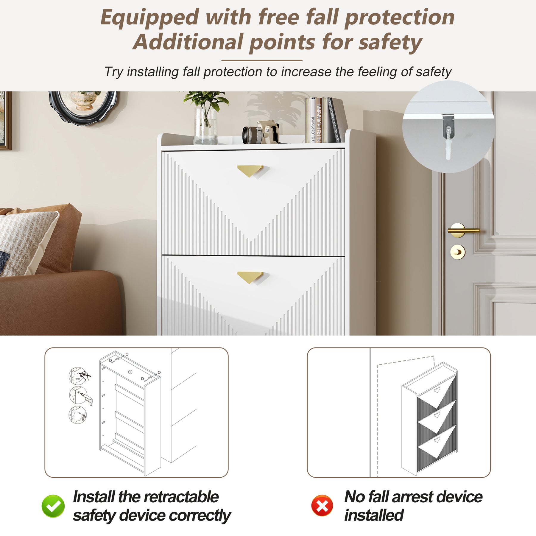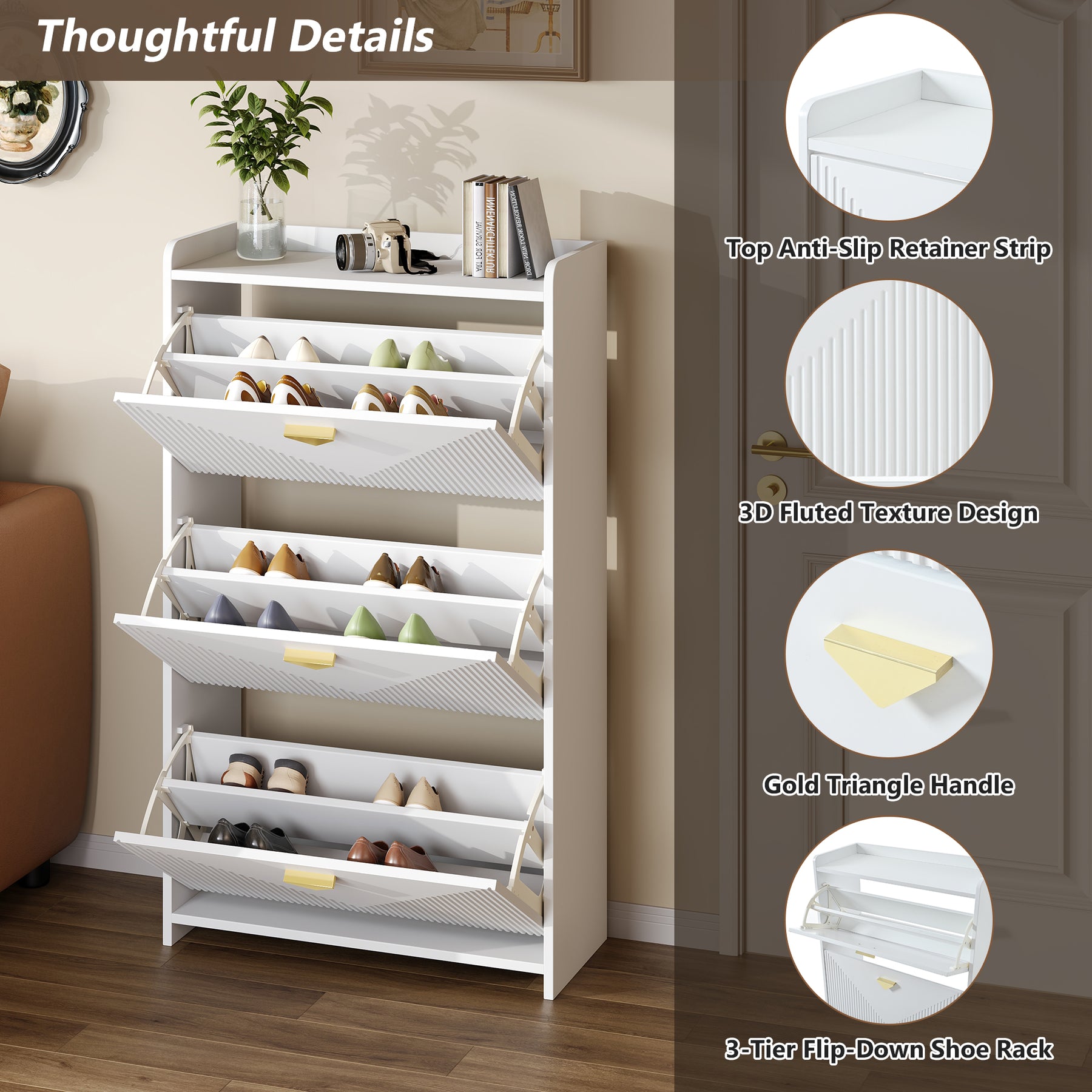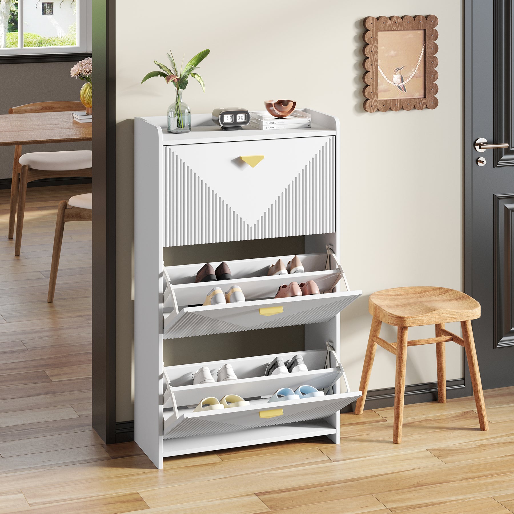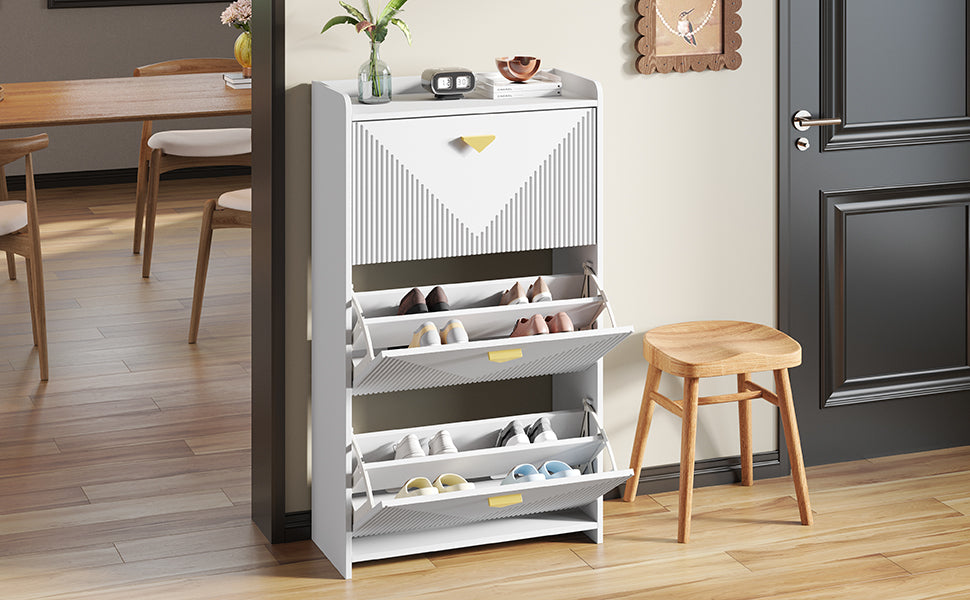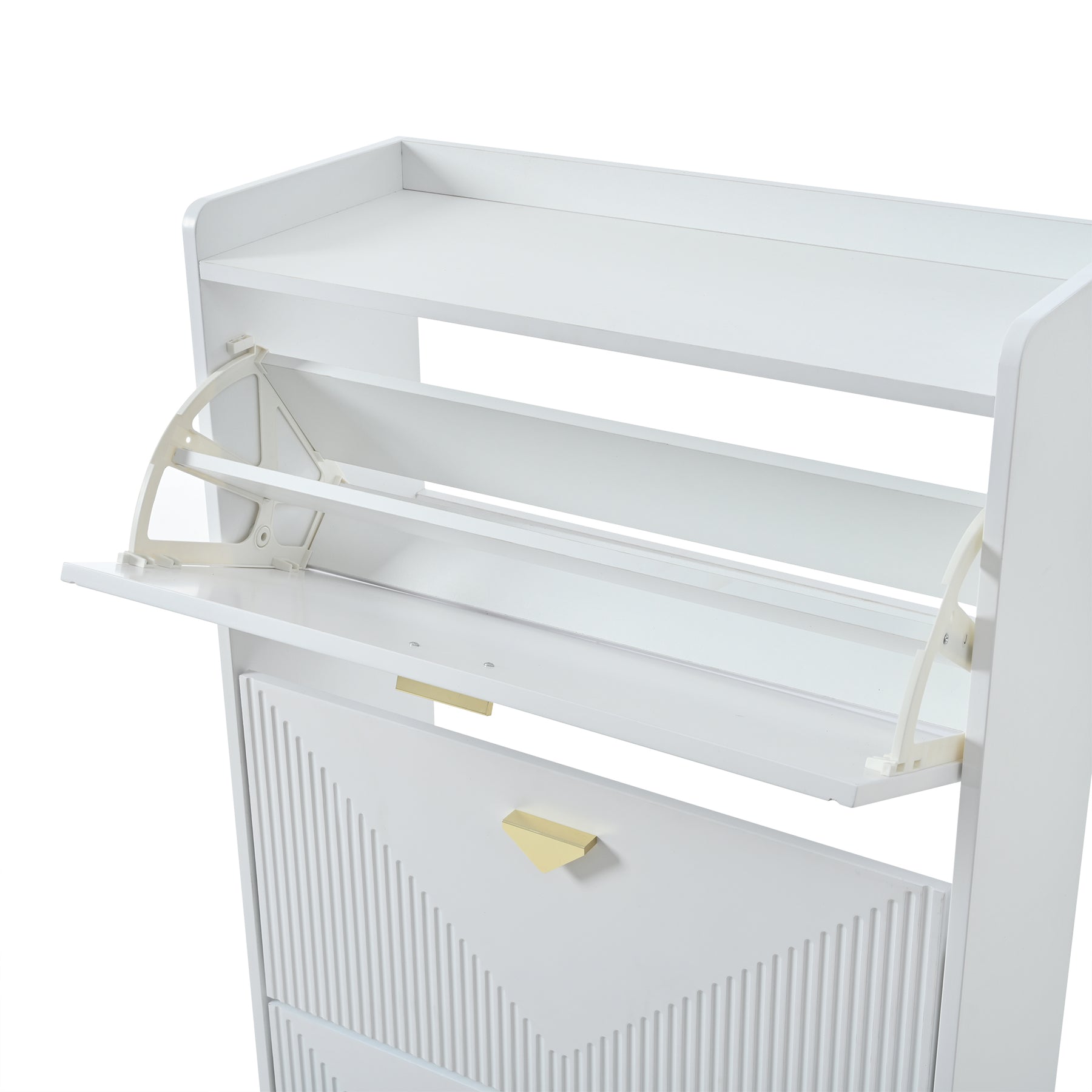 Meuble à chaussures blanc ornée de rayures élégantes 3 abattants 70x30x120 cm TRAVERSEINE