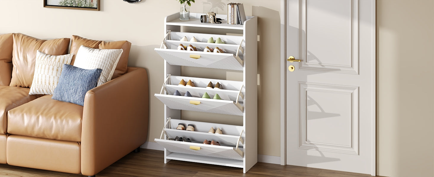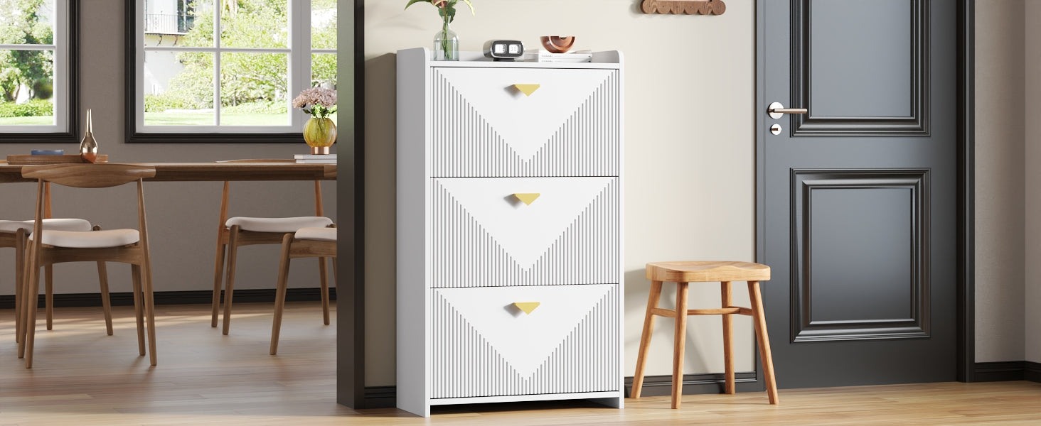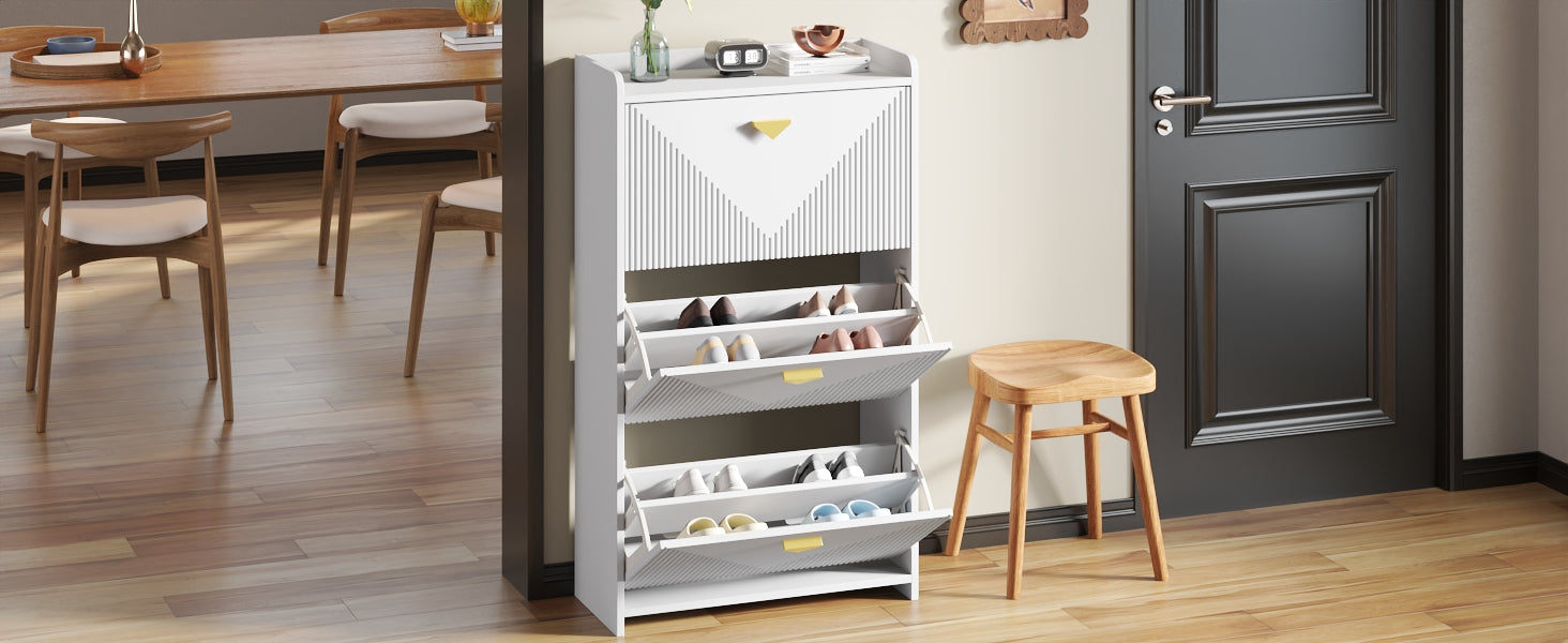 • Polyvalence d’utilisation : Utilisez le plateau supérieur pour exposer des objets déco, des plantes ou des diffuseurs d’arômes, et transformez votre meuble à chaussures en véritable élément de décoration.