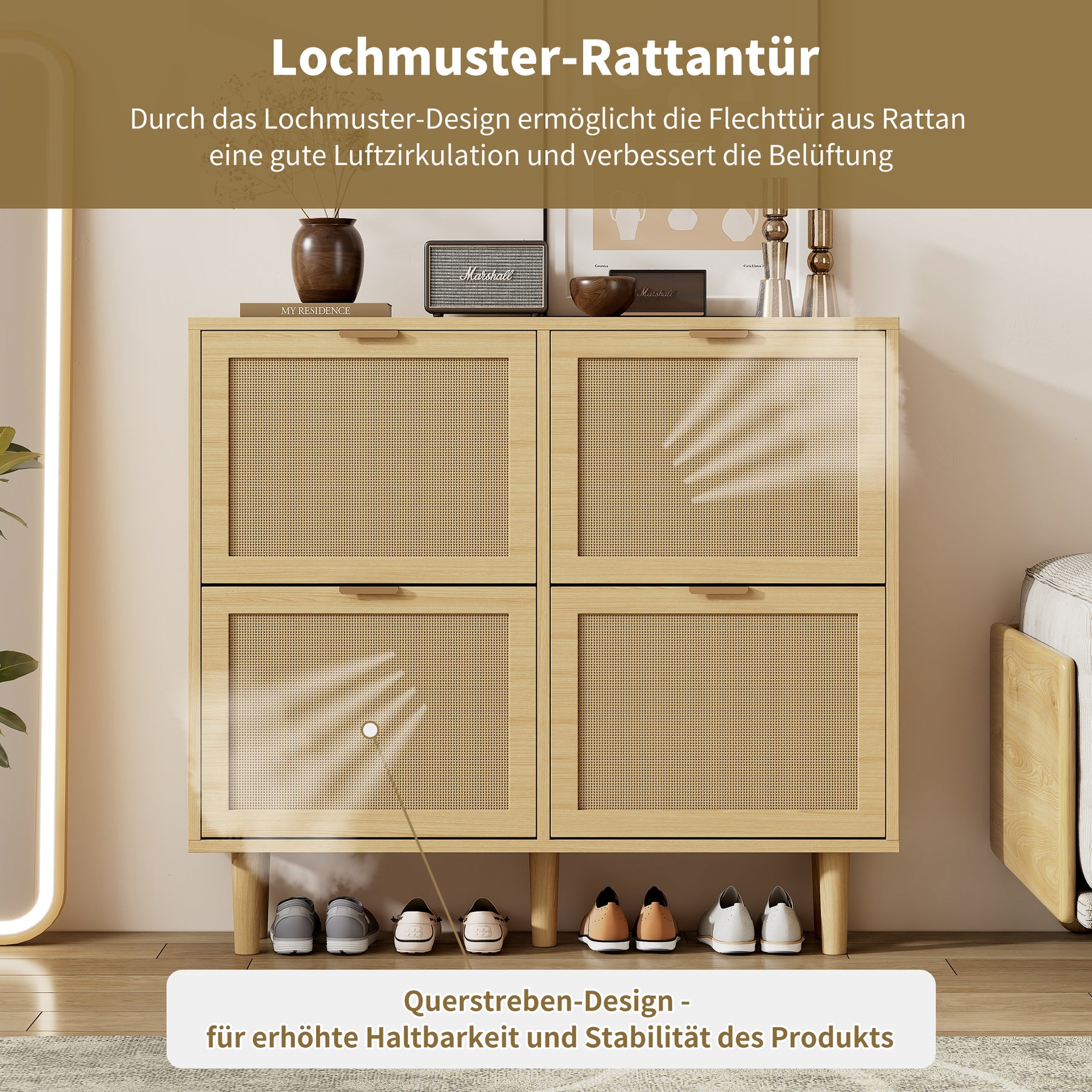 - Design ajouré en rattan : Favorise la circulation de l’air, garde vos chaussures fraîches et prévient les odeurs désagréables.