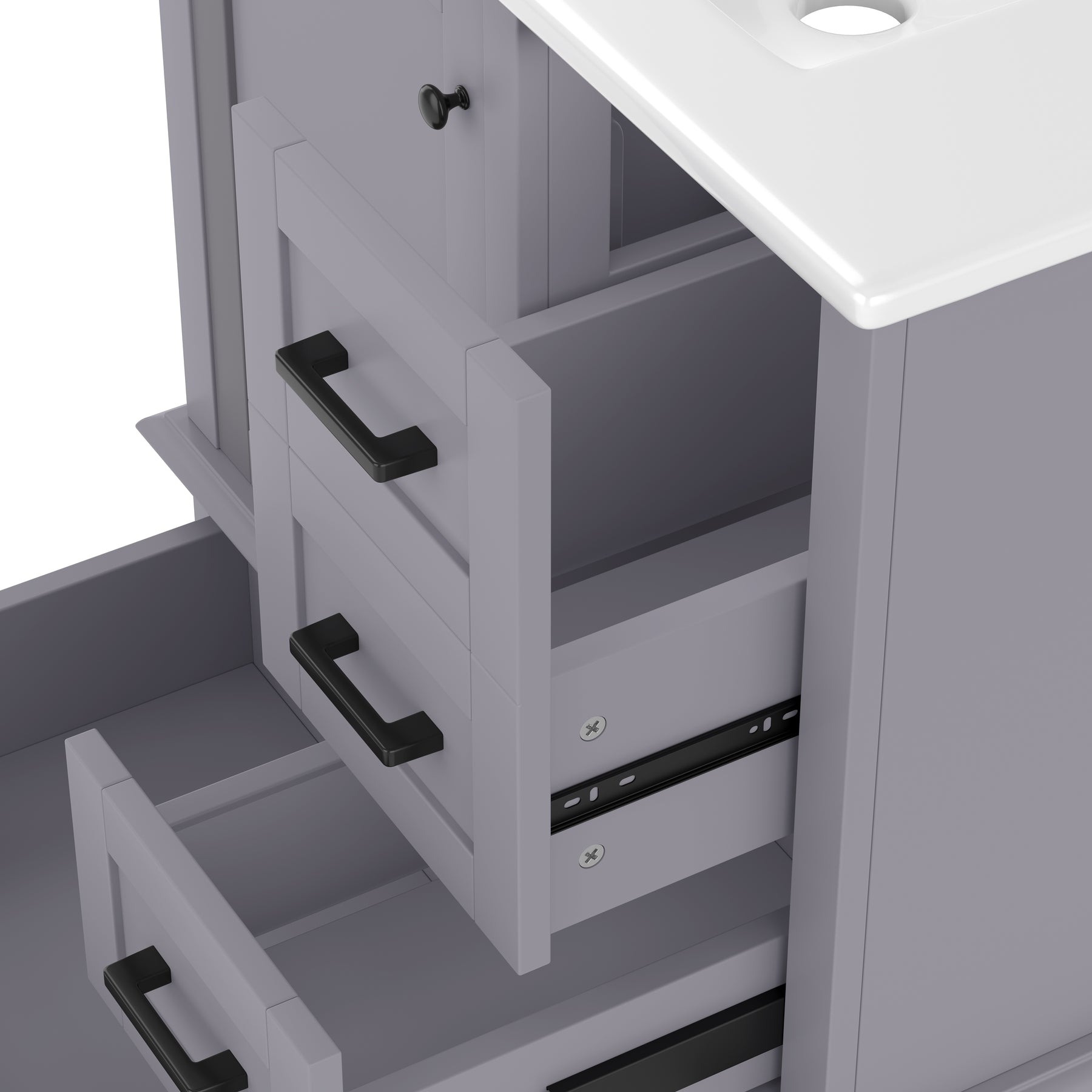• Rangement spacieux et silencieux : comprend une porte d'armoire et trois tiroirs équipés de glissières de haute qualité pour une ouverture et une fermeture douces et sans bruit.