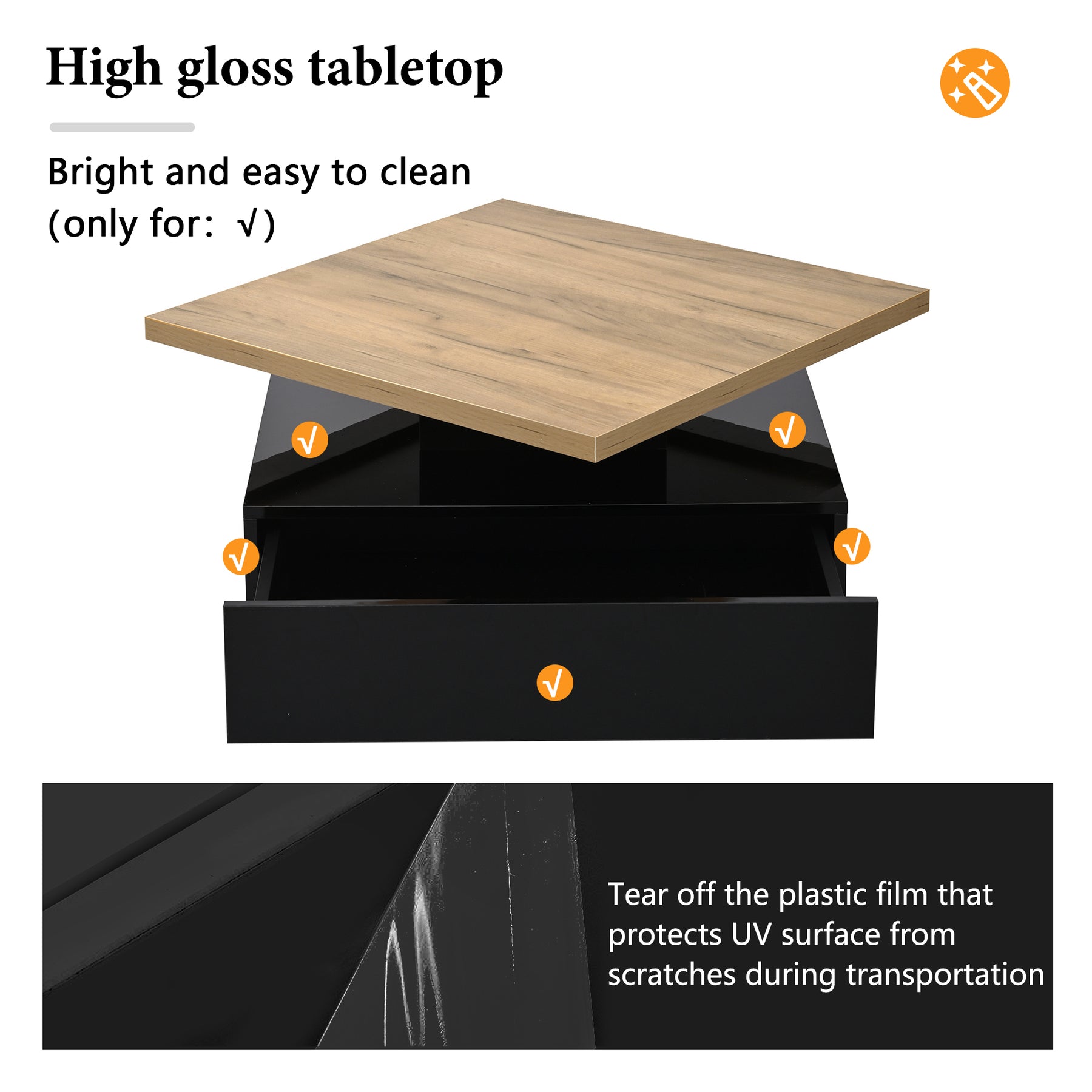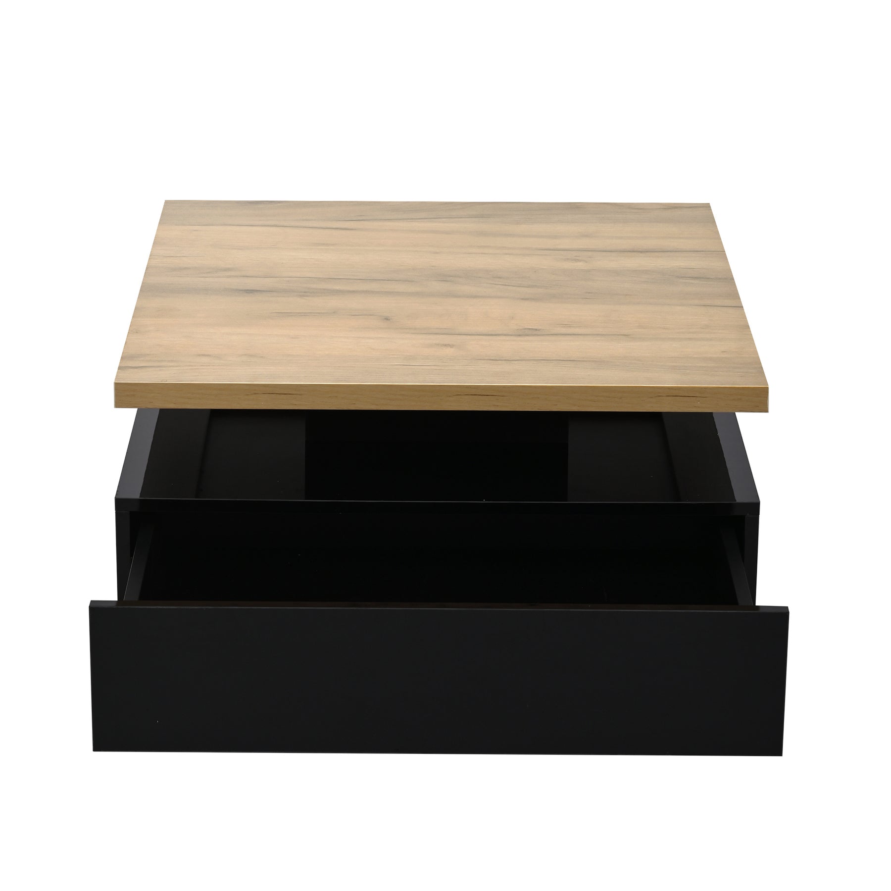 Table basse carrée effet bois et noir pivotante 360° 2 niveaux, design moderne 70x70cm AFTERFEATHER