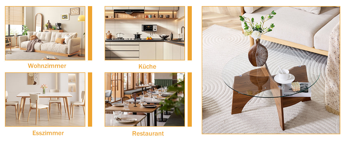 - Verre trempé sécurisé : Plateau en verre épais, résistant aux chocs et à la chaleur, avec bords polis pour une sécurité optimale et un entretien facile.