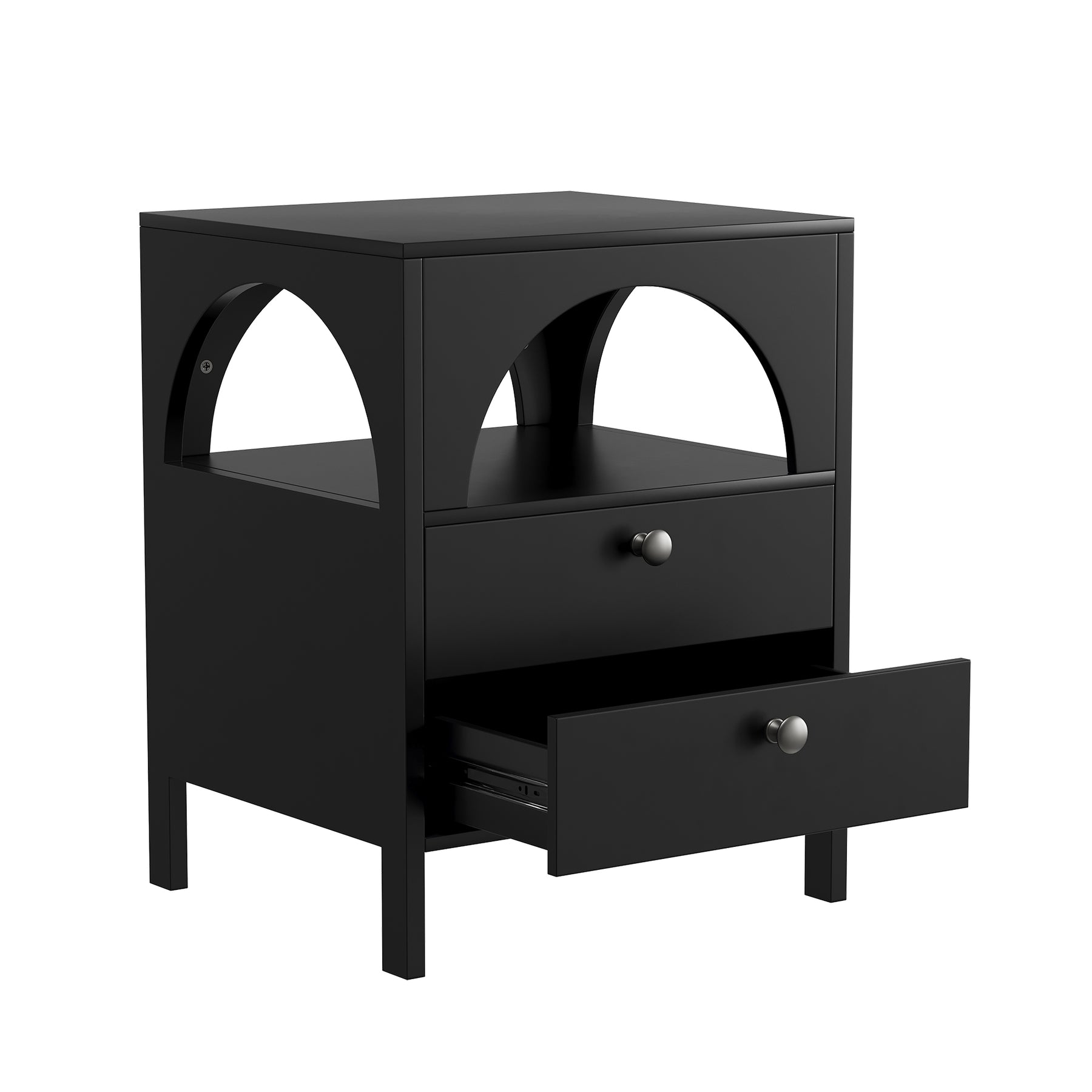 Table de chevet noir arqué niche et 2 tiroirs 45x40x58cm BREEZEE