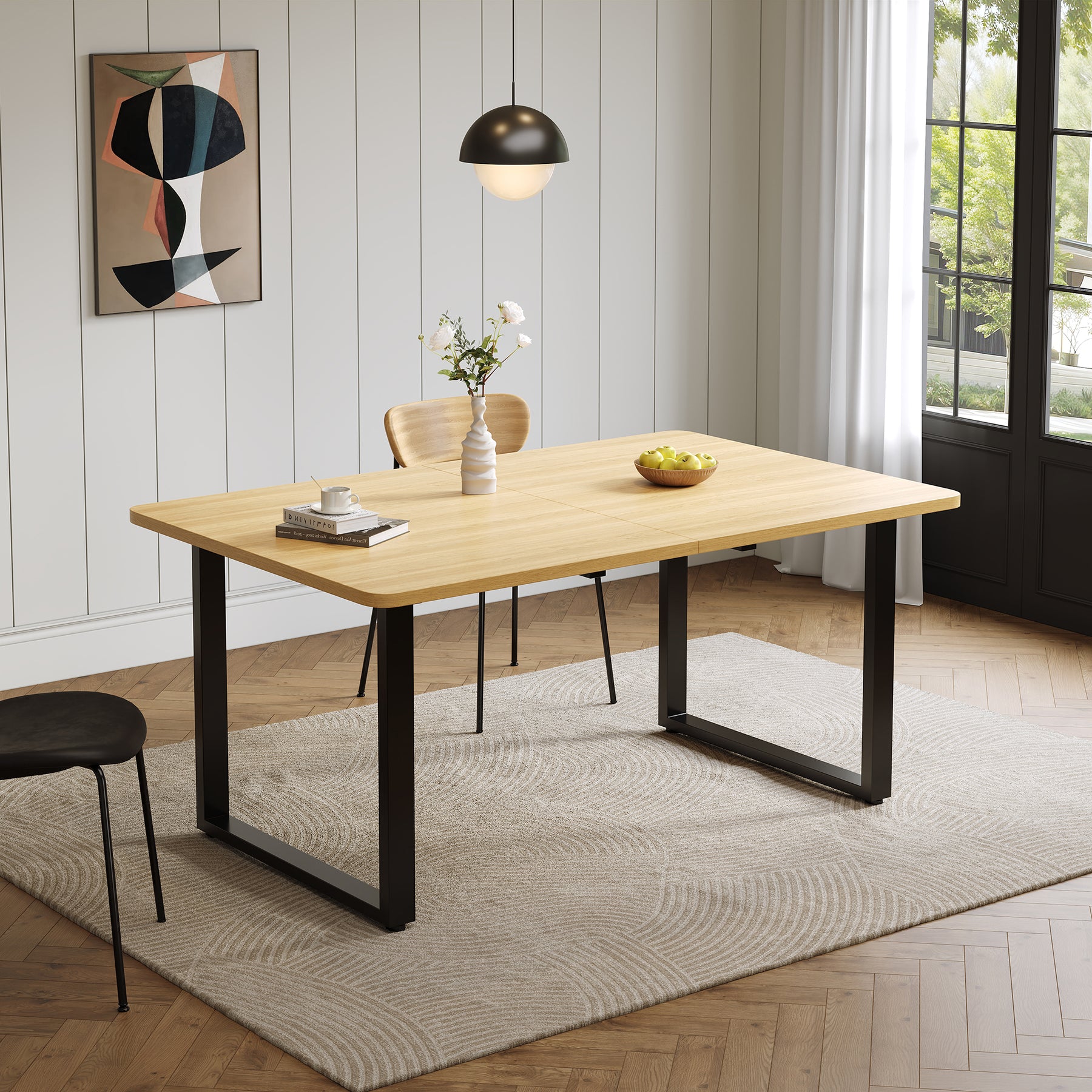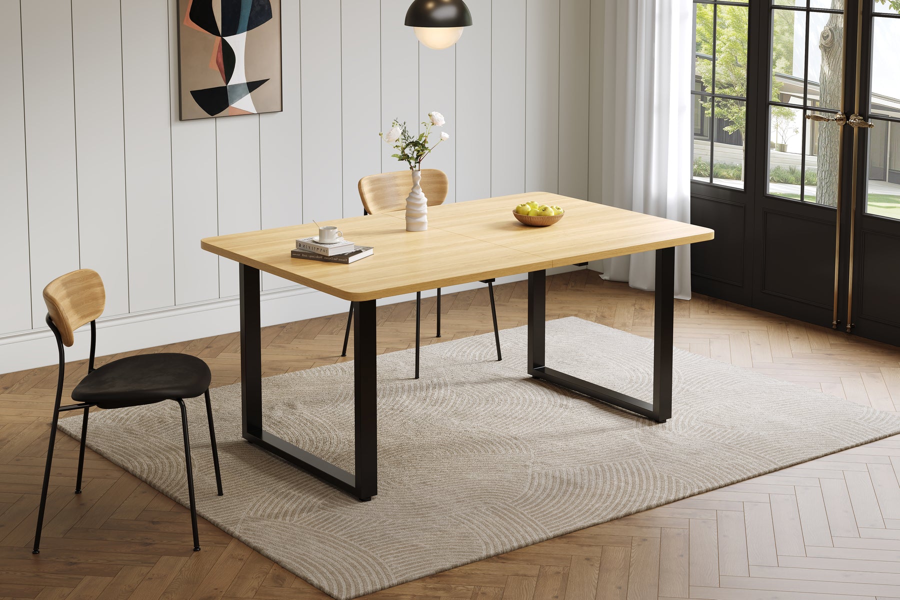 • Design moderne et intemporel : Lignes épurées, finition chêne élégante et pieds en métal noir pour une intégration parfaite dans tout intérieur contemporain.