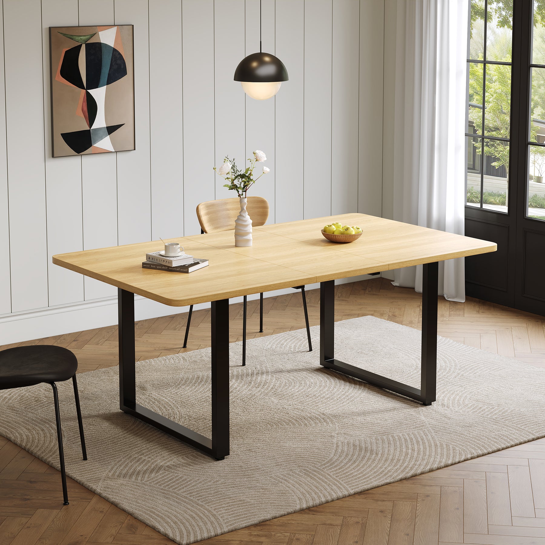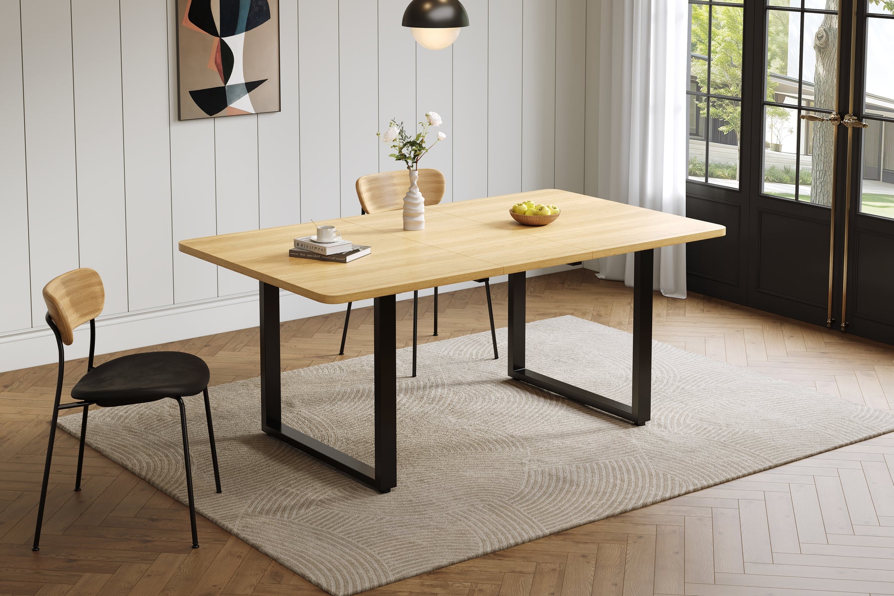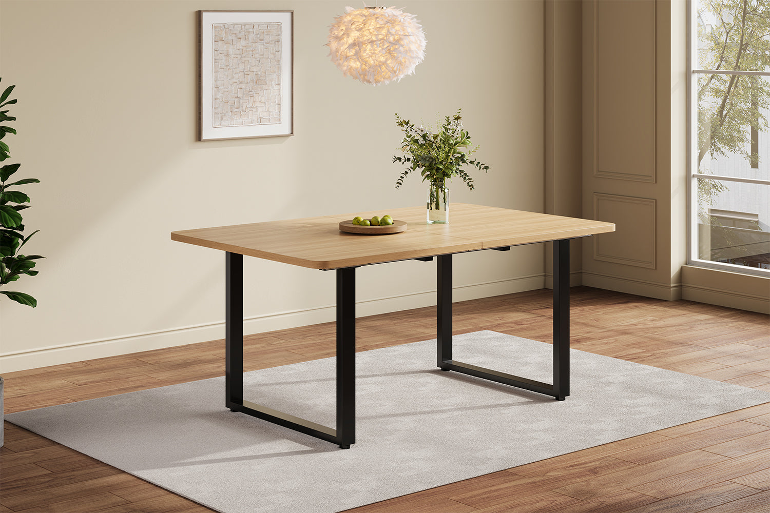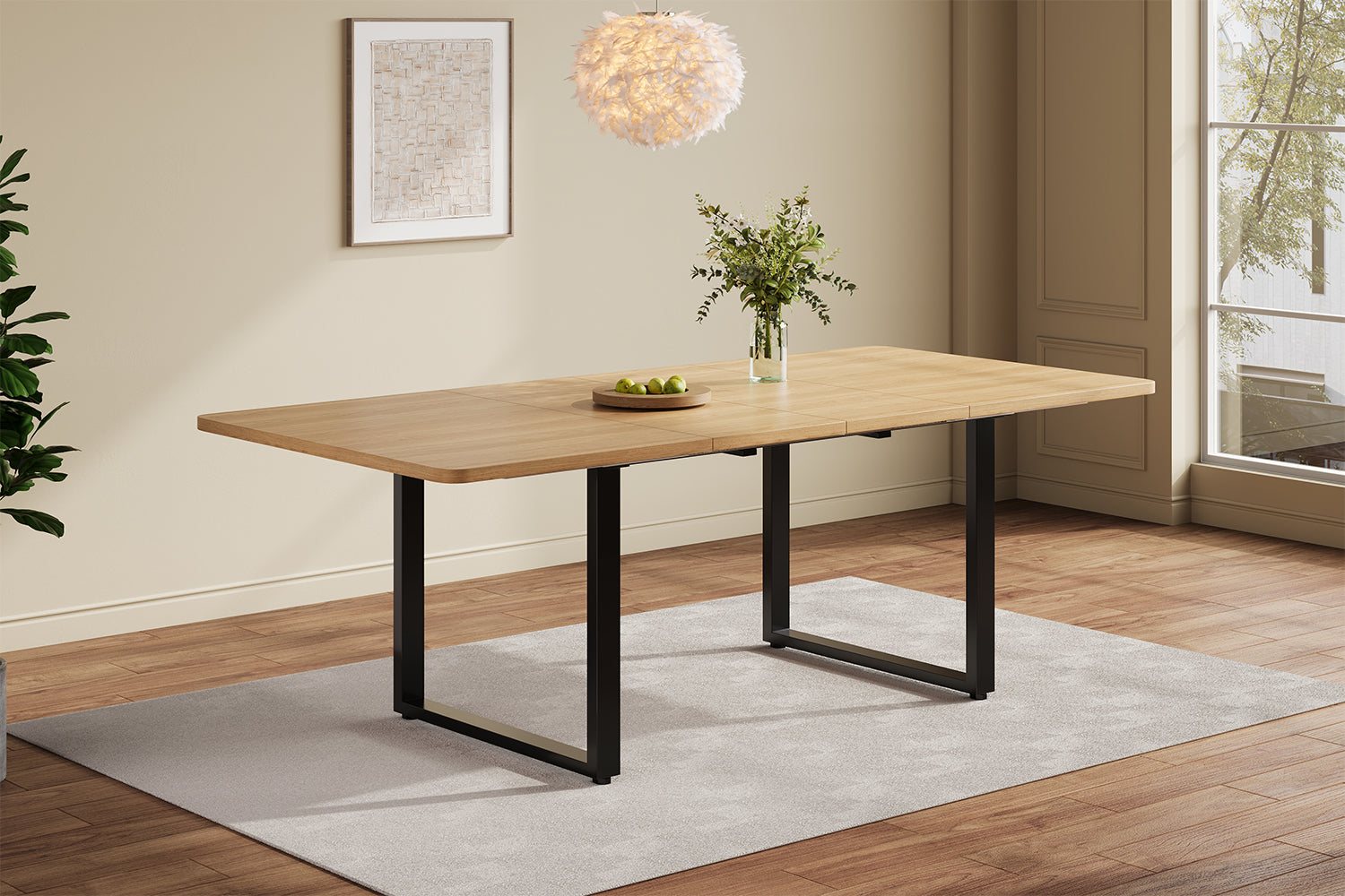 Imaginez des moments chaleureux autour de cette table à manger extensible, parfaite pour accueillir famille et amis lors de dîners conviviaux ou de grandes occasions. Grâce à son système ingénieux, adaptez facilement la longueur de la table selon vos besoins : compacte au quotidien, spacieuse lors des réceptions. Sa structure robuste en MDF finition chêne et ses pieds en métal assurent stabilité et élégance, s'intégrant harmonieusement à tout style d'intérieur moderne ou minimaliste. Profitez d'une installation simple et rapide, même en solo, pour transformer votre espace en un lieu de partage et de raffinement.