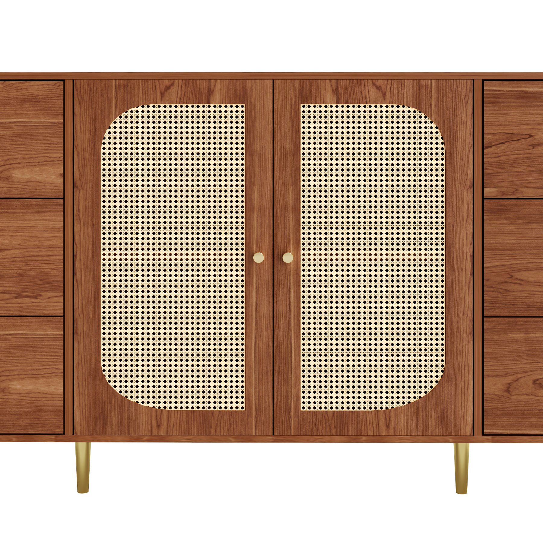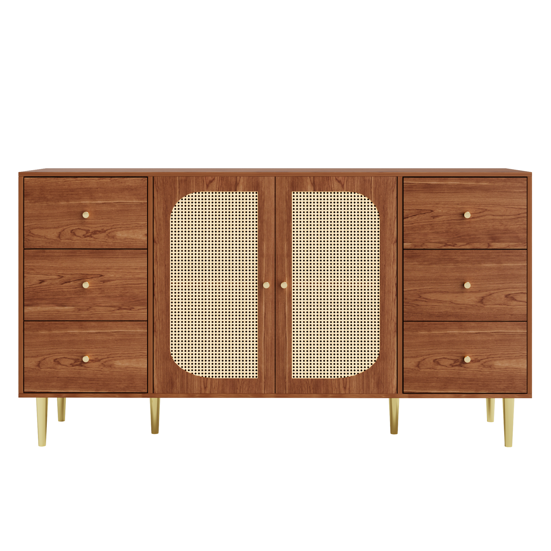 Buffet rétro effet bois 2 portes en rotin et 6 tiroirs 160x40x90 cm STARLEAF
