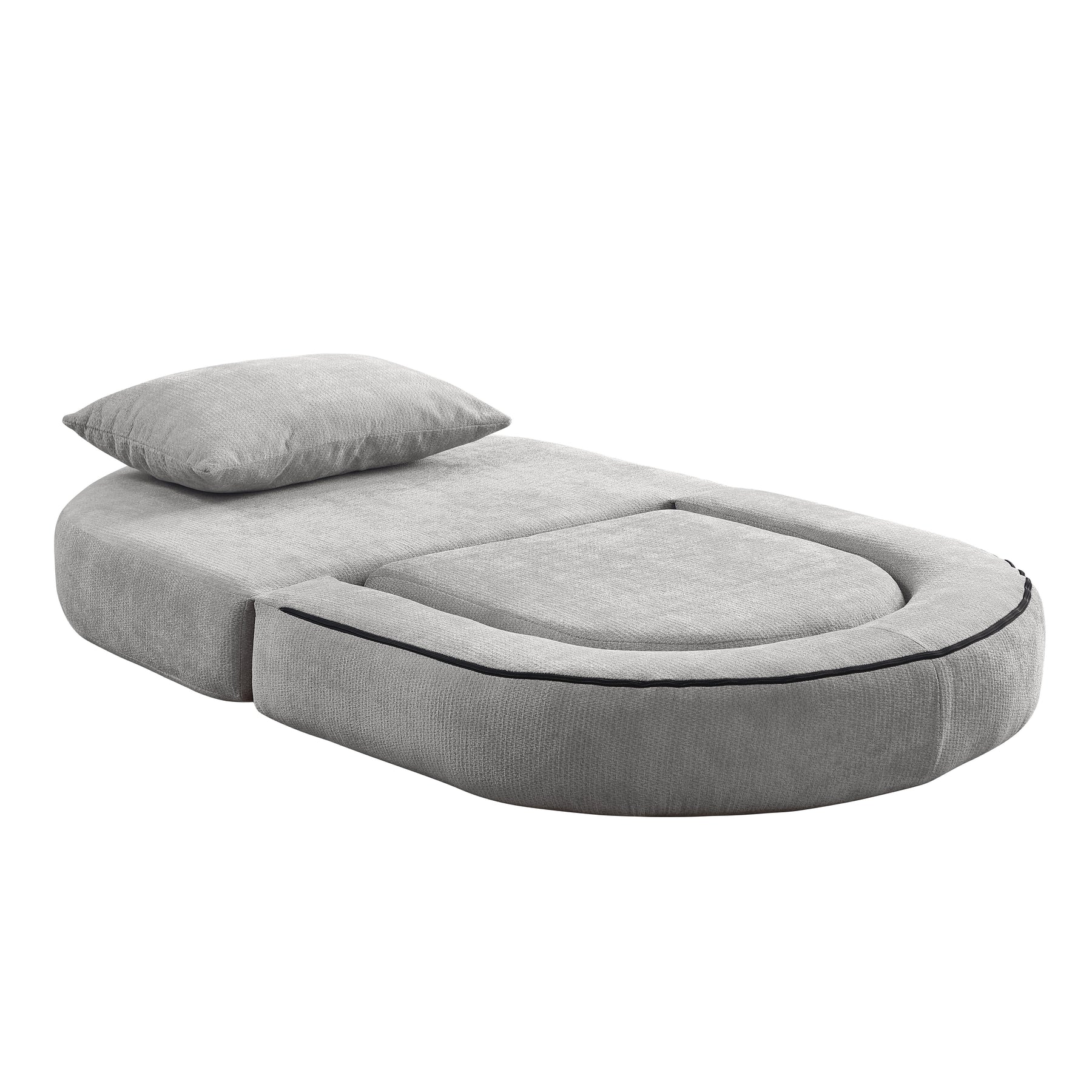 Canapé fauteuil convertible 2-en-1 matelas de sol modulable en chenille gris avec oreiller intégré SALTROAD