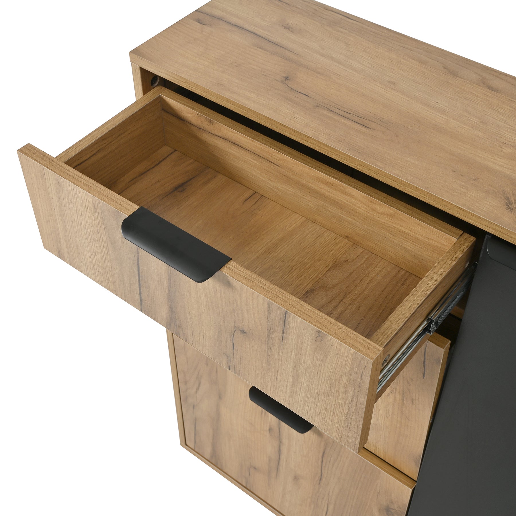 - Stabilité et durabilité : Fabriqué en panneaux de particules de haute qualité, ce meuble garantit une robustesse à toute épreuve pour un usage quotidien, avec une capacité de charge élevée pour la tablette et les tiroirs.