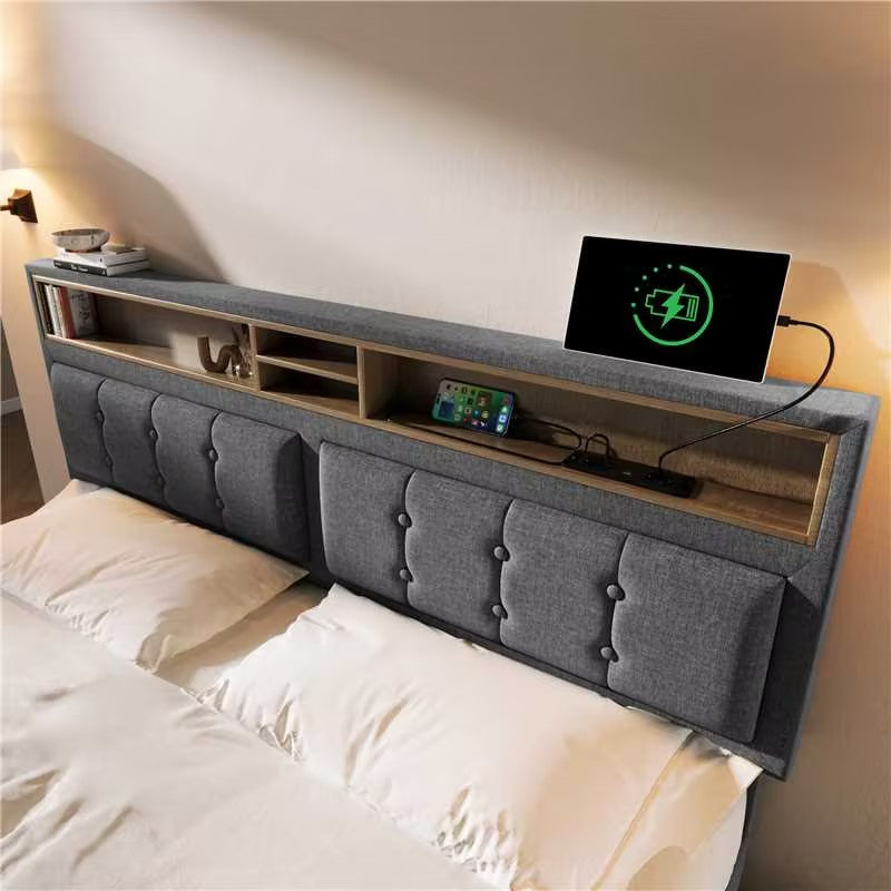 Station de Recharge Intégrée : La tête de lit est équipée de ports USB, Type-C et de prises européennes pour vous permettre de charger tous vos appareils à portée de main.