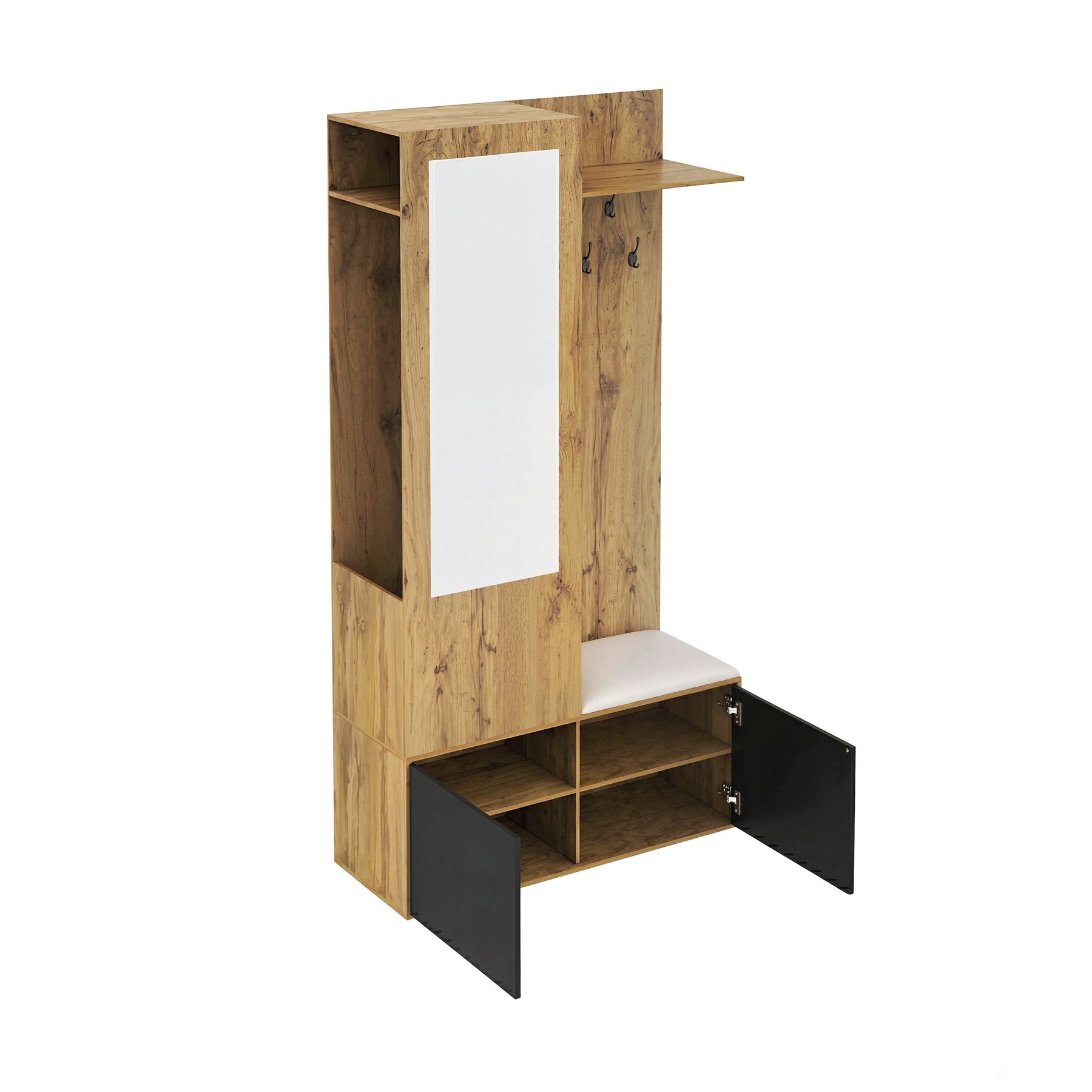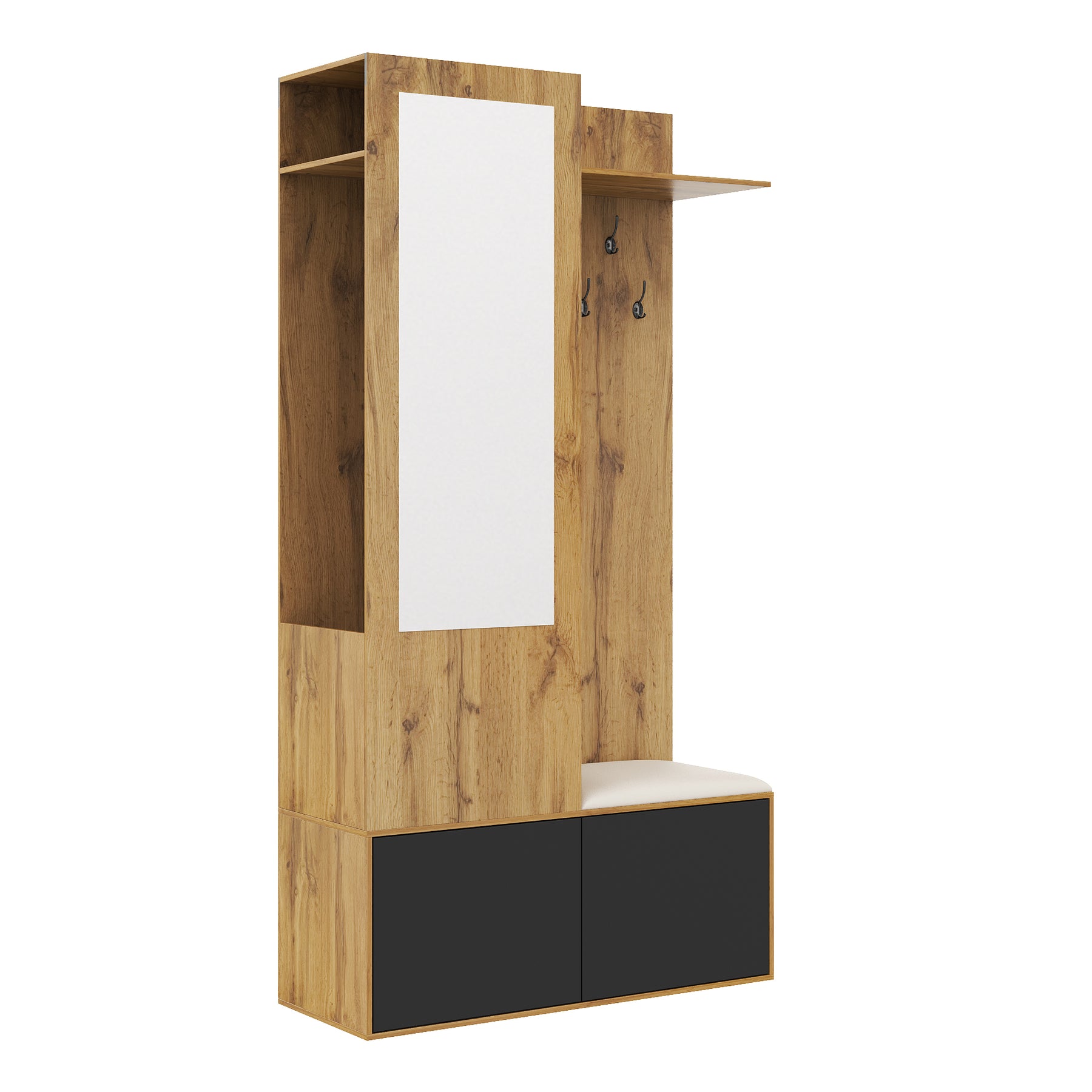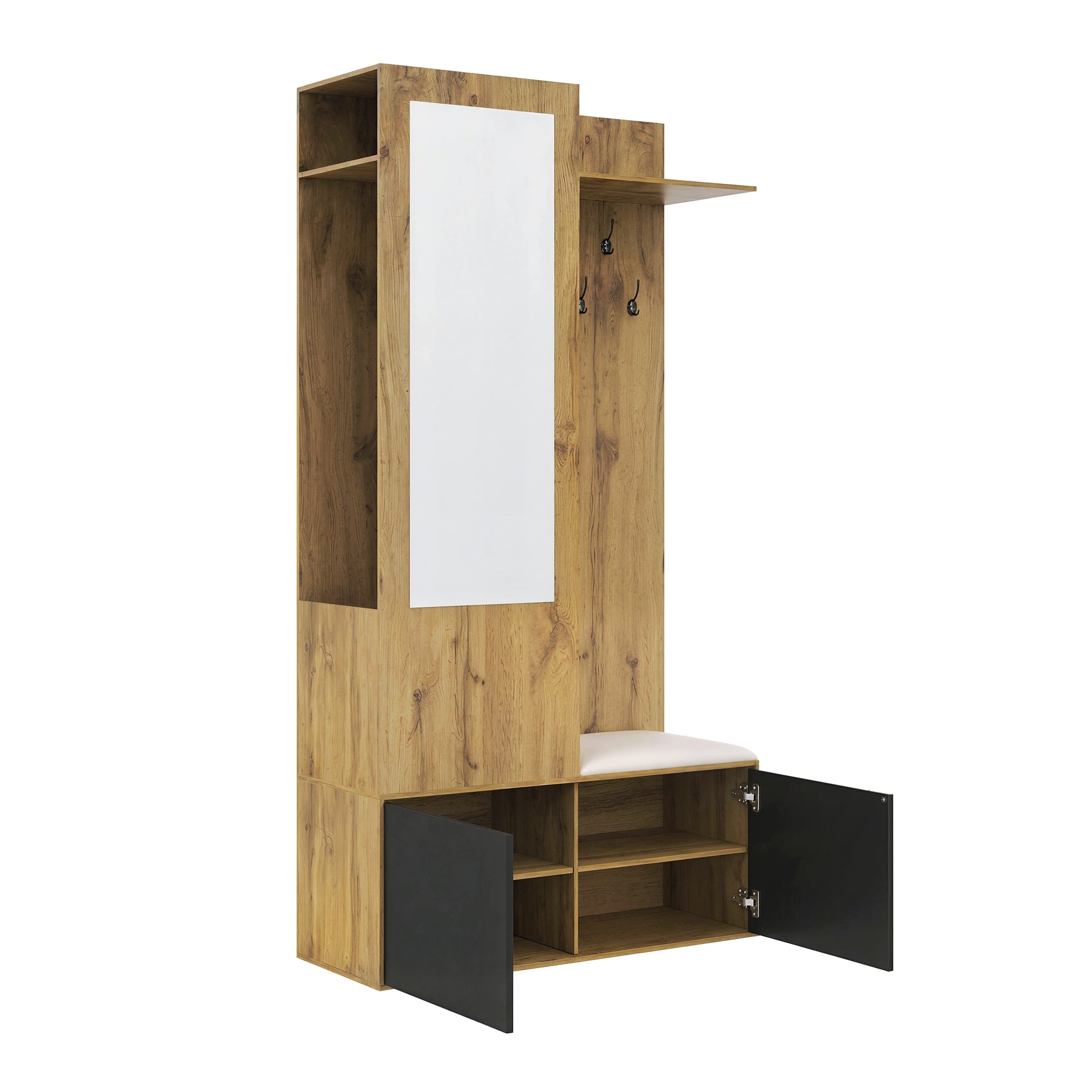 Vestiaire à l'entrée avec miroir, banc, porte-chaussures, 5 crochets 191x100x38cm ALIGNLX