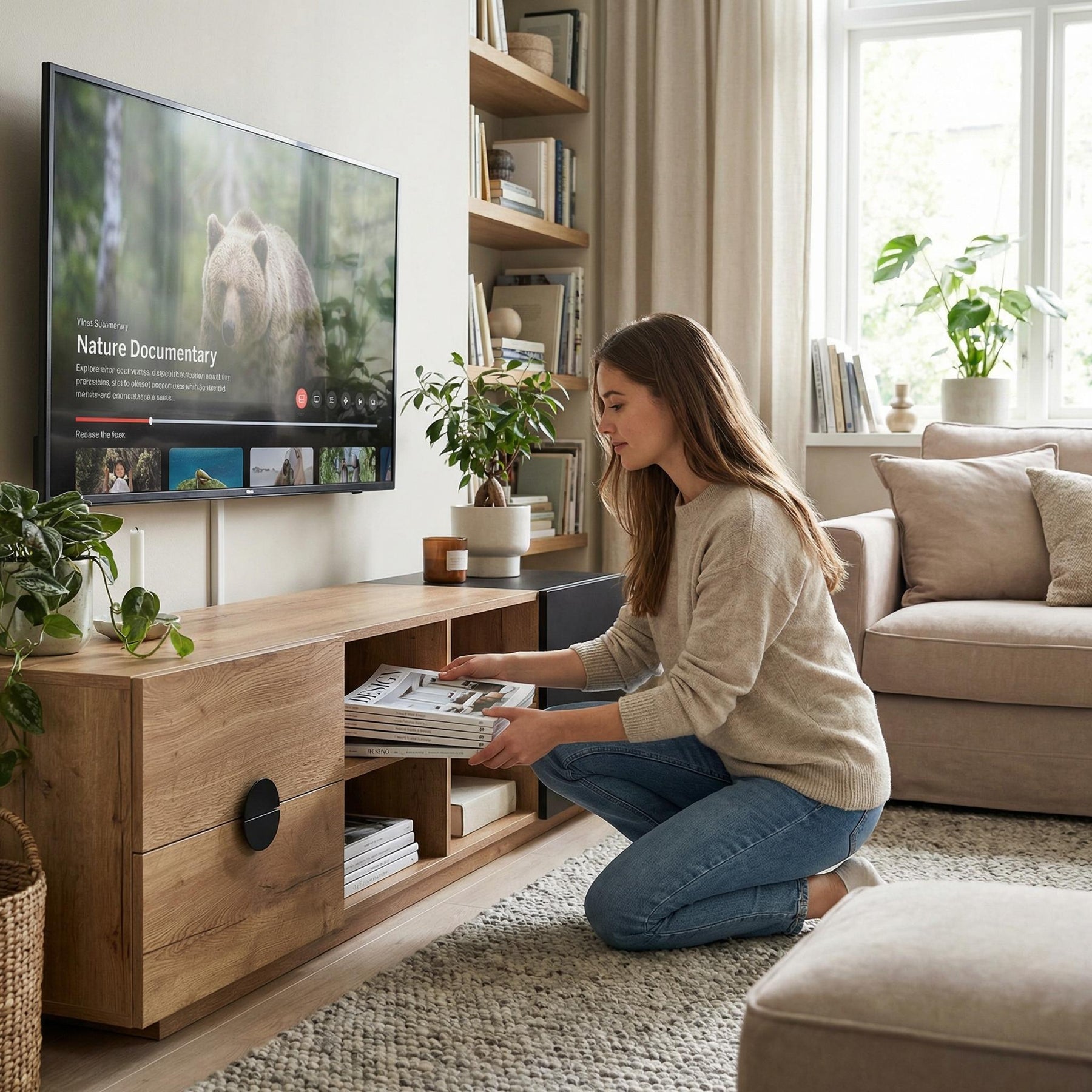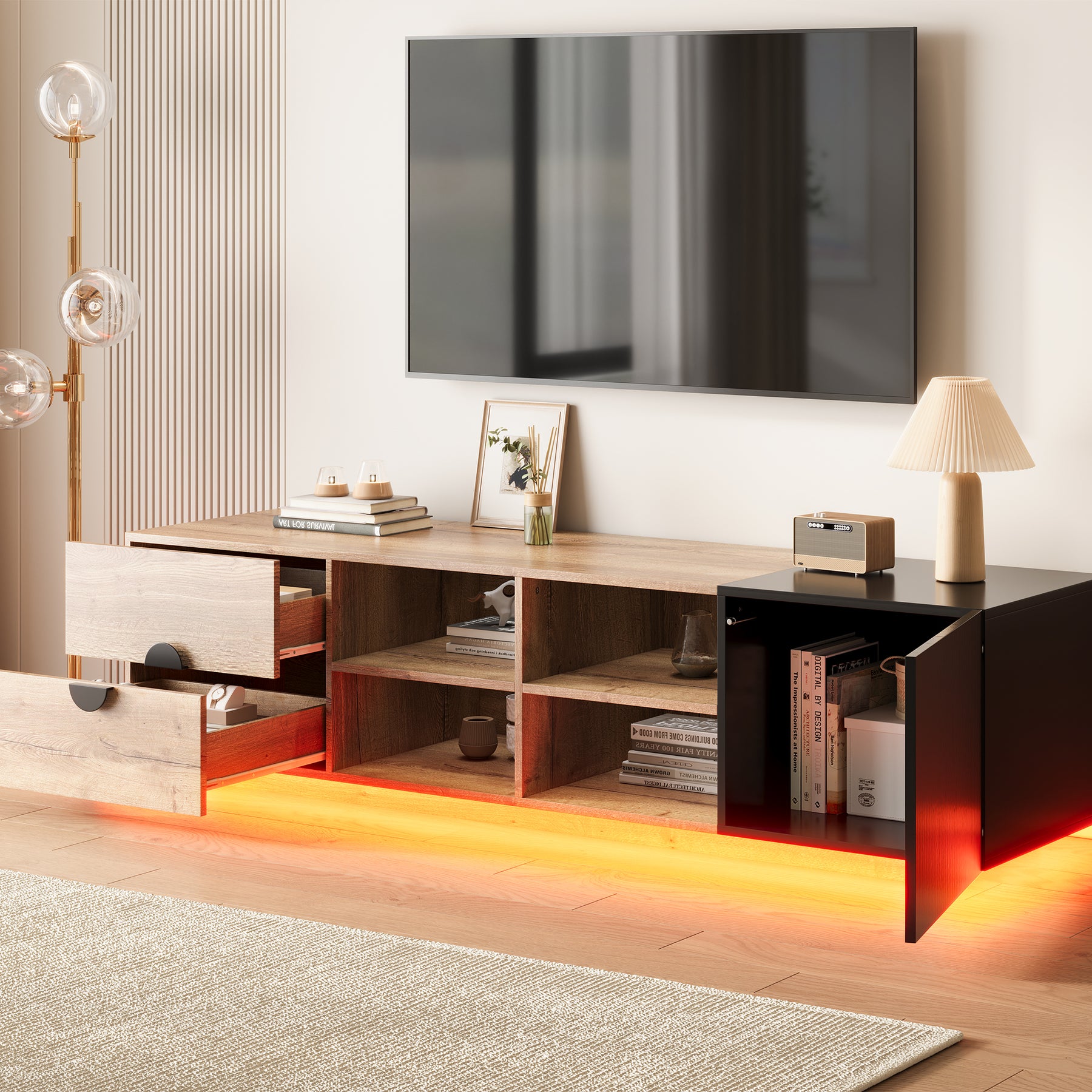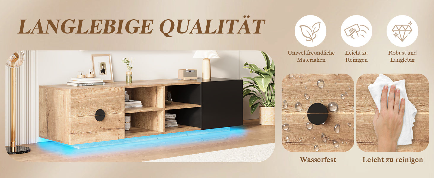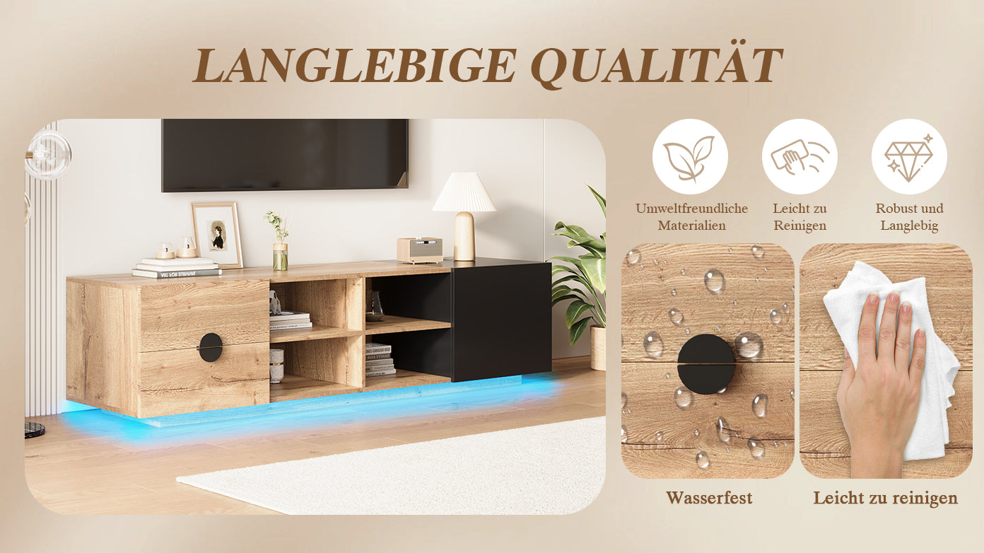 • Design moderne et lumineux : Le contraste bois naturel et noir s’intègre à tous les styles, du scandinave au contemporain. L’éclairage LED sous le meuble crée un effet flottant élégant et agrandit visuellement la pièce, même dans les petits salons.