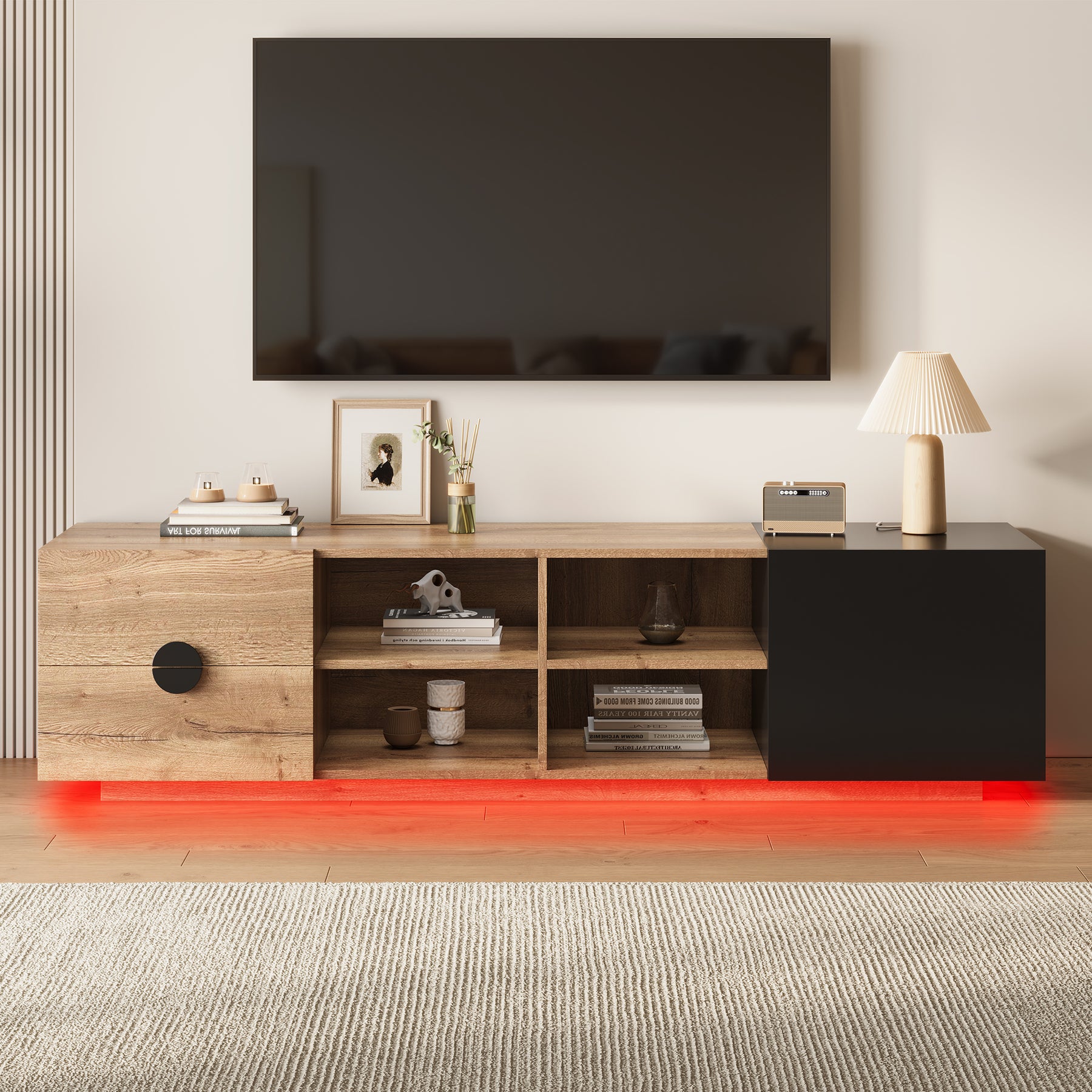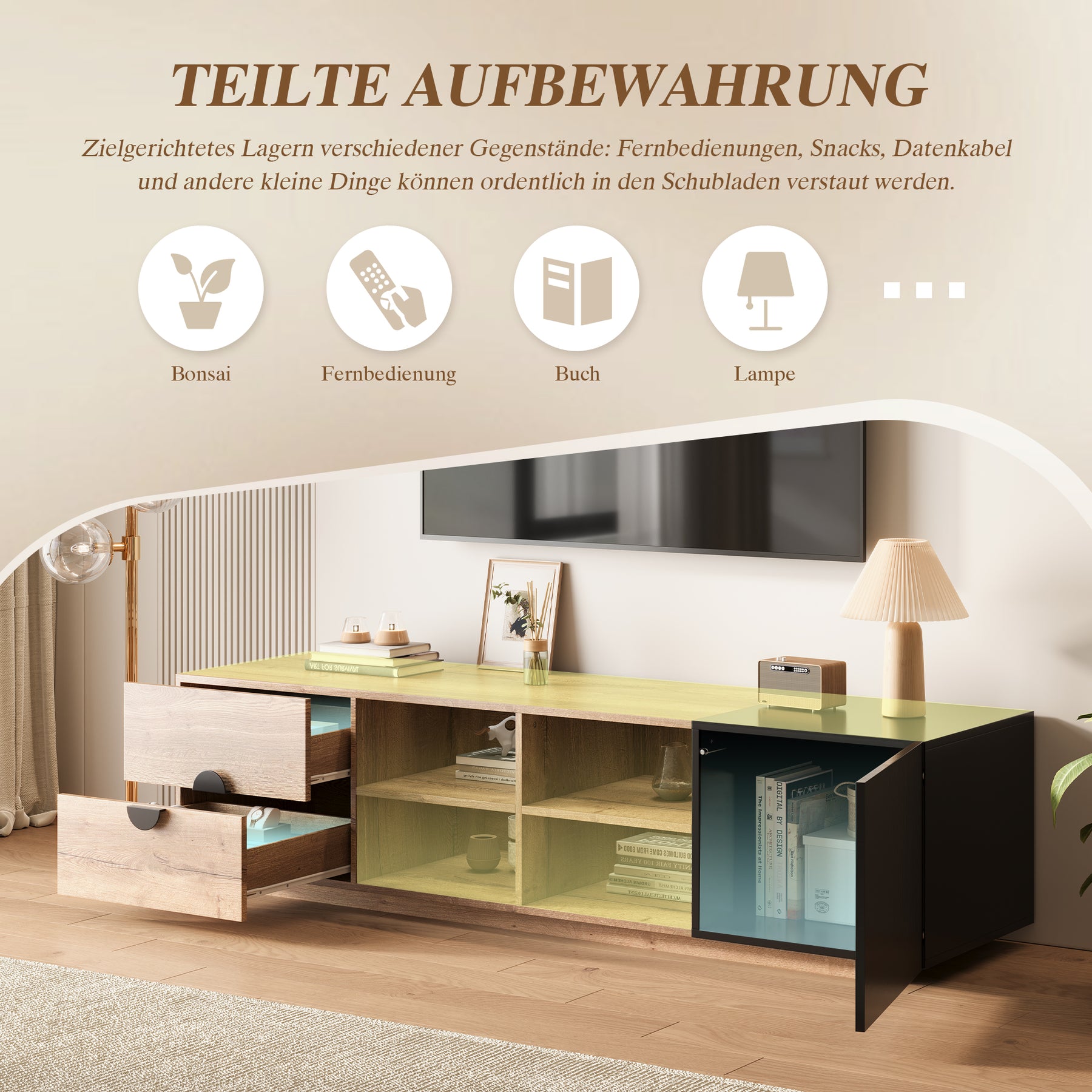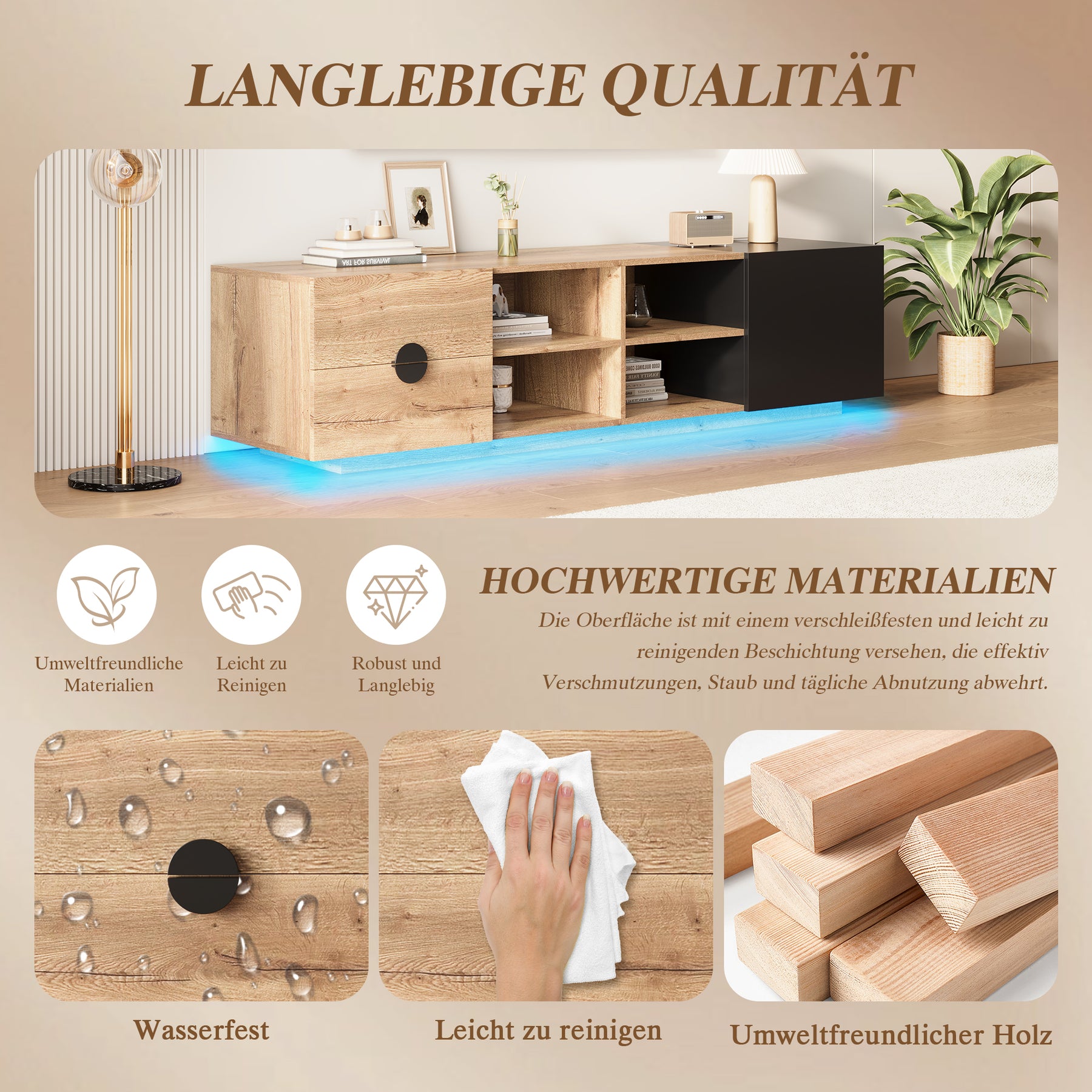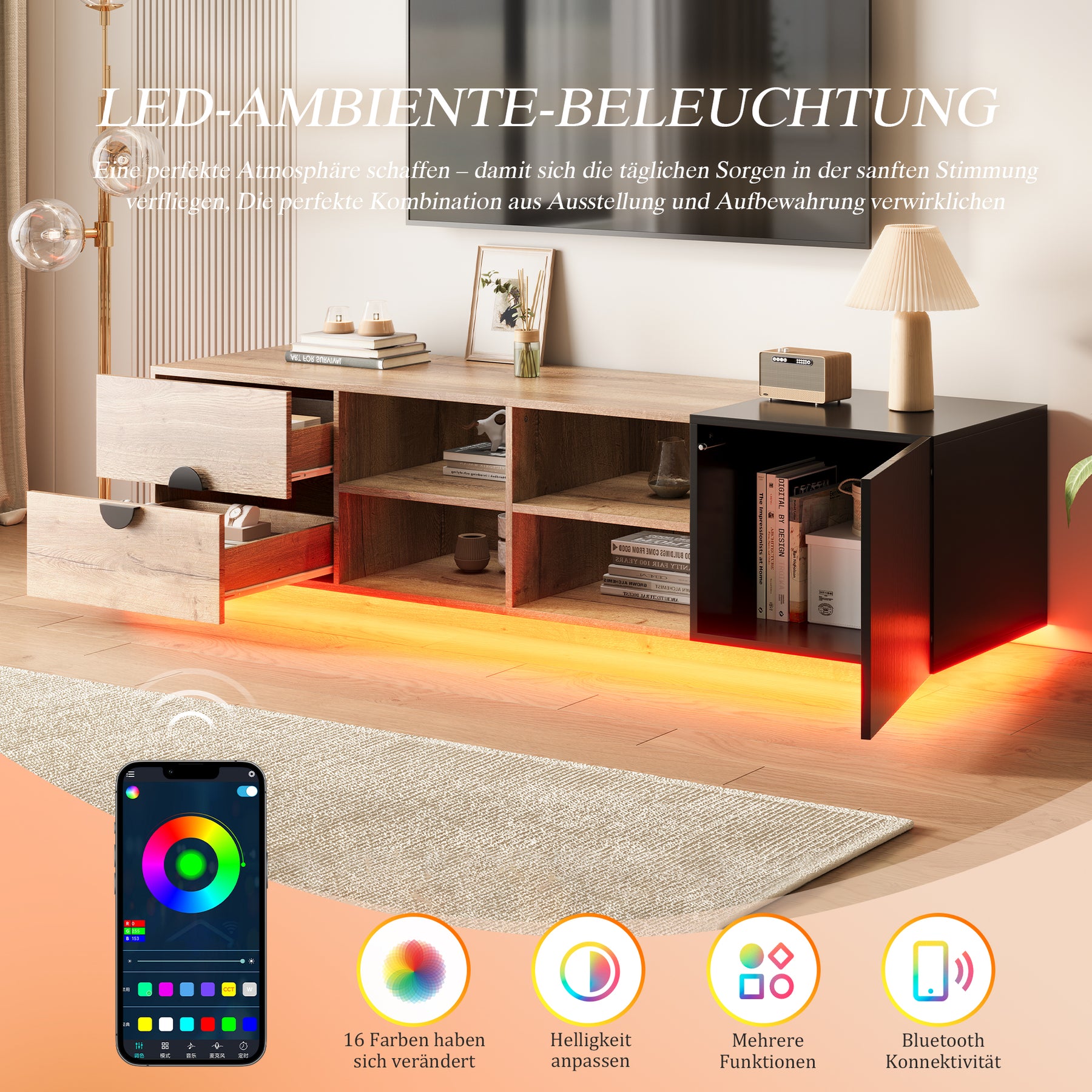 Meuble TV effet bois et noir avec élcairage LED 180x38,5x47cm