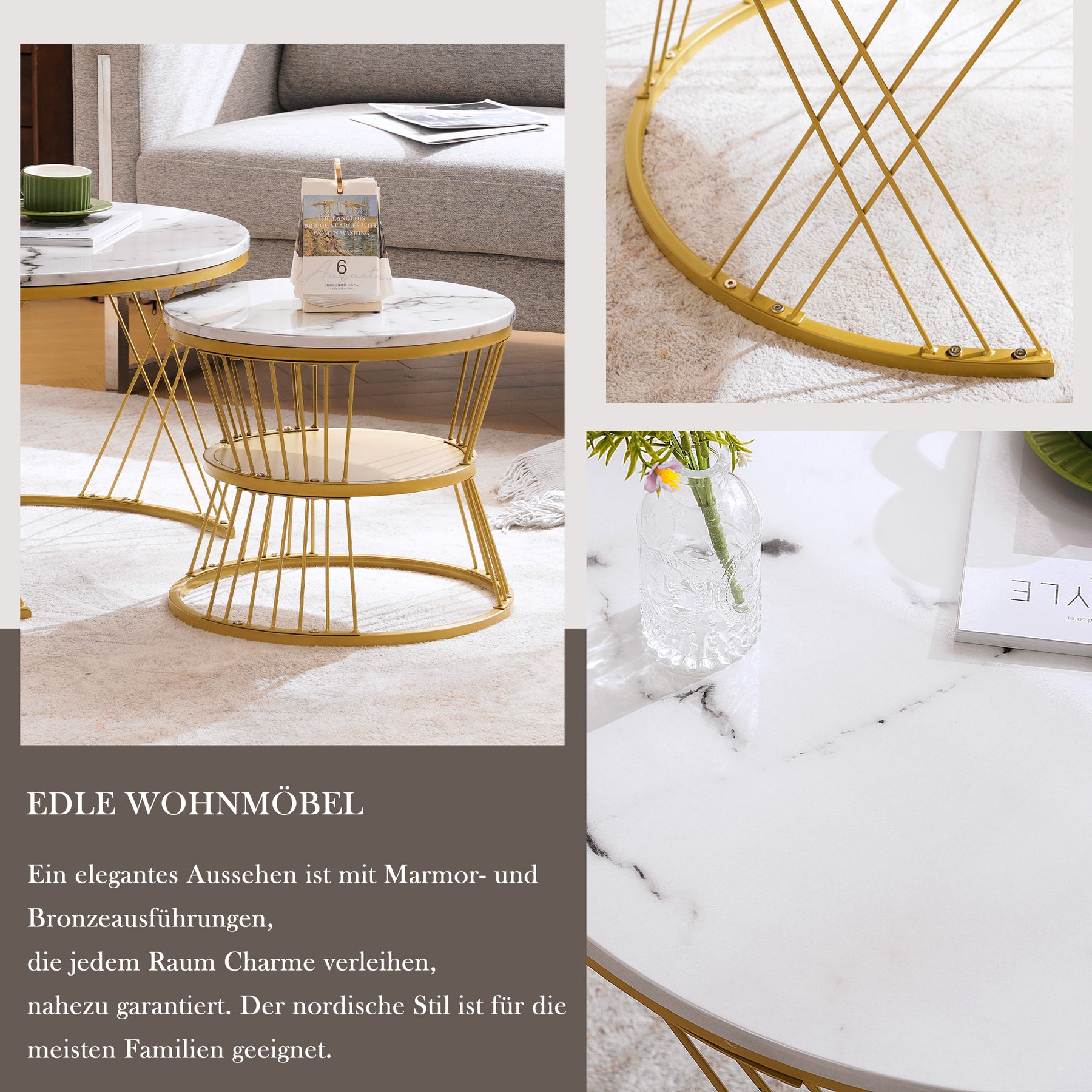 • Matériaux premium et robustesse : Fabriquées en MDF de qualité supérieure avec finition laquée brillante effet marbre, ces tables sont solides, durables et faciles à nettoyer, idéales pour les familles modernes.